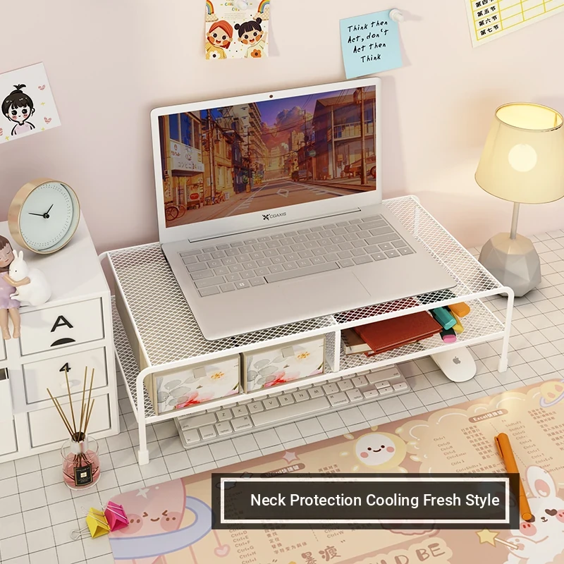 Laptop Cooling Stand with Adjustable Height - Home Monitor Base, Ergonomic Neck Support, Perfect for Dorm Room Desktop Storage and Organization