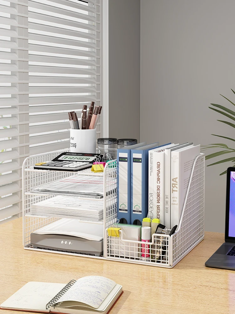 A3/A4 Desktop File Organizer - Stylish Metal Bookcase for Office - Perfect for Desk Storage & Document Organization - Keep Your Workspace Tidy and Efficient!