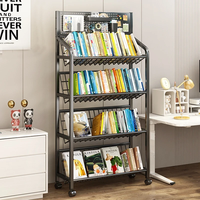 Mobile Floor Bookshelf - Multi-Layer Iron Storage Rack with Wheels, Ideal for Home Use, Perfect for Organizing Snacks and Essentials - Versatile and Stylish!