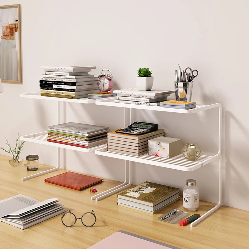 Double-Layer Desktop Organizer - The Ultimate Desk Storage Solution for Office and Dorm! Simplify Your Workspace with This Easy-to-Install Bookshelf and Keep Your Study Area Tidy!