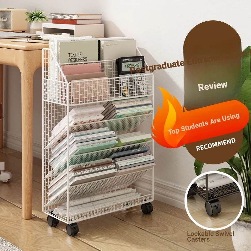 Mobile Bookshelf and Study Desk Organizer - Floor Storage Rack for Students, Perfect for Exam Preparation and Material Storage in Classrooms and Home Offices.