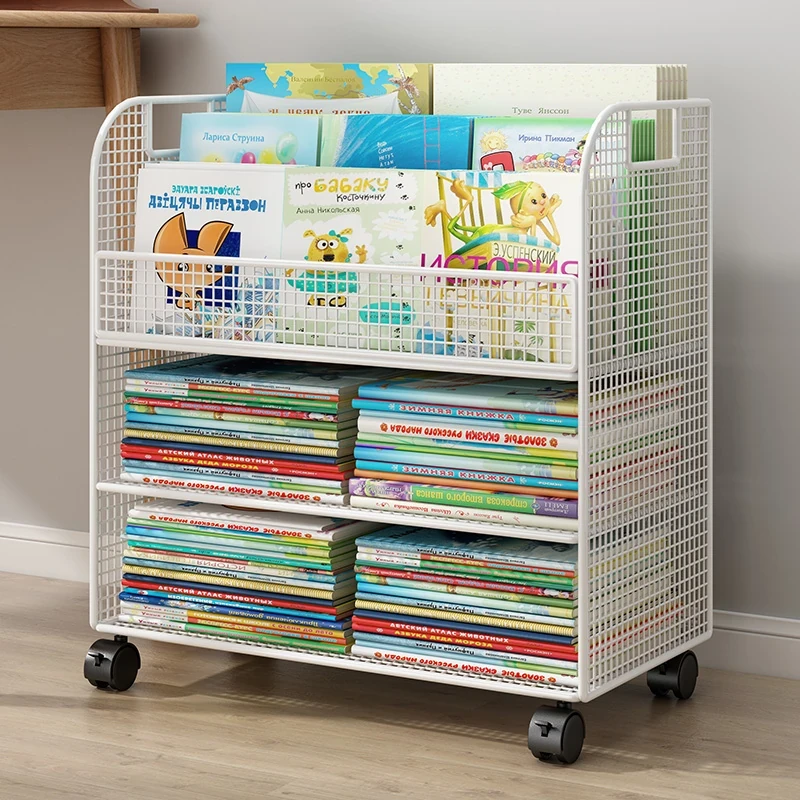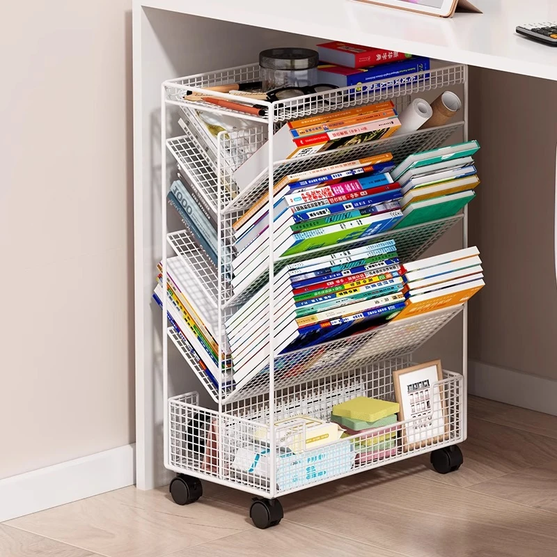Mobile Bookshelf with Wheels - Under-Desk Storage Rack for Kids Study Table - Stylish Iron Bookshelf for Student Book Organization - Perfect for Home or Classroom Use