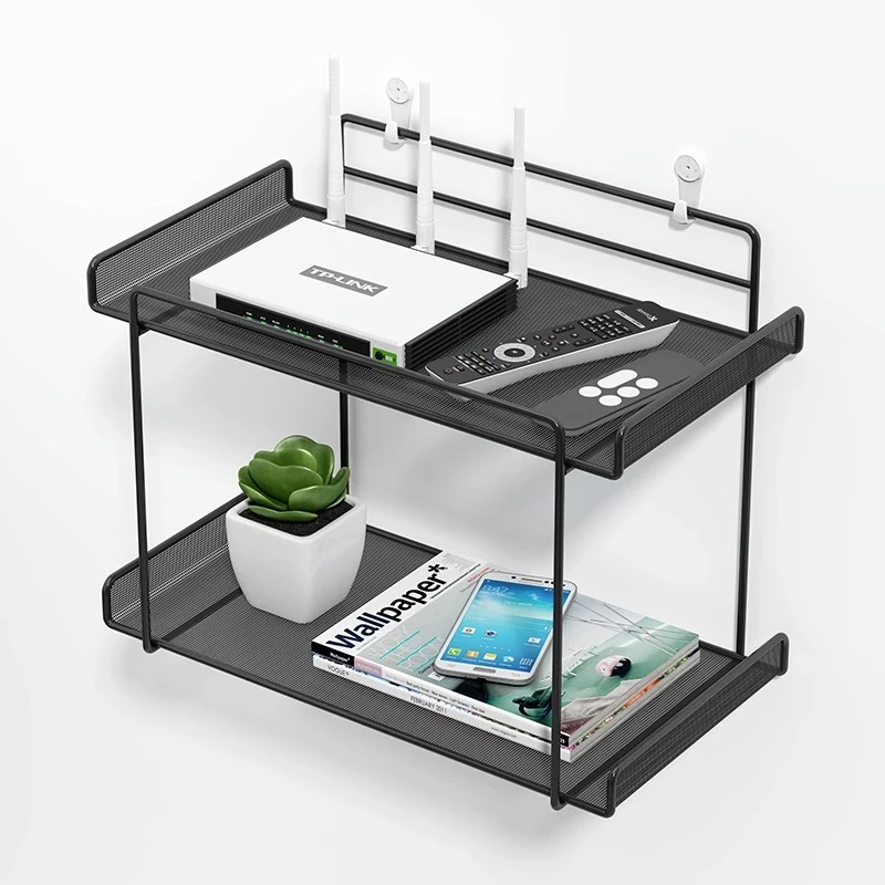 Wall-Mounted Router and Set-Top Box Shelf - No Drill WiFi Storage Rack for TV, Space-Saving and Easy Installation