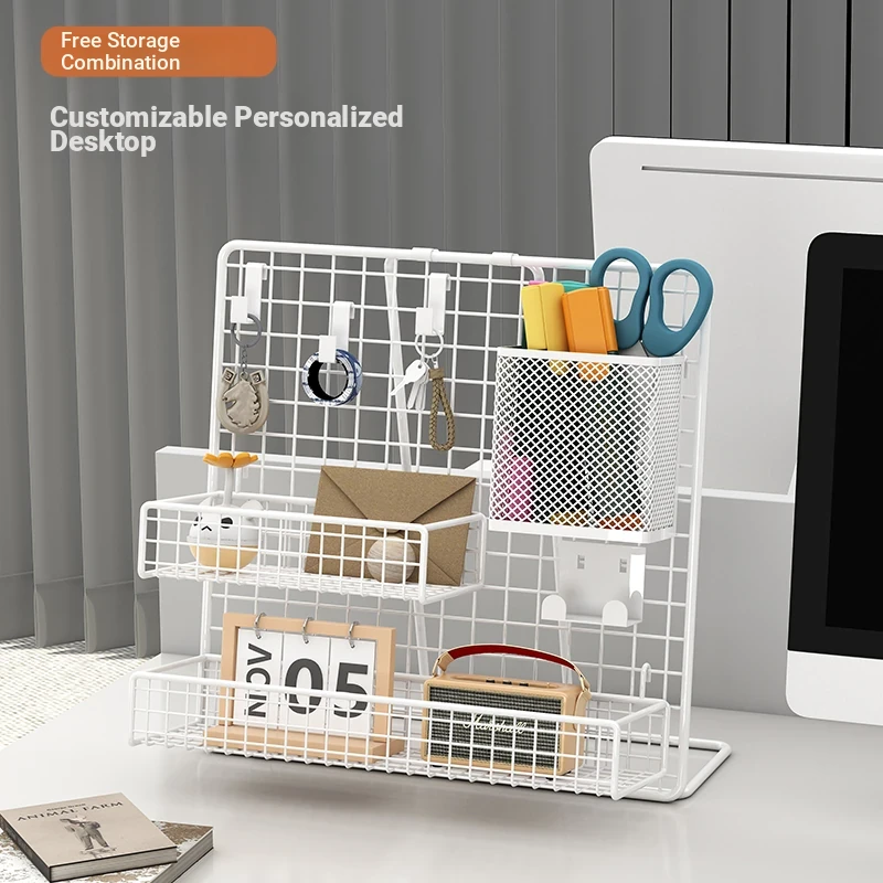 Multifunctional Desktop Pegboard Organizer - Multi-Tier Storage Rack for Office and Student Desks, Ideal for Efficient Space Management and Stylish Organization