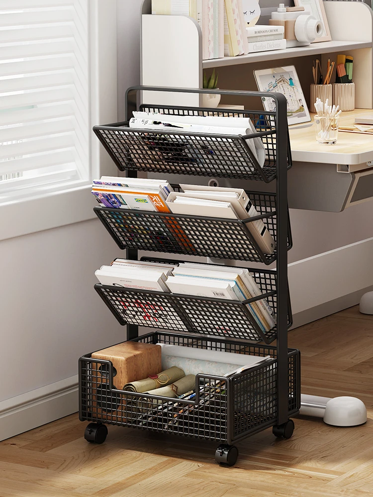 Mobile Bookshelf with Wheels - Versatile Rolling Storage Cart for Students, Ideal for Organizing Books and Children's Picture Books, Compact and Easy to Move, Perfect for Home or Office Use