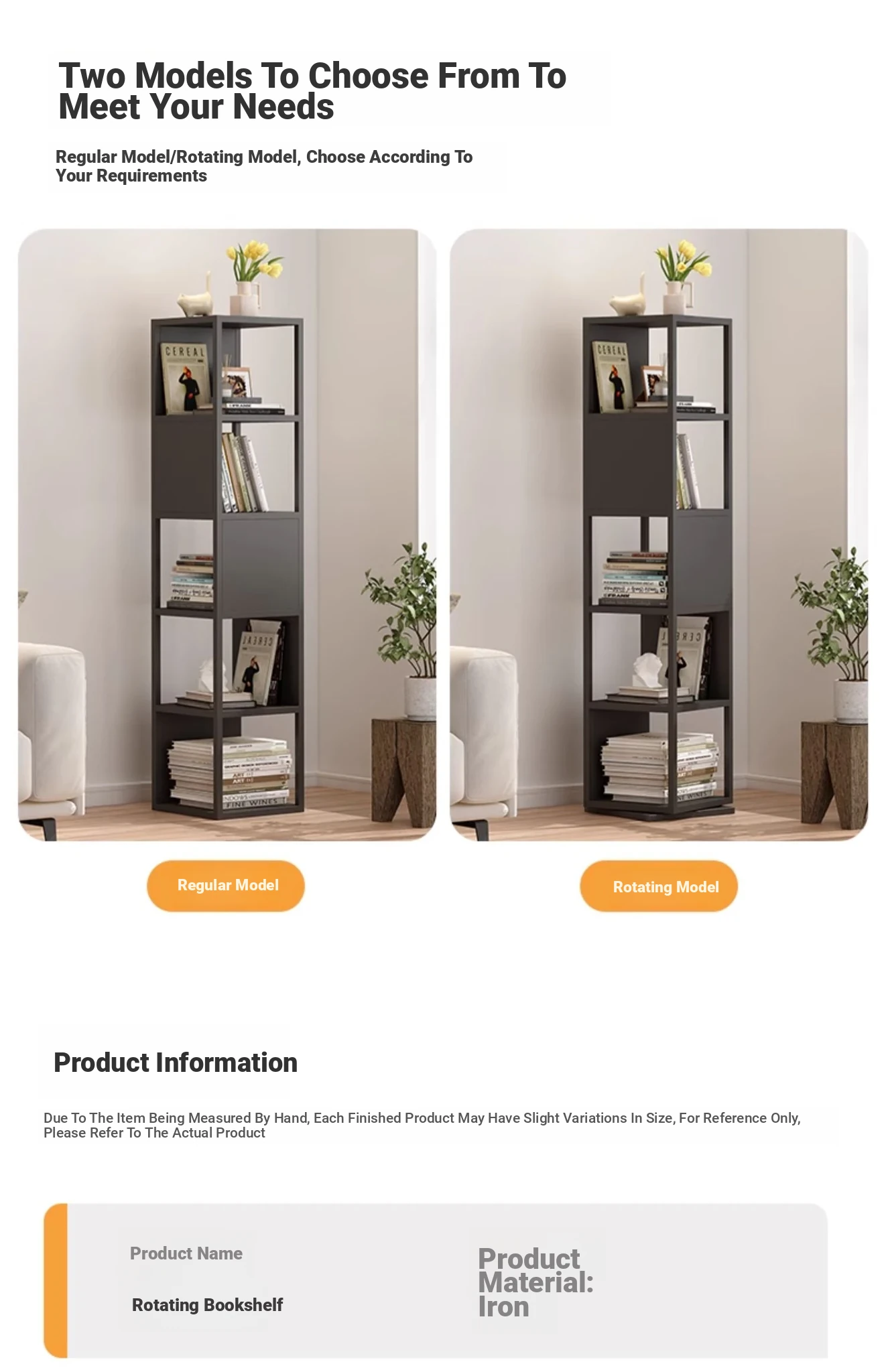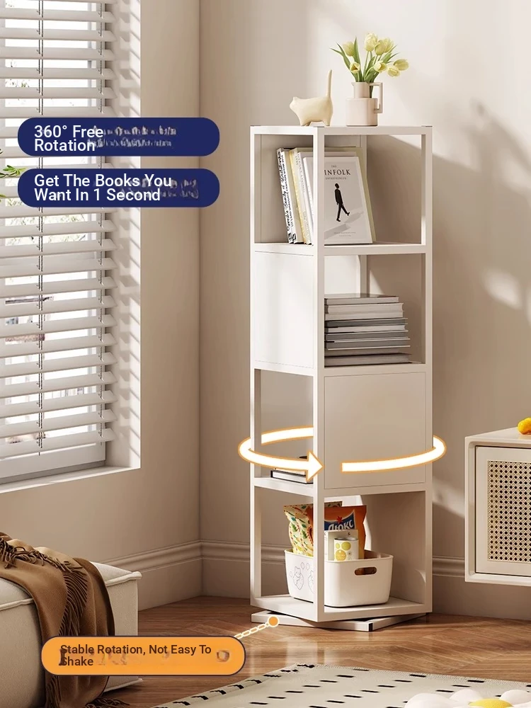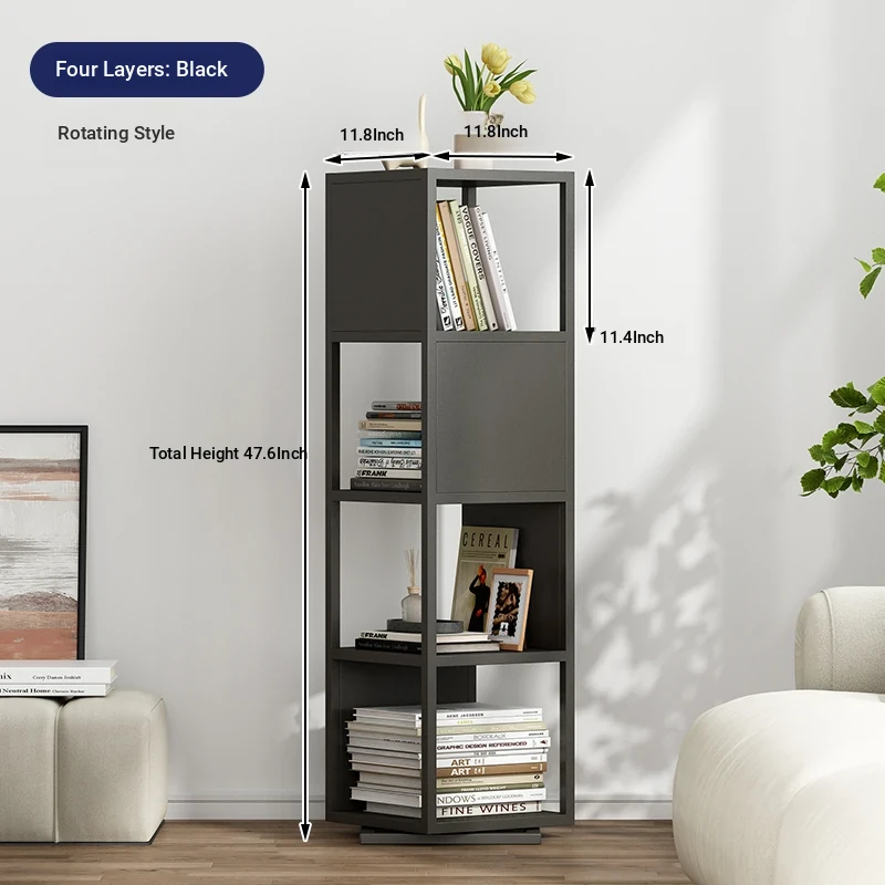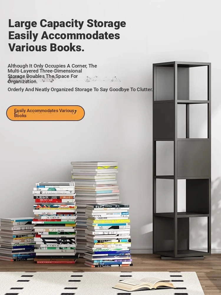 360-Degree Rotating Floor Bookshelf - Multi-Layer Iron Art Simple Bookcase for Living Room, Wall-Mounted Storage Rack, Stylish and Functional Design