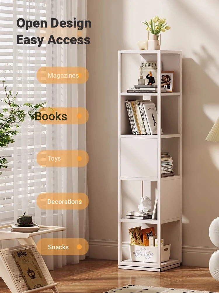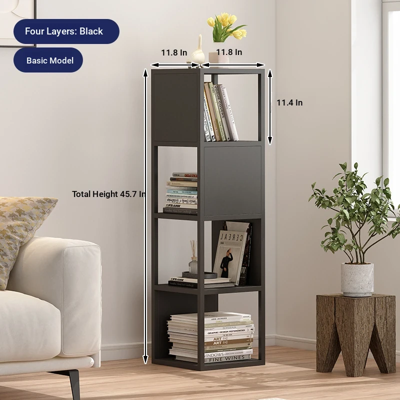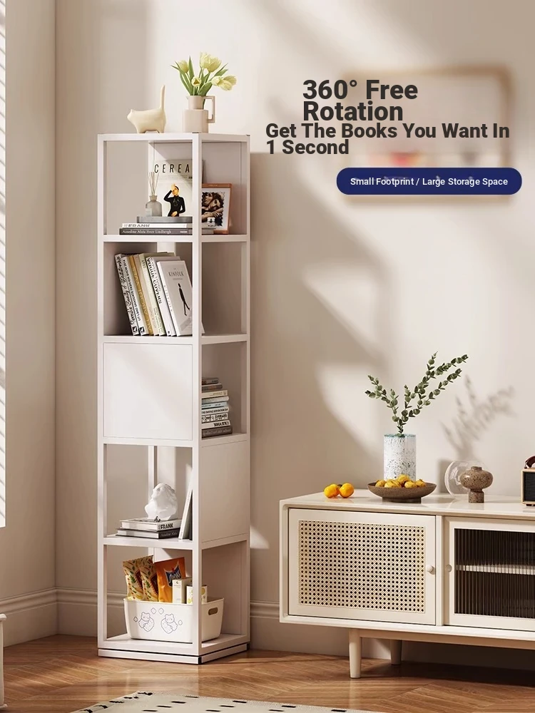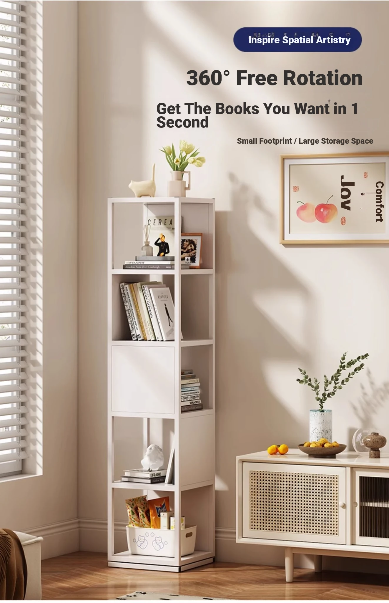 360-Degree Rotating Floor Bookshelf - Multi-Layer Iron Art Simple Bookcase for Living Room, Wall-Mounted Storage Rack, Stylish and Functional Design