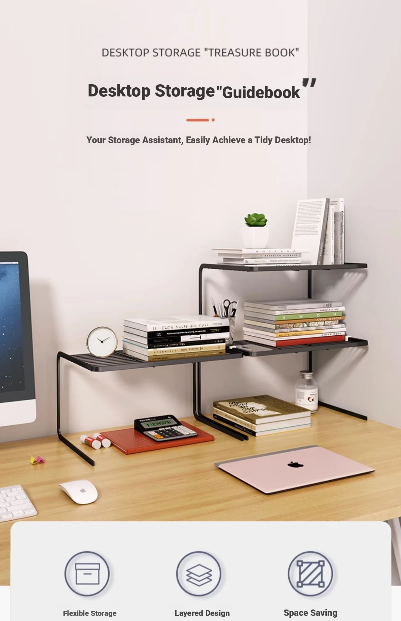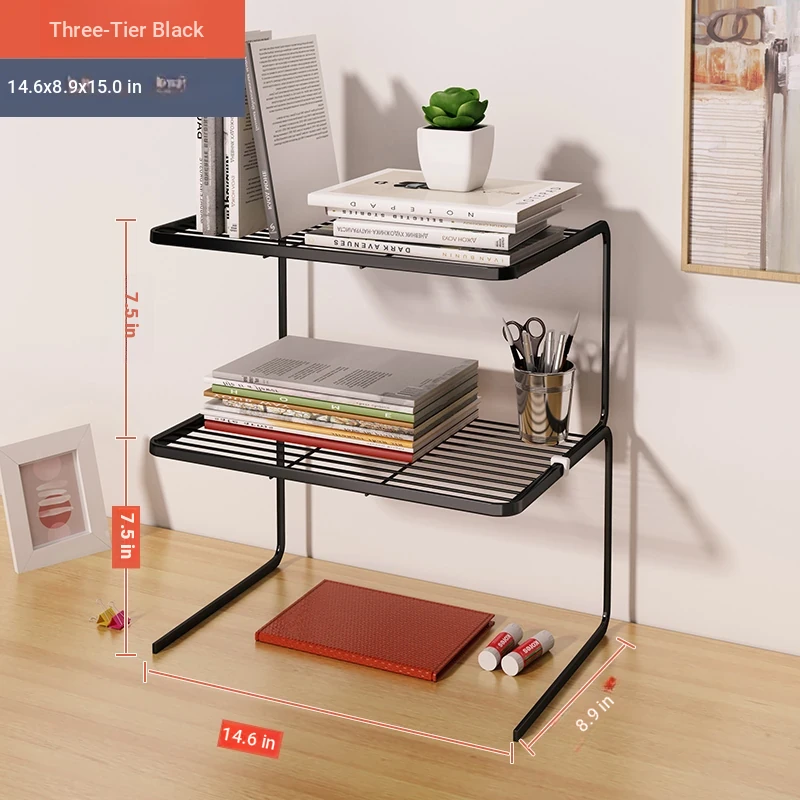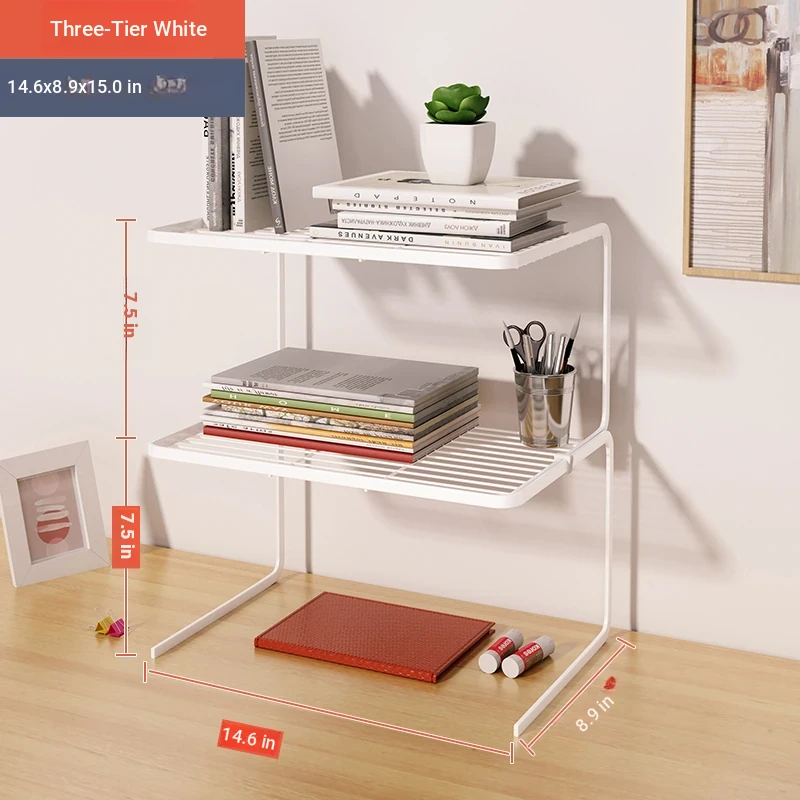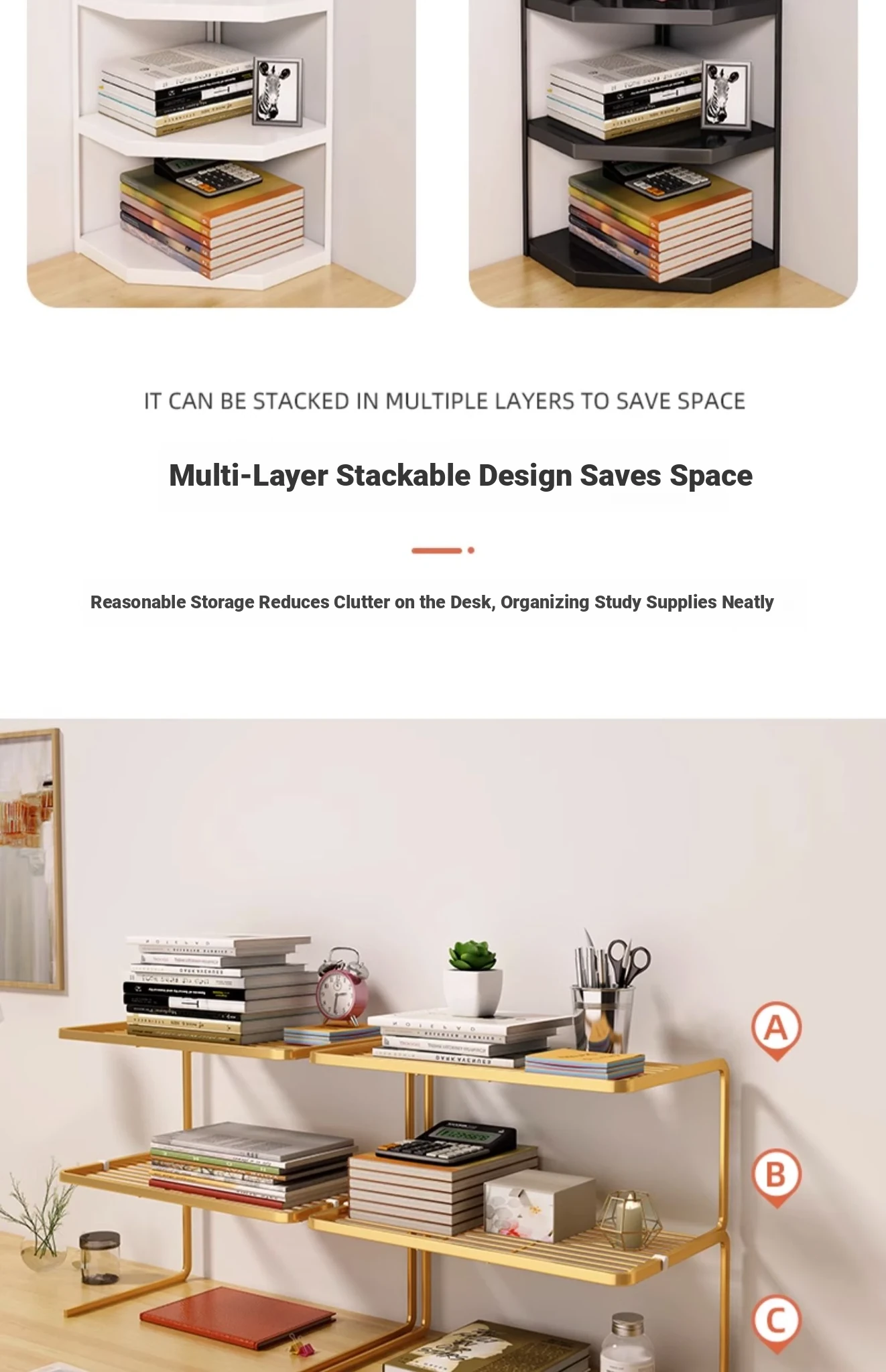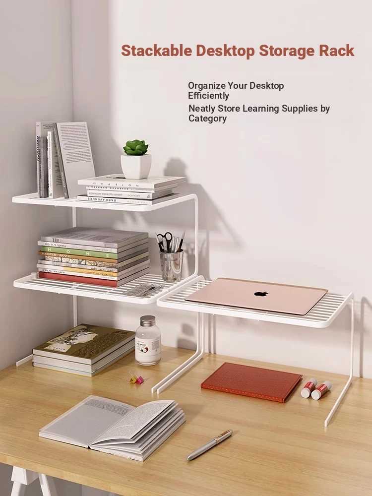 Compact Desktop Bookshelf Organizer - Multi-Tier Stackable Storage Rack for Office and Home - Ideal for Book and Supplies Organization