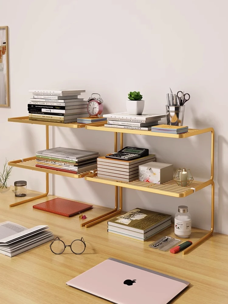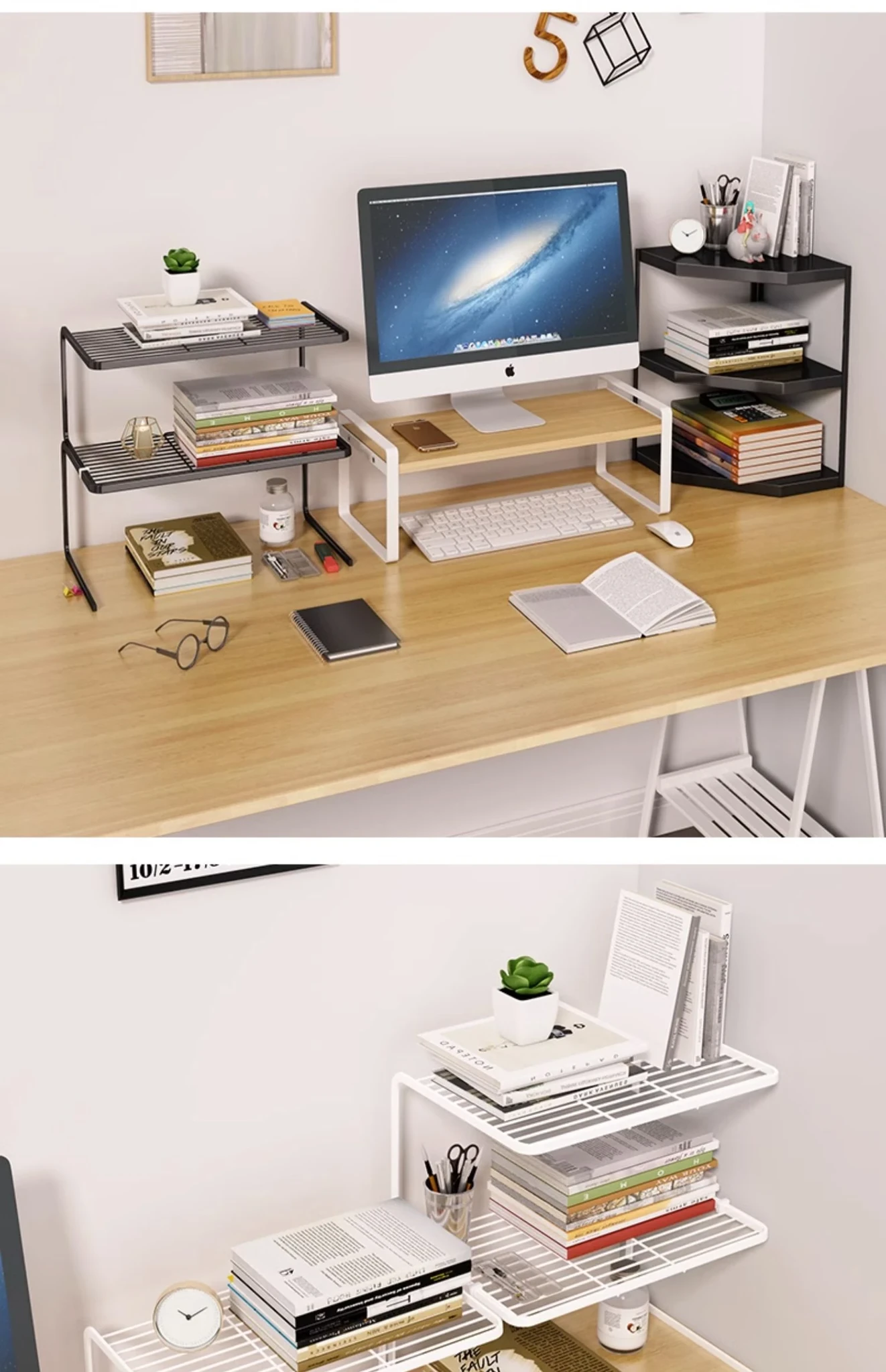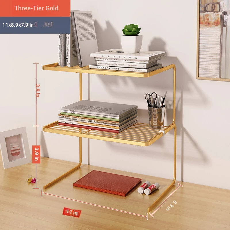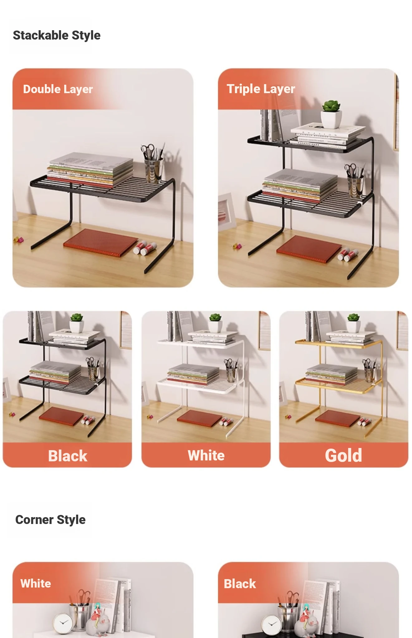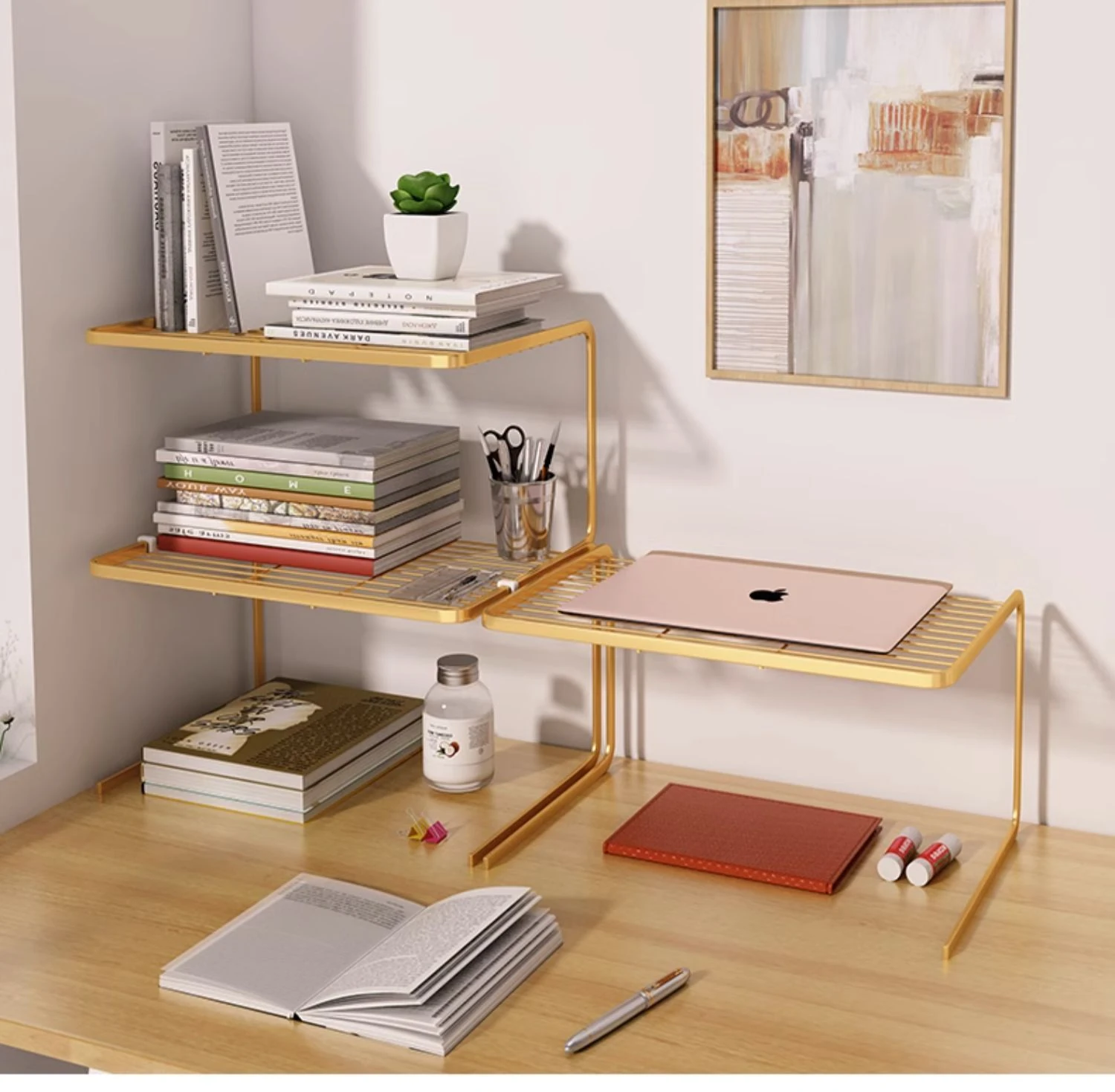 Compact Desktop Bookshelf Organizer - Multi-Tier Stackable Storage Rack for Office and Home - Ideal for Book and Supplies Organization