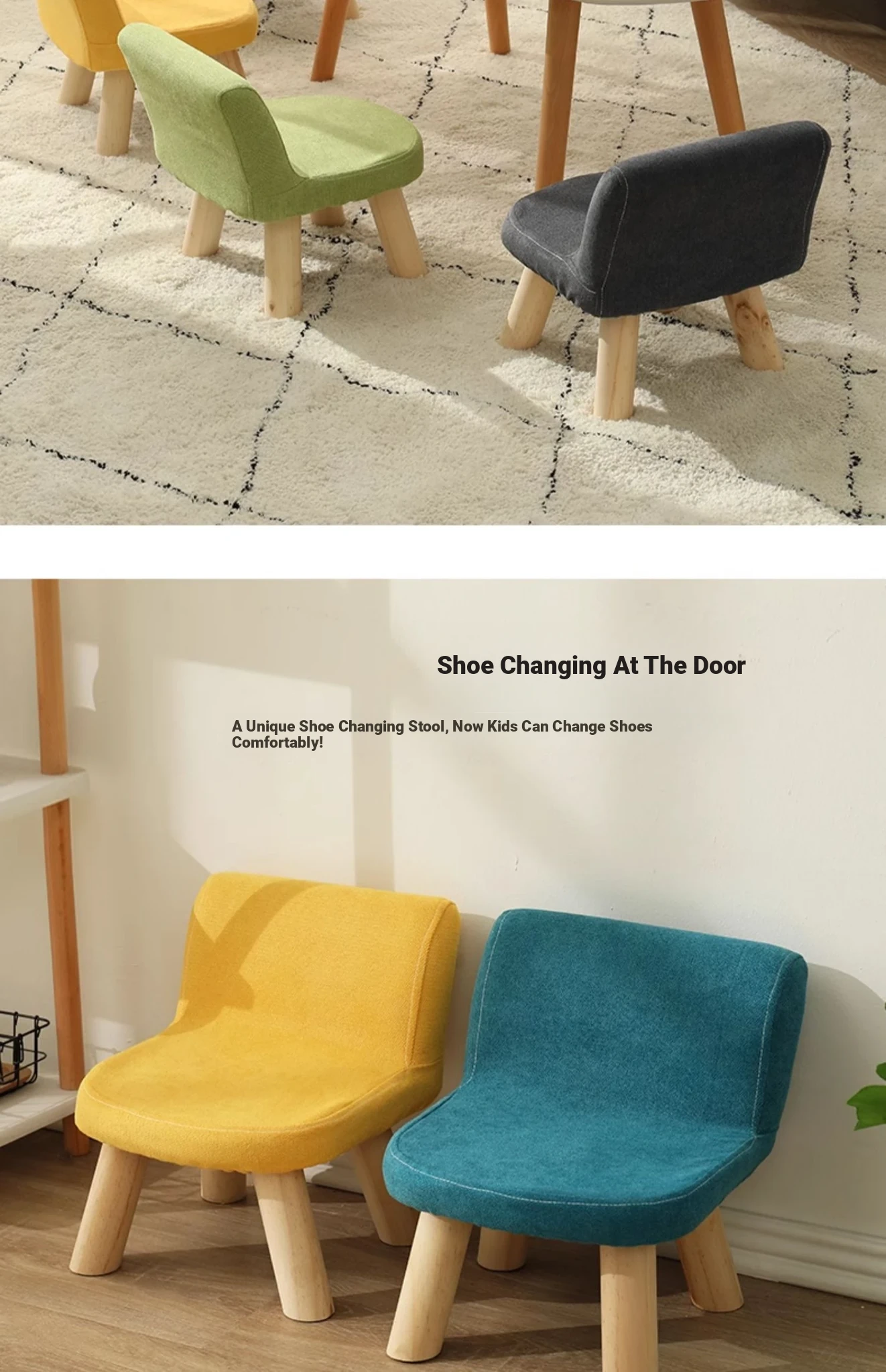 Cute Kids' Stool - Stylish Home Baby Low Bench with Backrest, Perfect for Shoe Changing and Creative Decor, Trendy Mini Chair for Little Ones