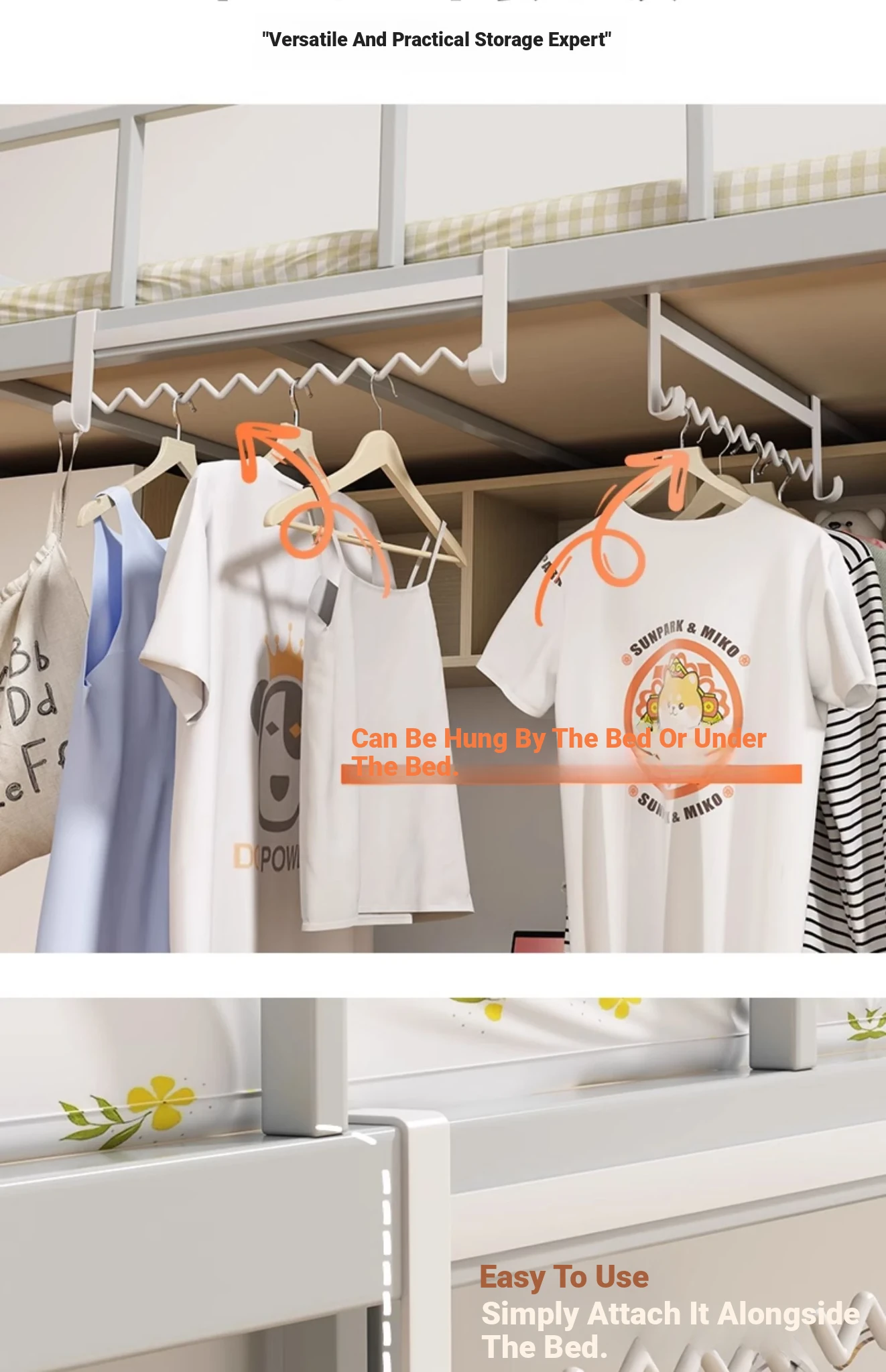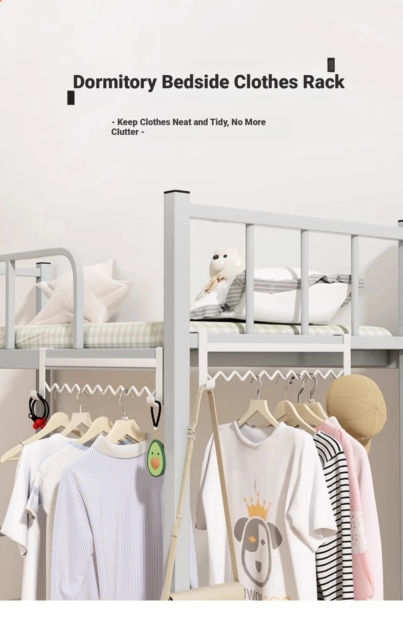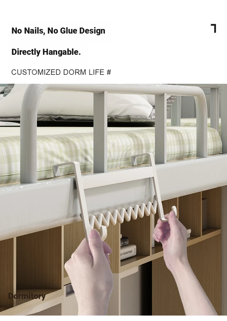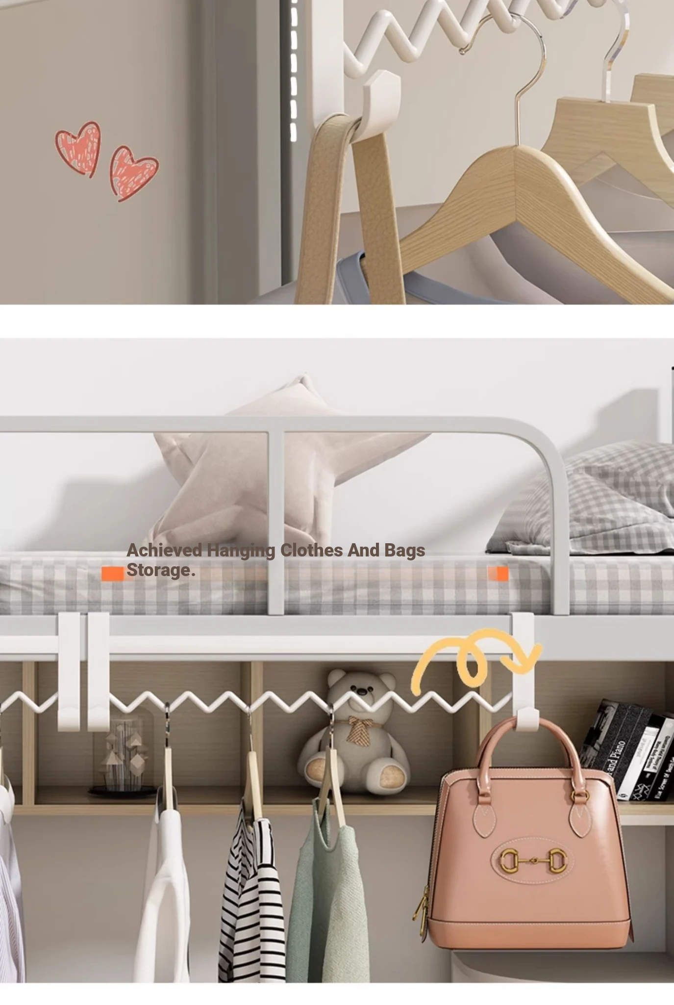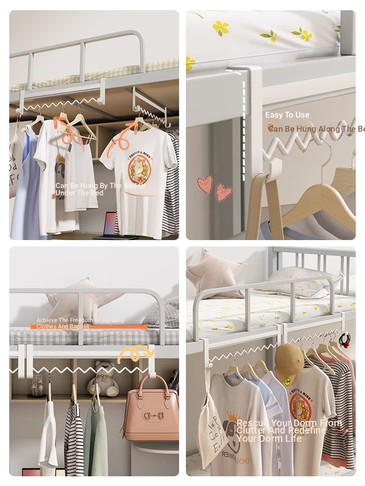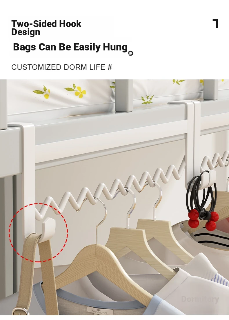 Dorm Room Clothes Hanging Organizer - Space-Saving Bedside Hooks for Bunk Beds and Bedroom Storage, Ideal for Students and Easy to Install Over-the-Door Storage Solution