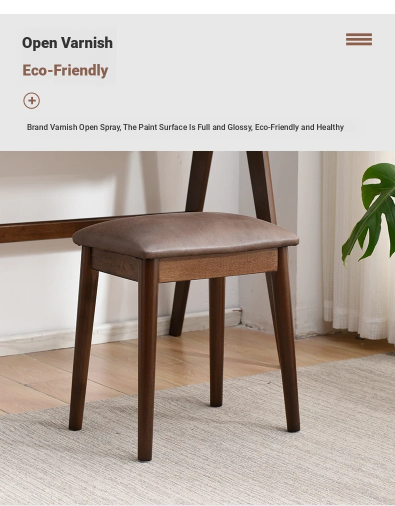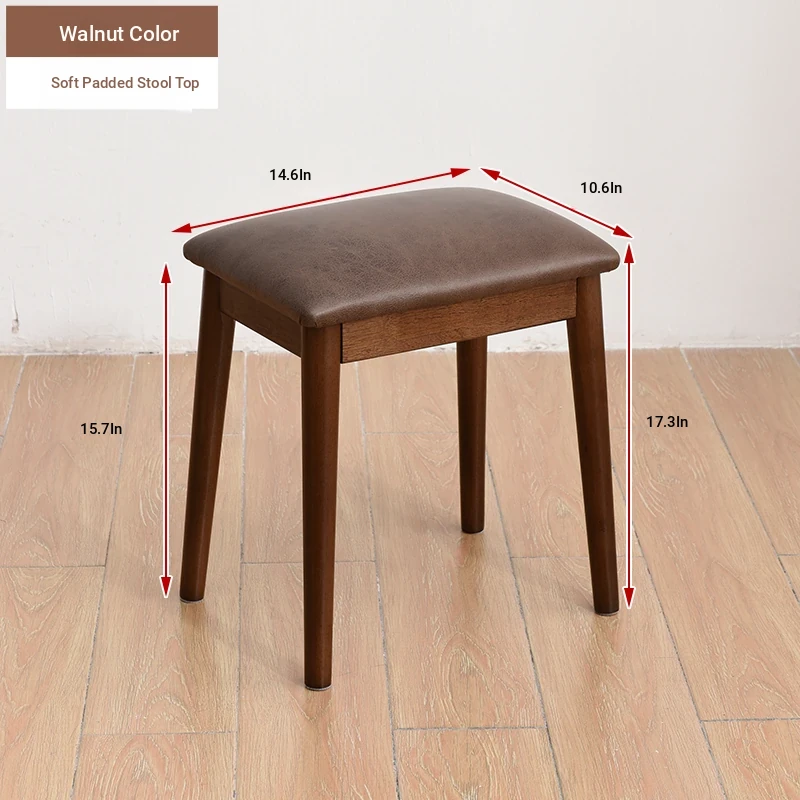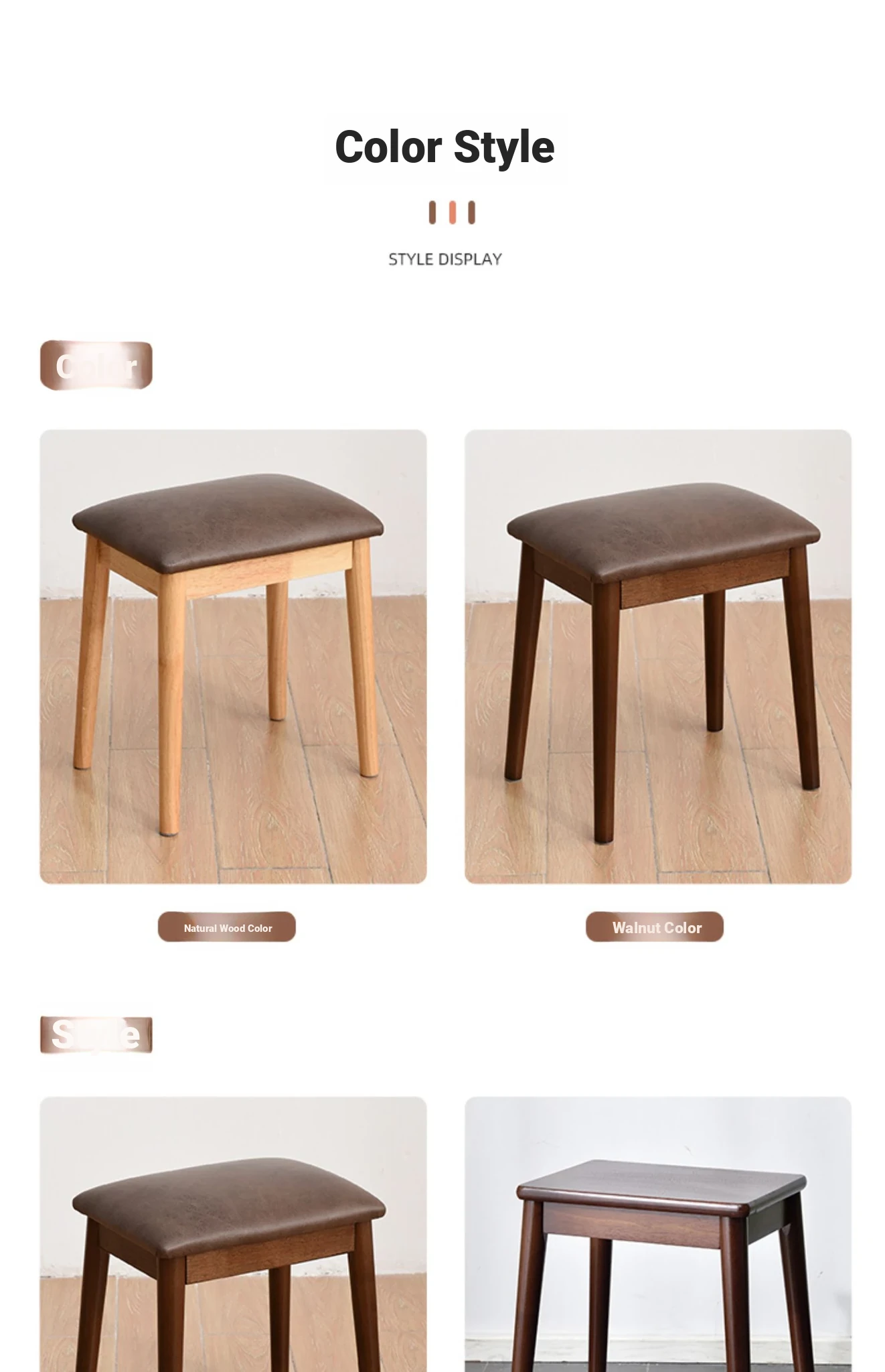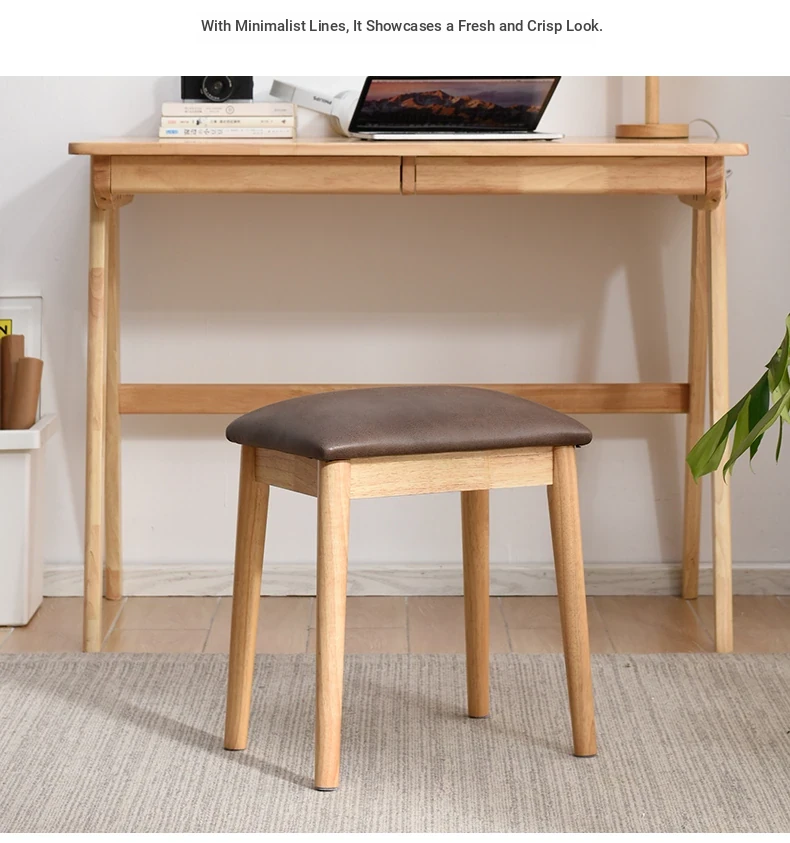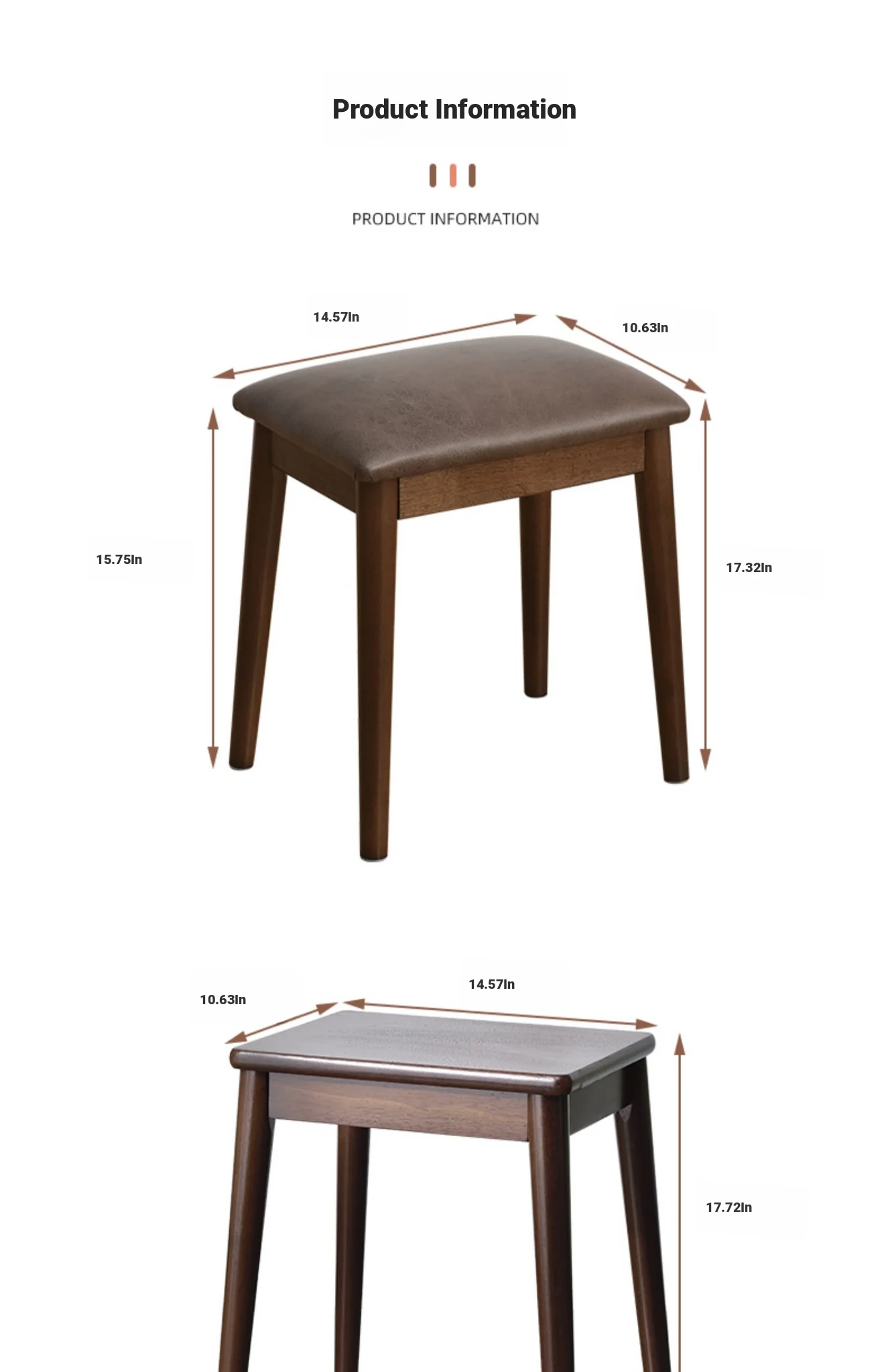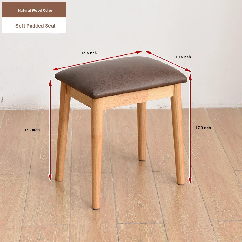 Elegant Solid Wood Vanity Stool - Modern Minimalist Makeup Chair for Women's Bedroom, Perfect for Dressing Tables and Home Use, Stylish Square Design
