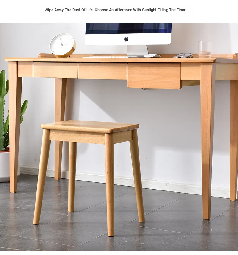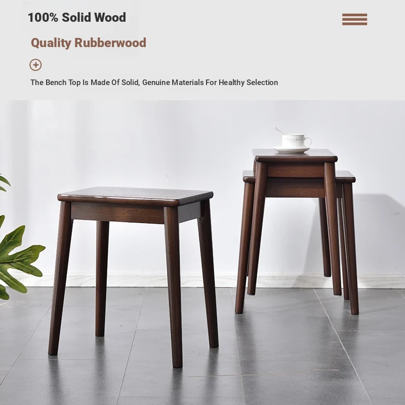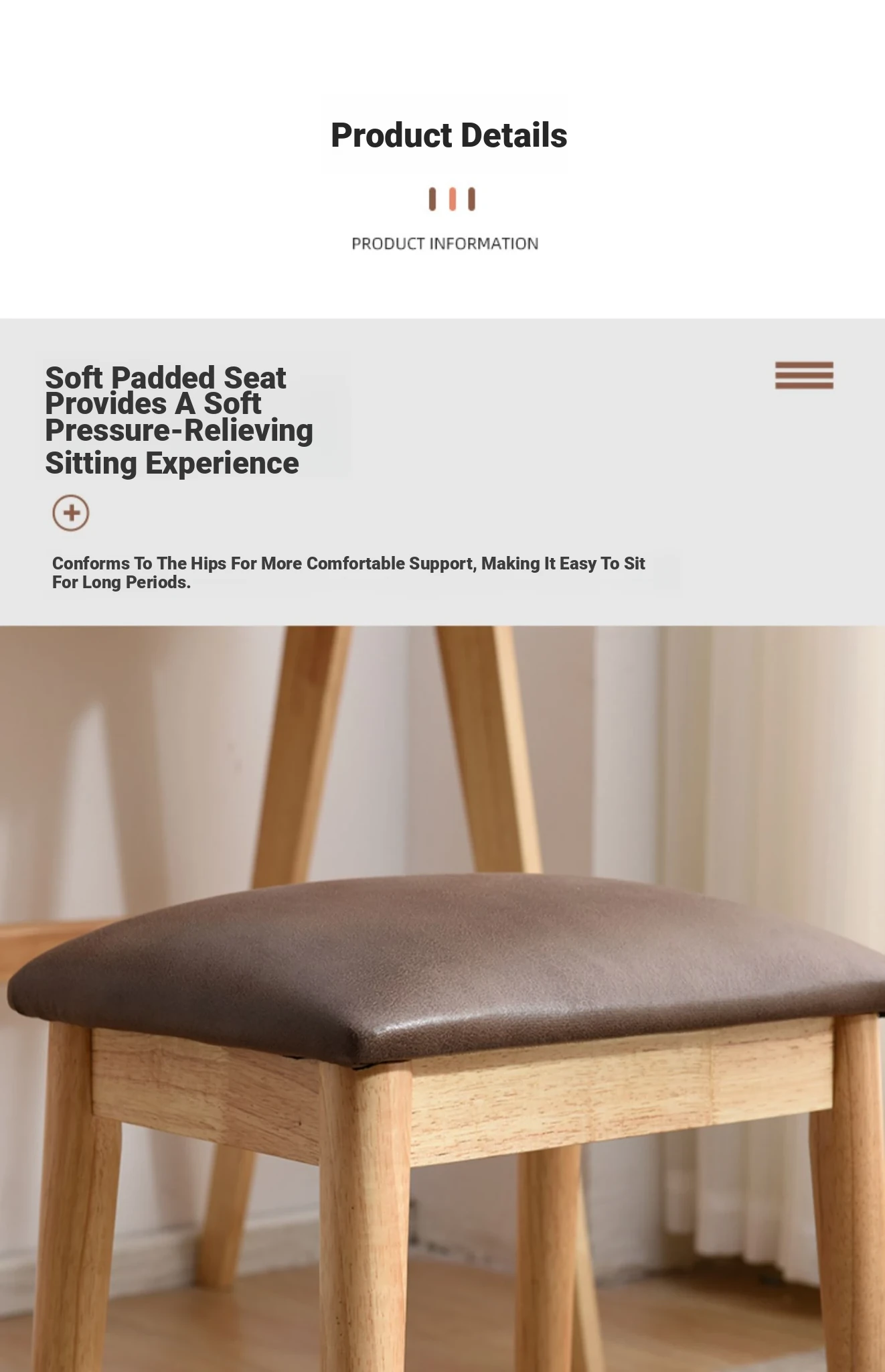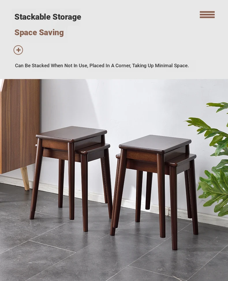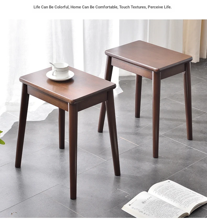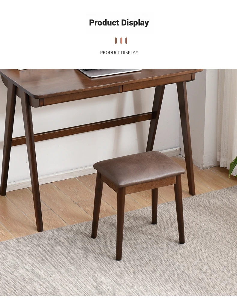 Elegant Solid Wood Vanity Stool - Modern Minimalist Makeup Chair for Women's Bedroom, Perfect for Dressing Tables and Home Use, Stylish Square Design