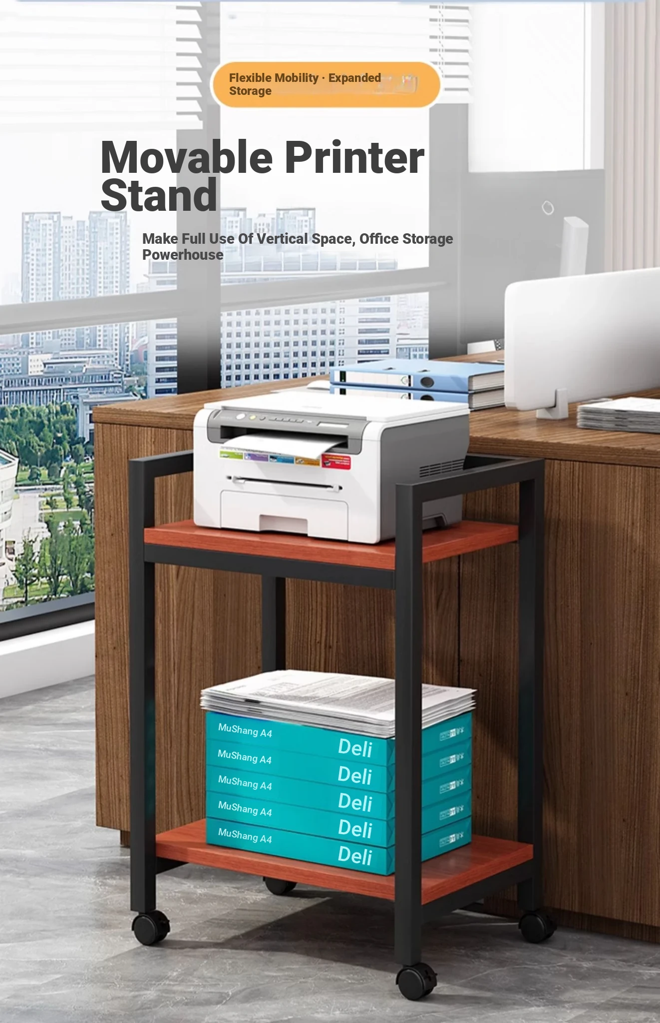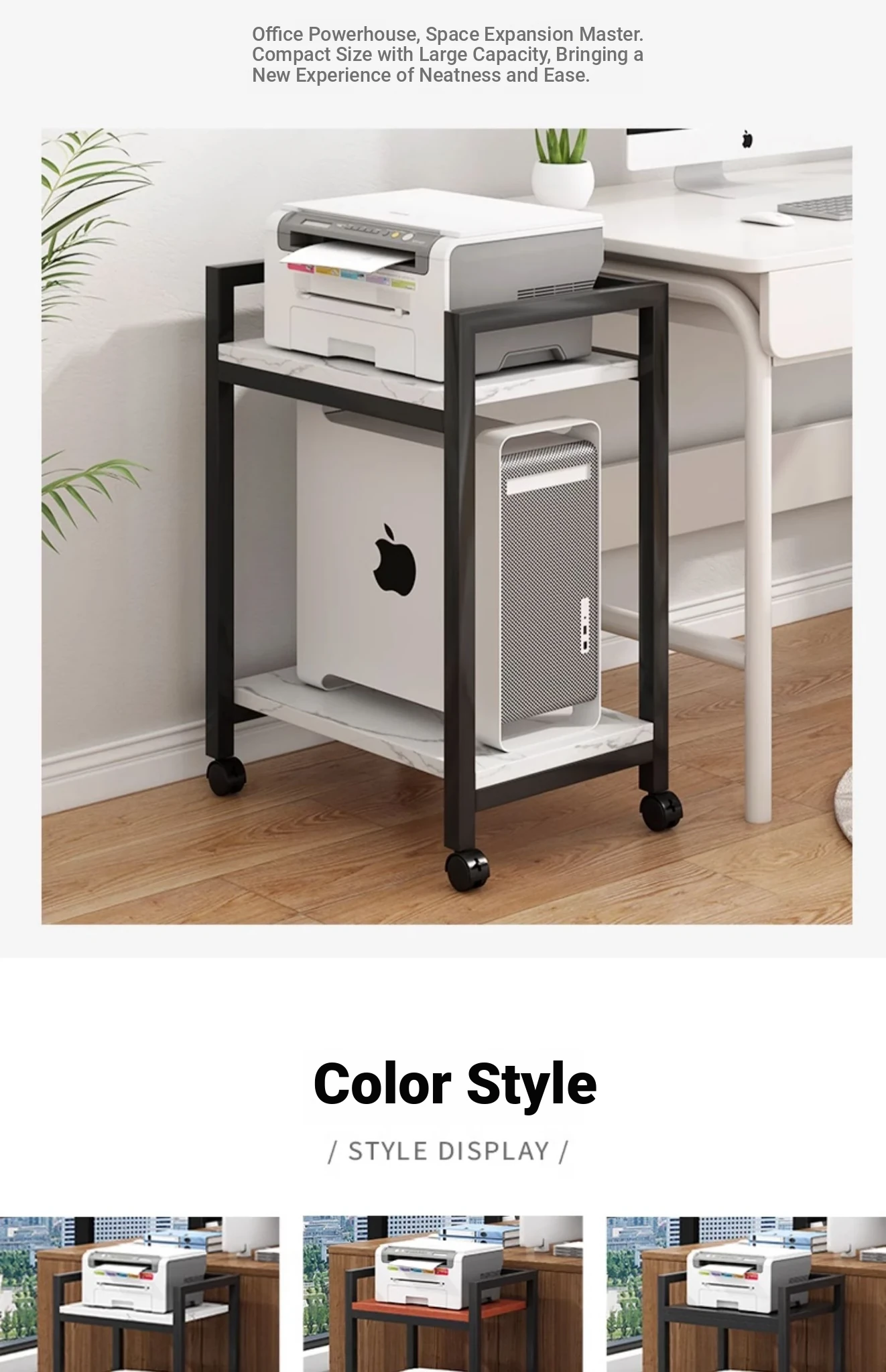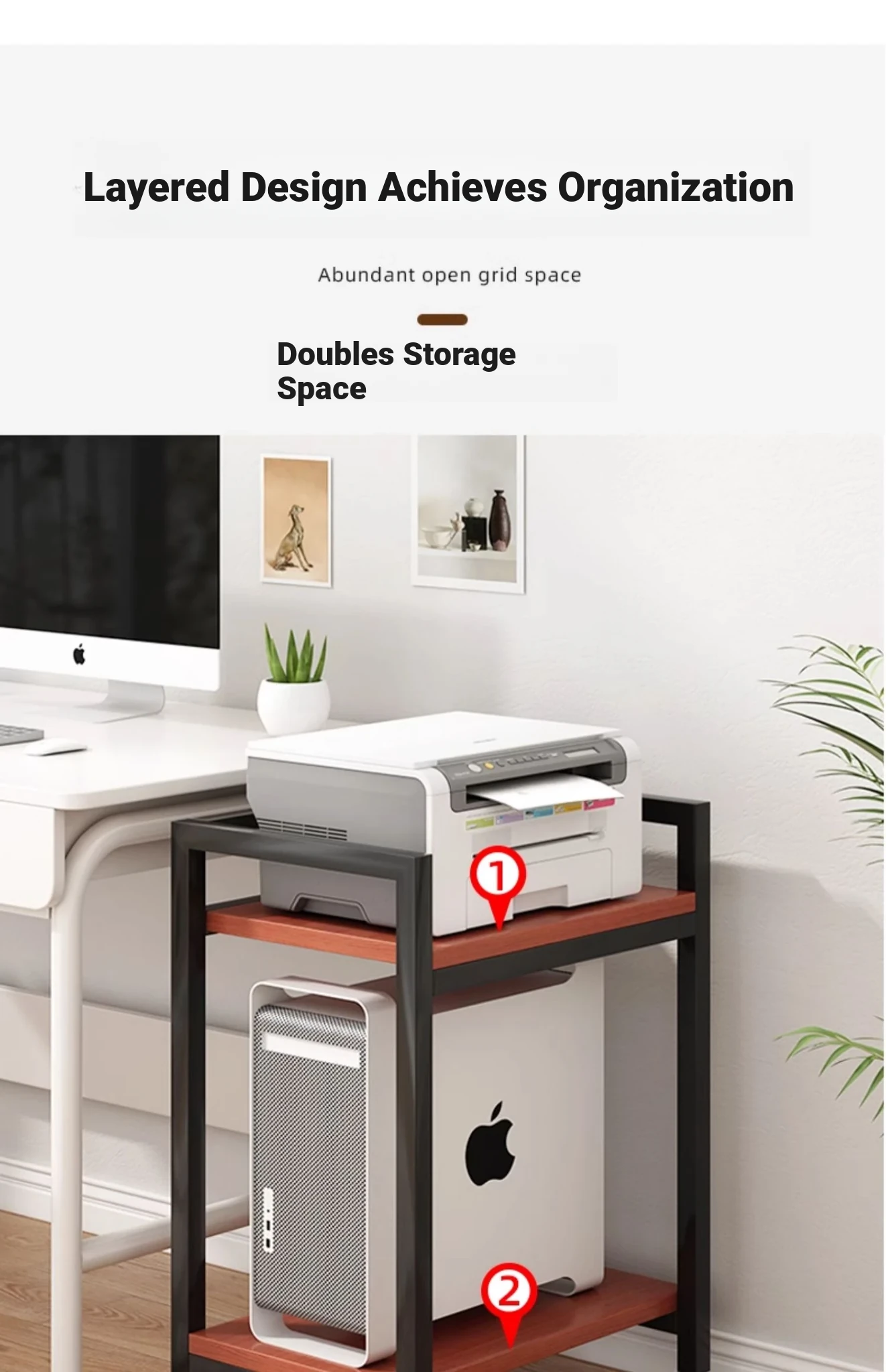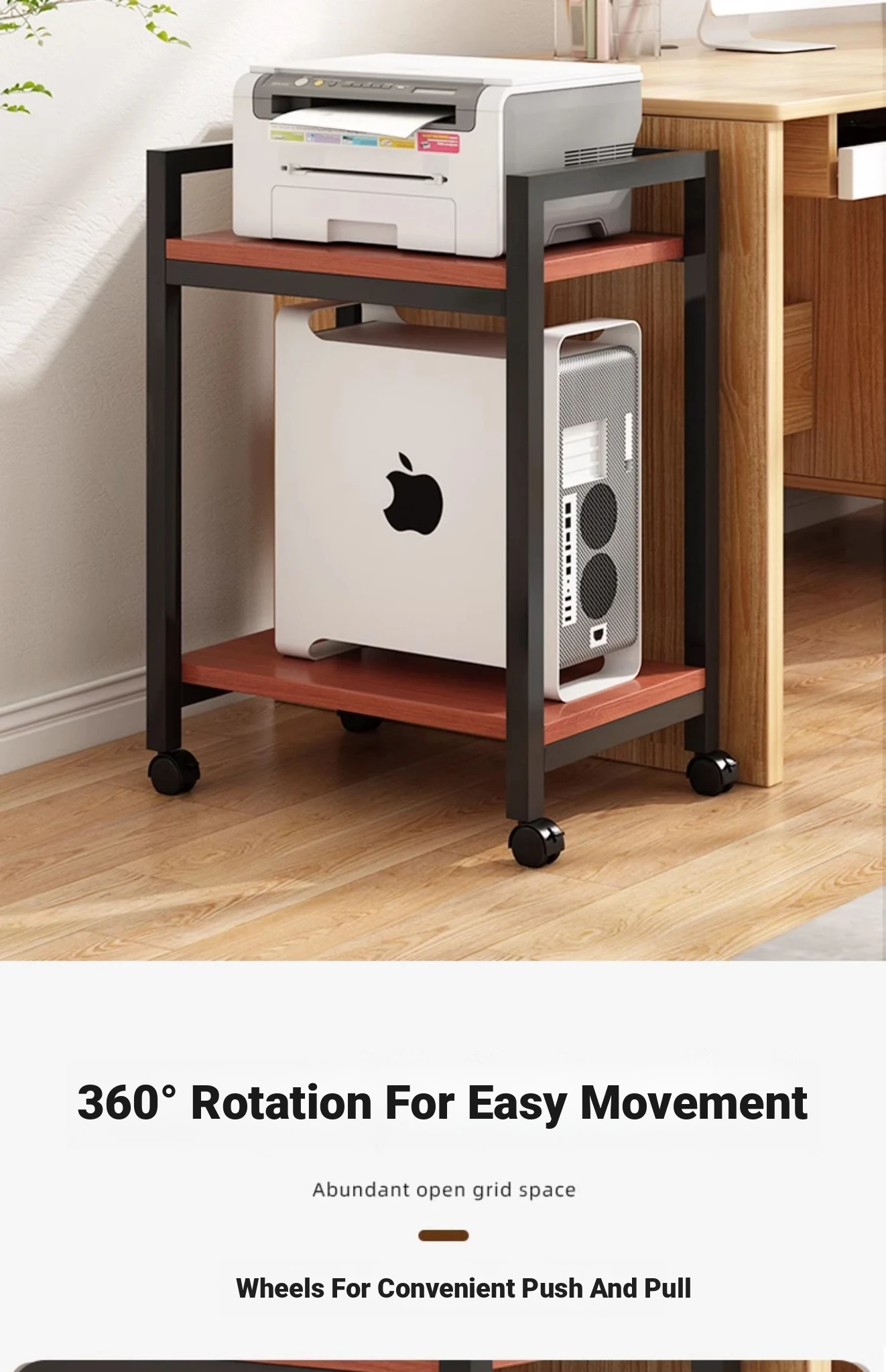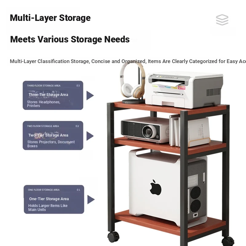 Multi-Layer Mobile Printer Stand - Stylish Iron Storage Rack for Office Organization & Computer Tower Support - Perfect for Your Workspace!