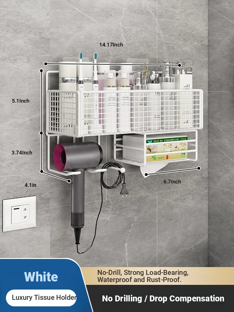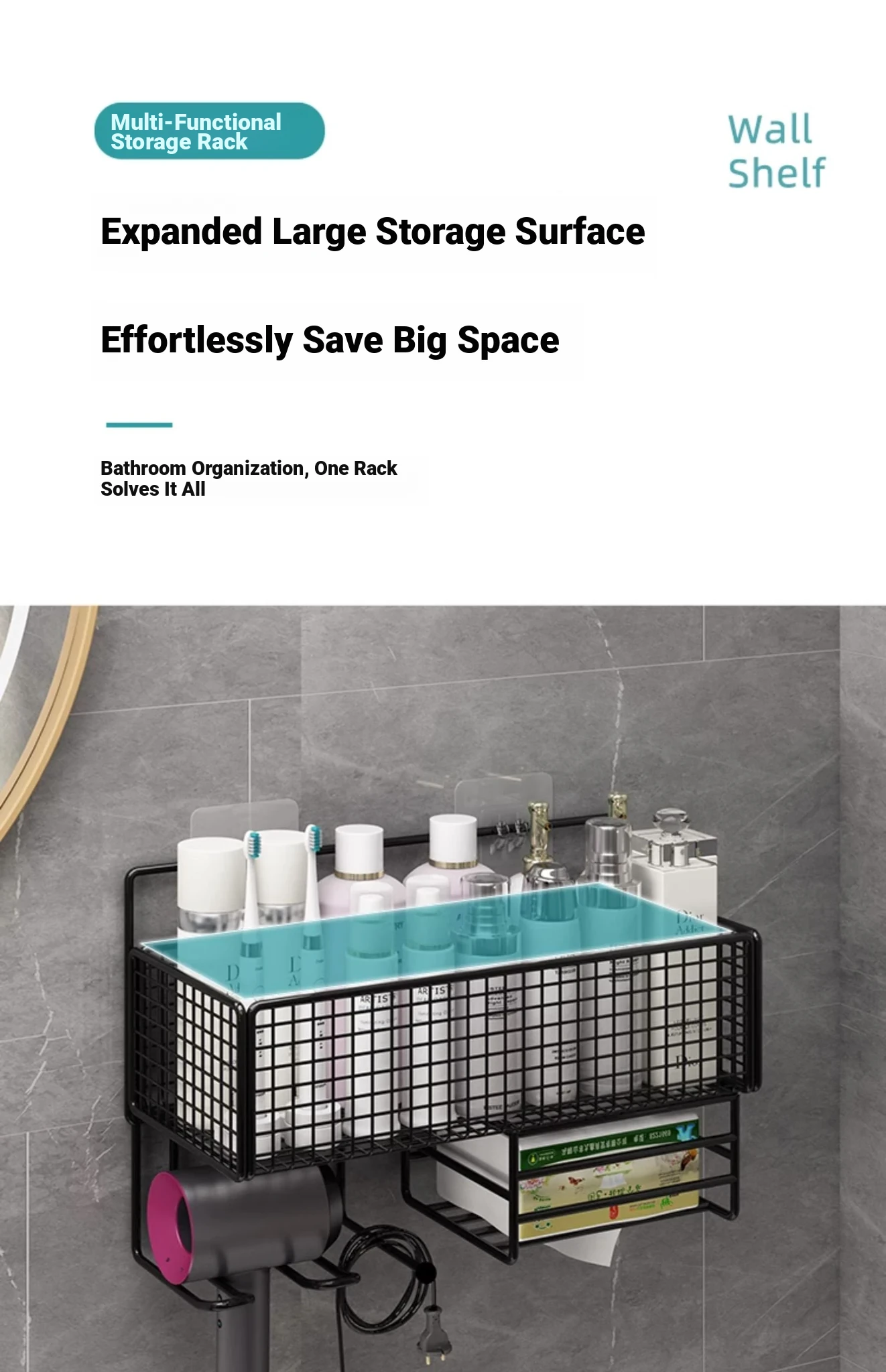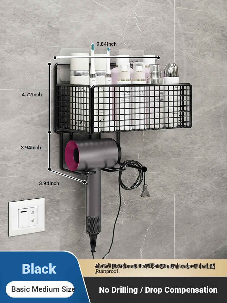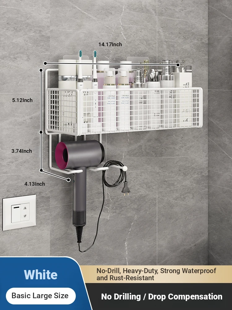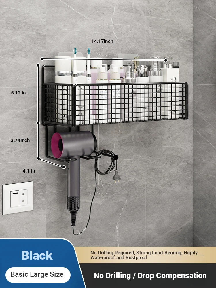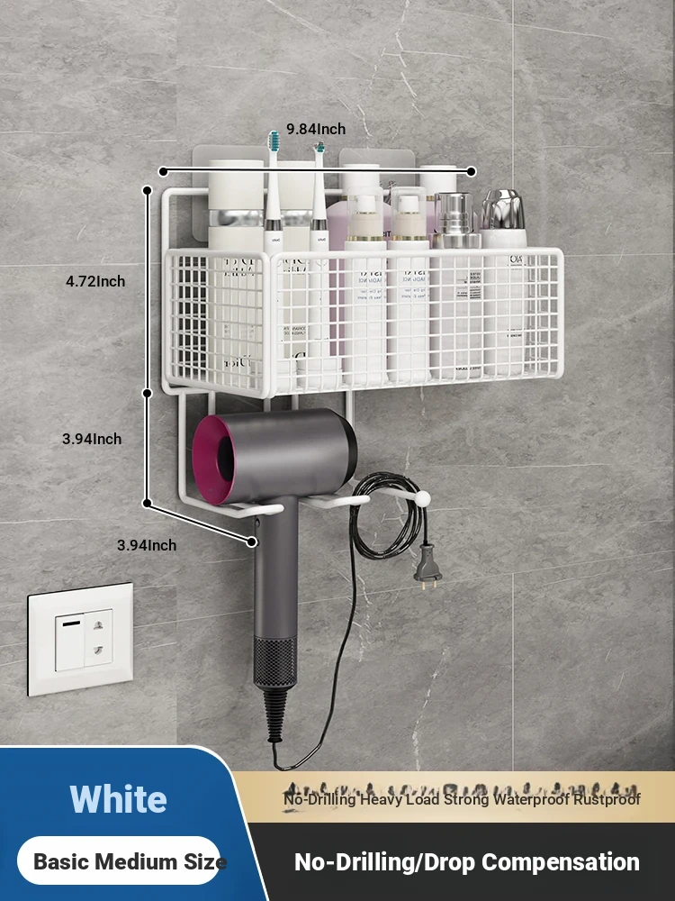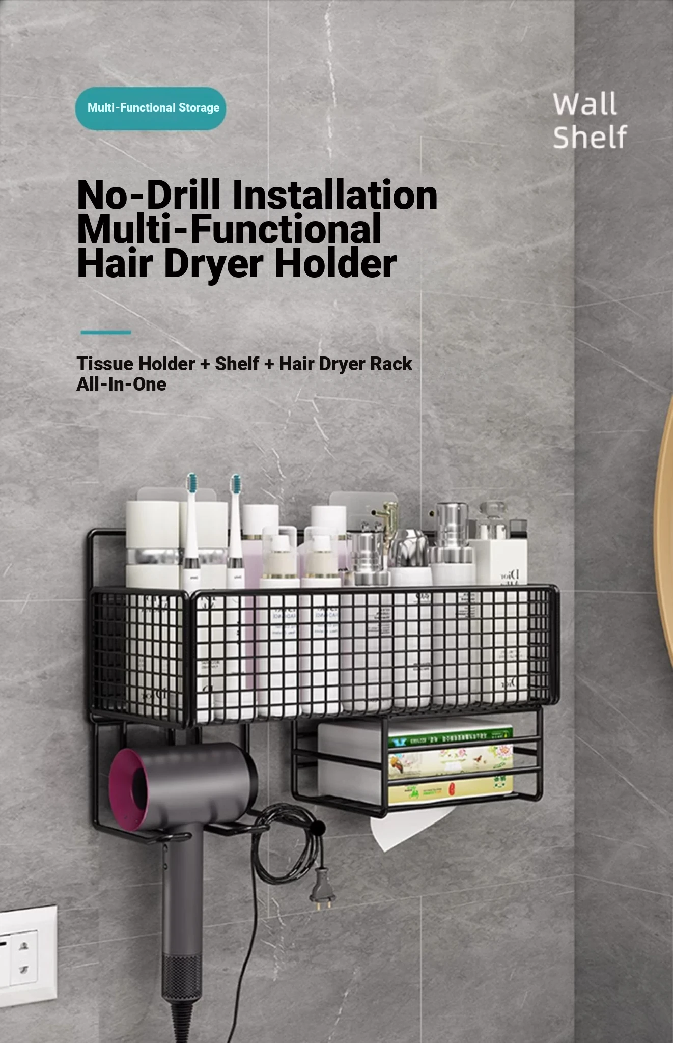 No-Drill Hair Dryer Shelf for Bathroom - Wall-Mounted Storage Rack for Toilets and Washbasins - Stylish and Practical Organizer for Your Bathroom Essentials