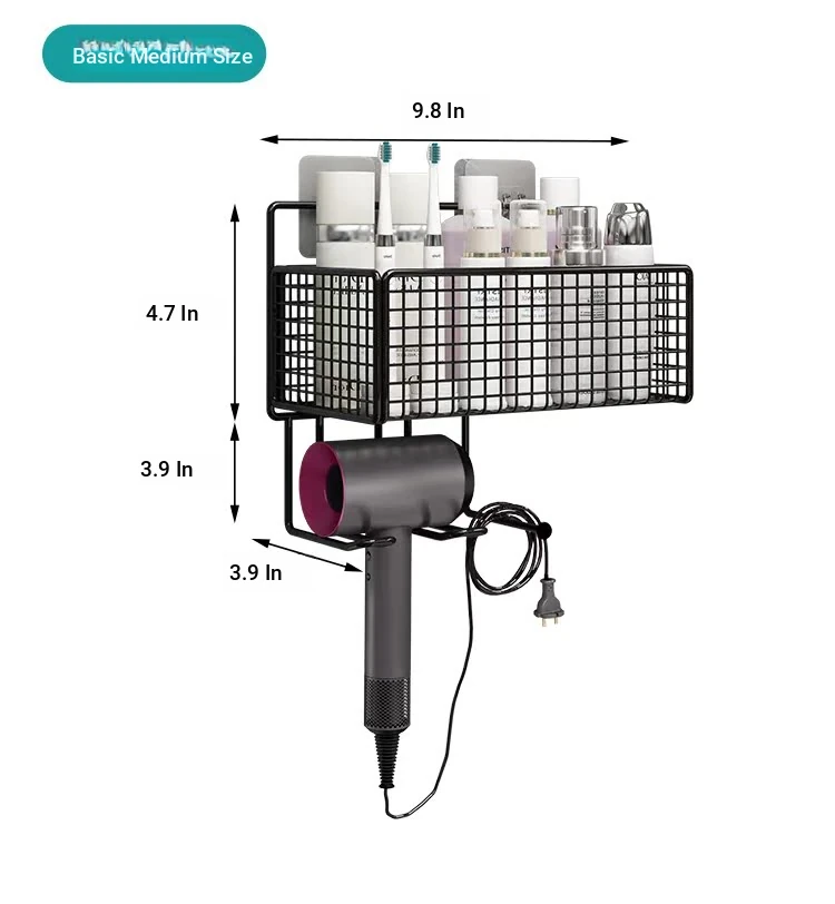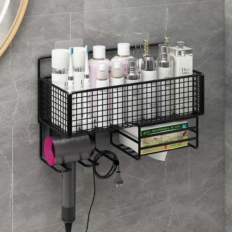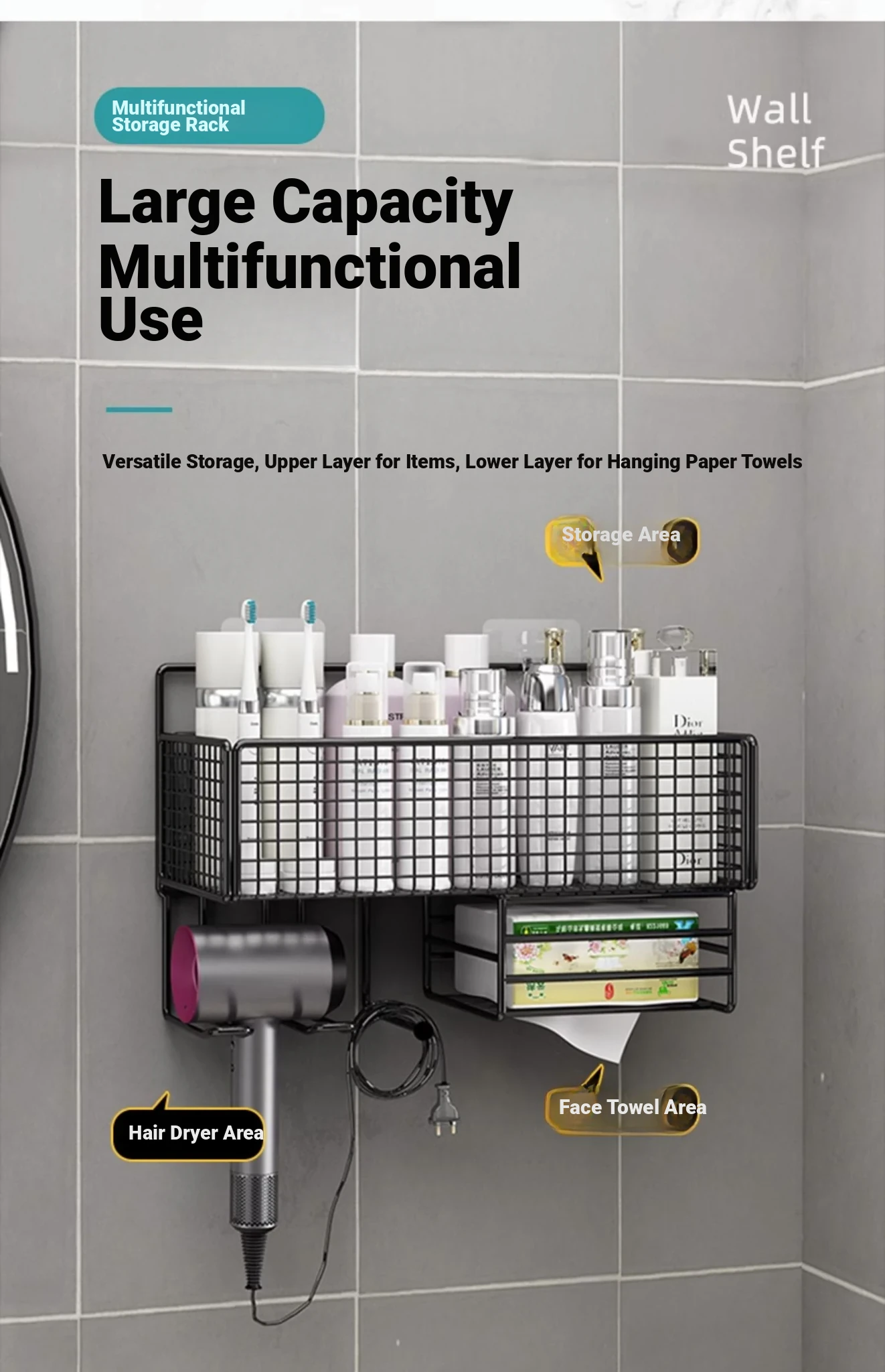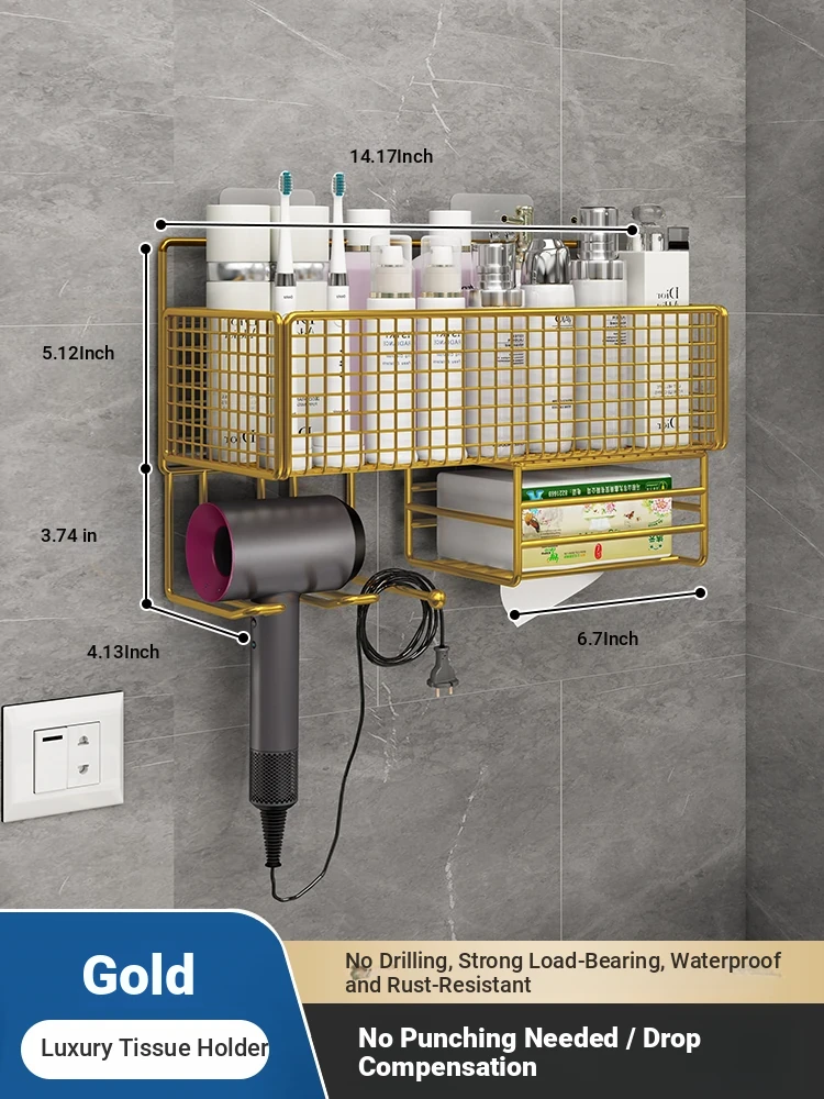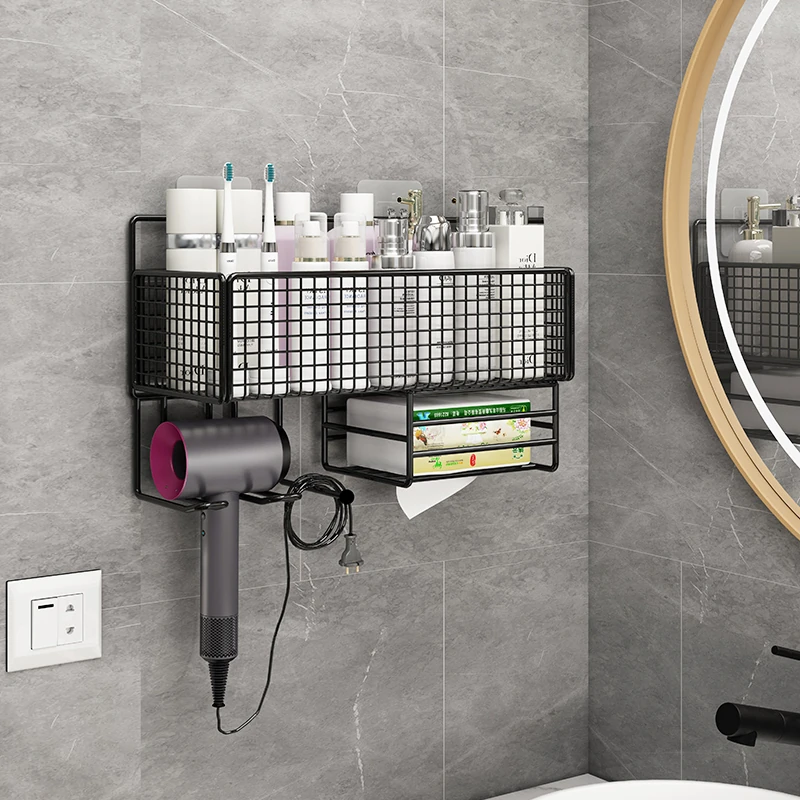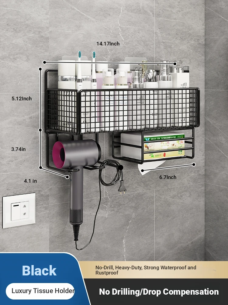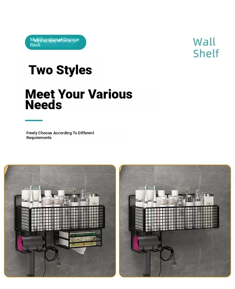 No-Drill Hair Dryer Shelf for Bathroom - Wall-Mounted Storage Rack for Toilets and Washbasins - Stylish and Practical Organizer for Your Bathroom Essentials