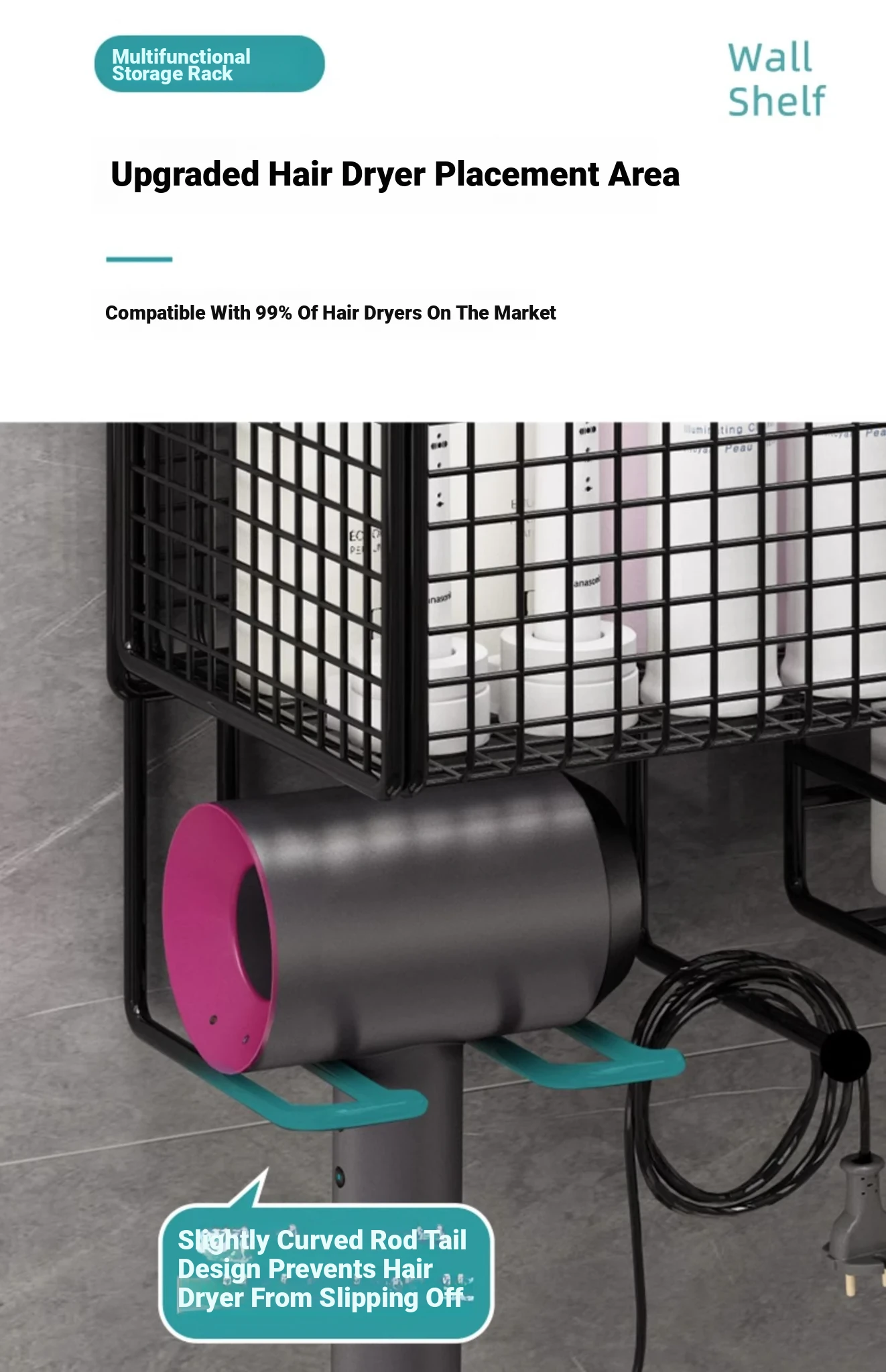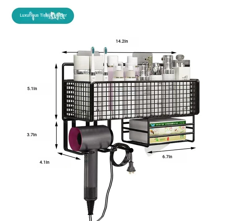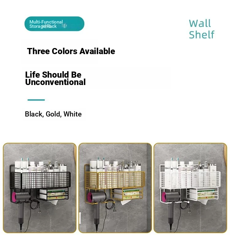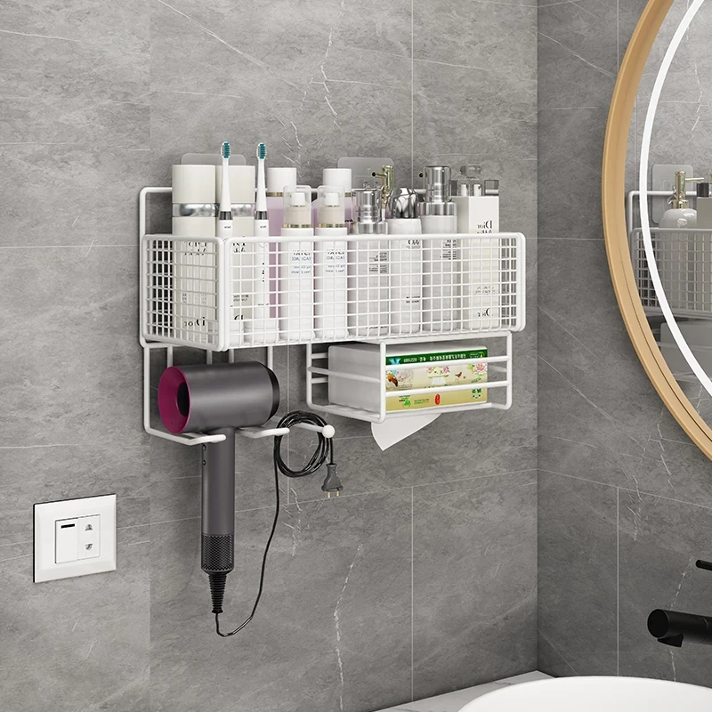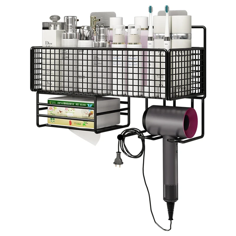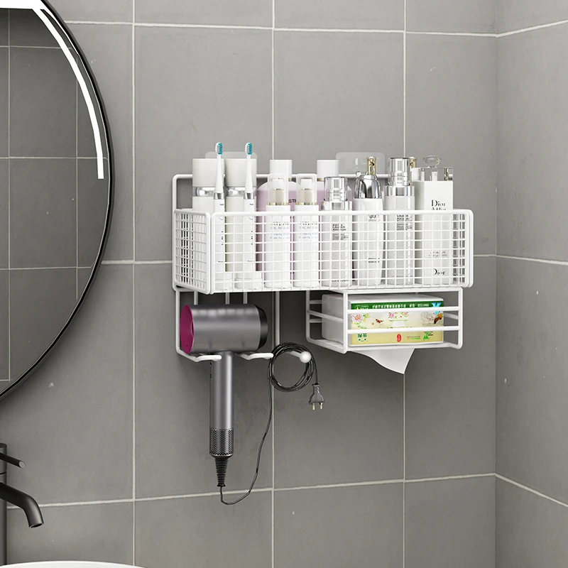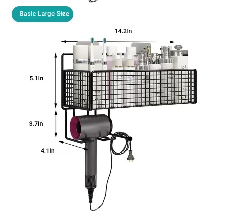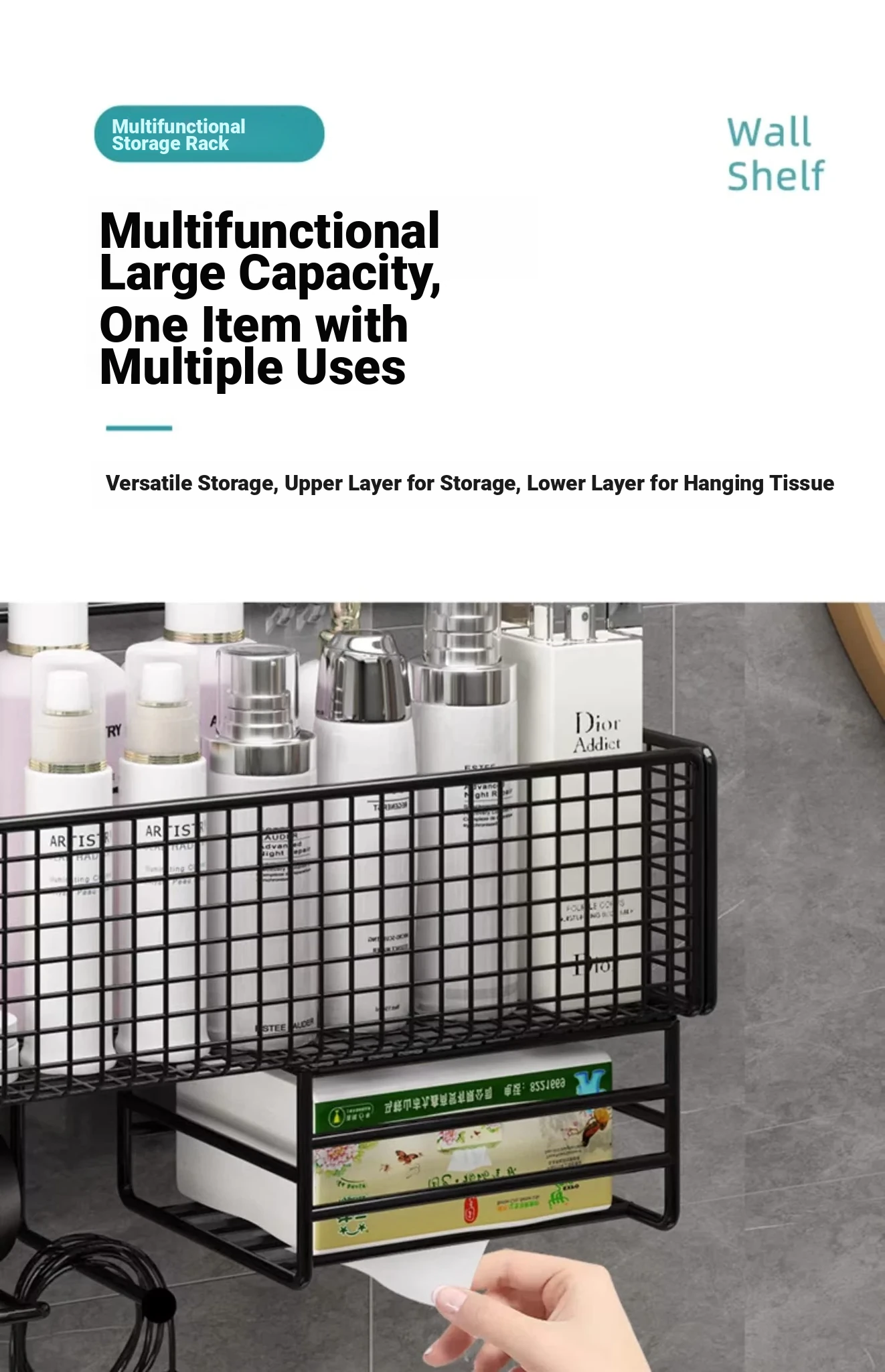 No-Drill Hair Dryer Shelf for Bathroom - Wall-Mounted Storage Rack for Toilets and Washbasins - Stylish and Practical Organizer for Your Bathroom Essentials
