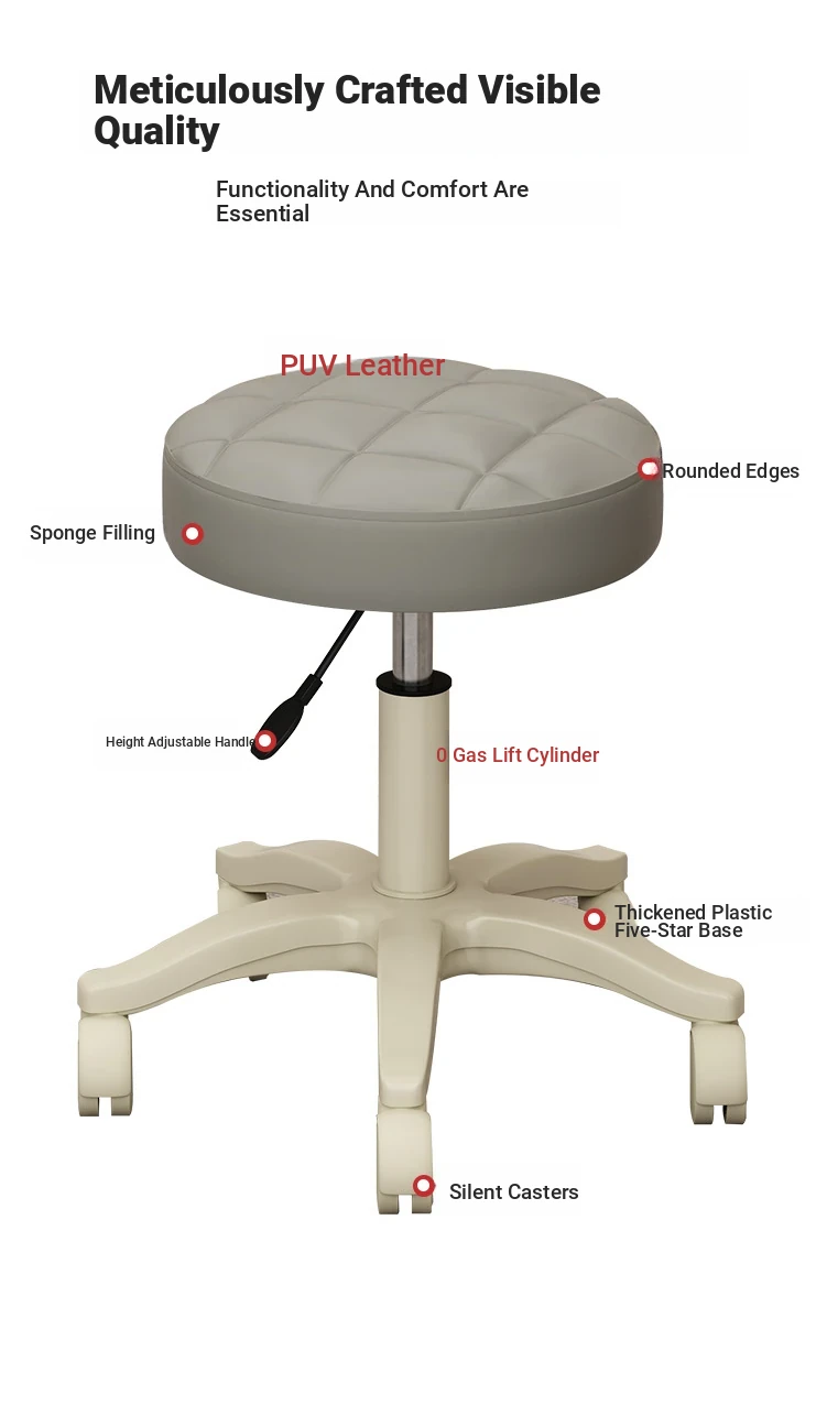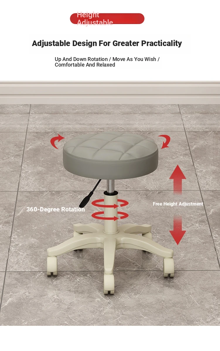 Salon-Quality Adjustable Rolling Stool for Home Use - Perfect for Hairdressers, Beauticians, and Nail Technicians - Comfortable and Stylish Beauty Chair with 360° Rotation and Height Adjustment