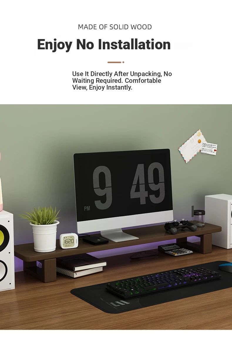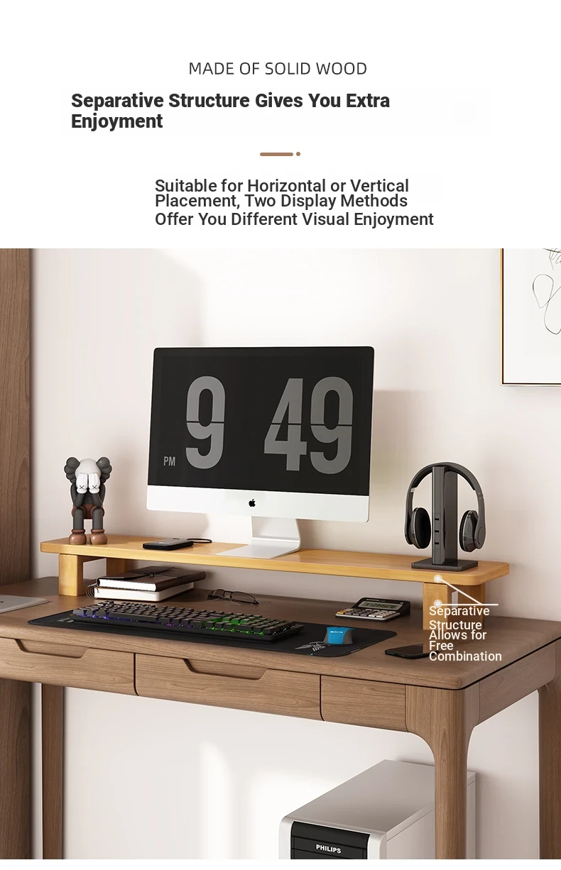 Solid Wood Monitor Stand - Elevate Your Desktop Screen for Better Ergonomics, Organize Your Workspace with This Stylish Laptop Riser and Storage Solution
