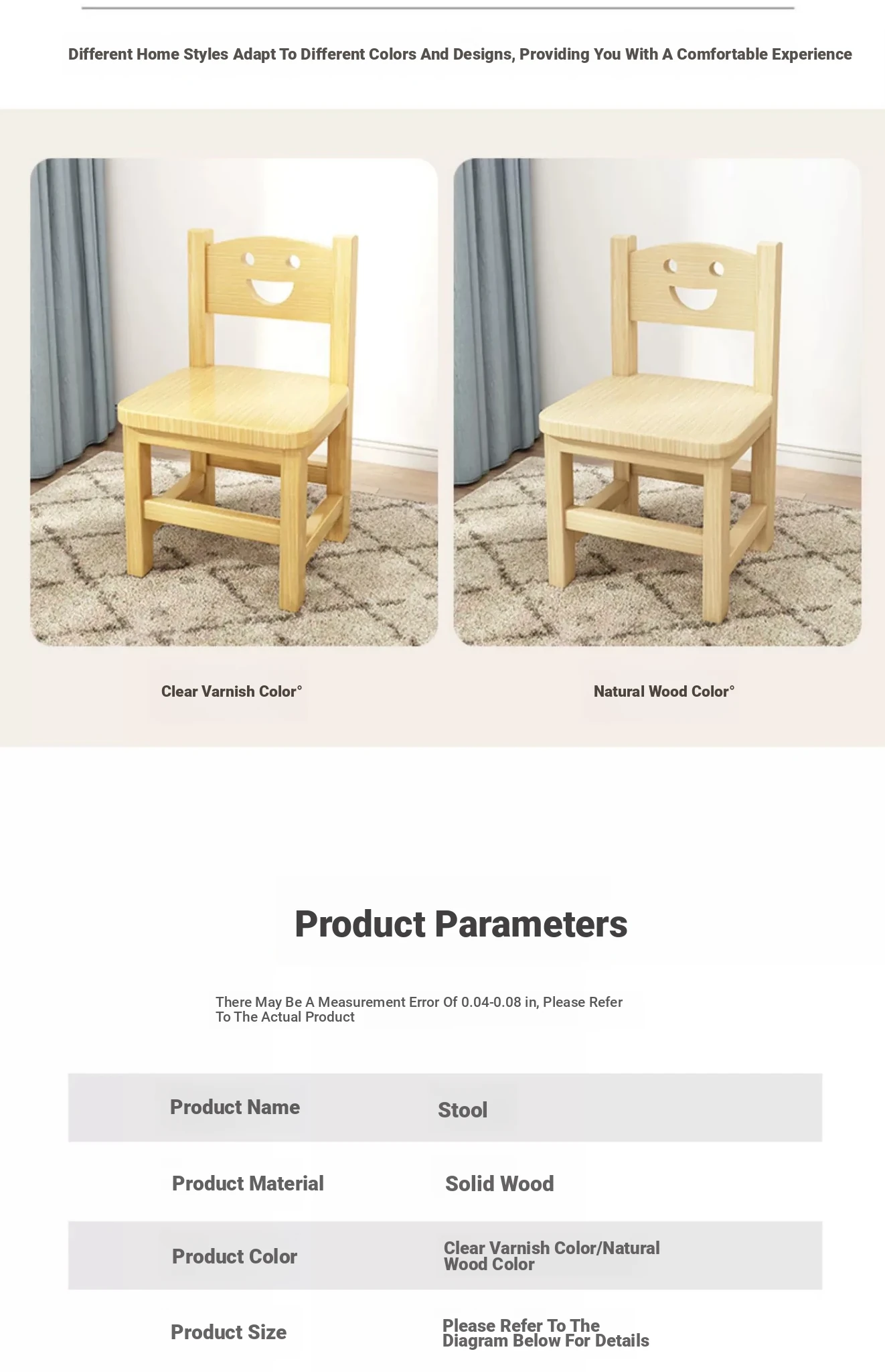 Solid Wood Small Stool - Versatile Home Use Chair for Kids, with Backrest - Ideal for Learning and Play in Kindergartens - Stylish and Durable Square Design