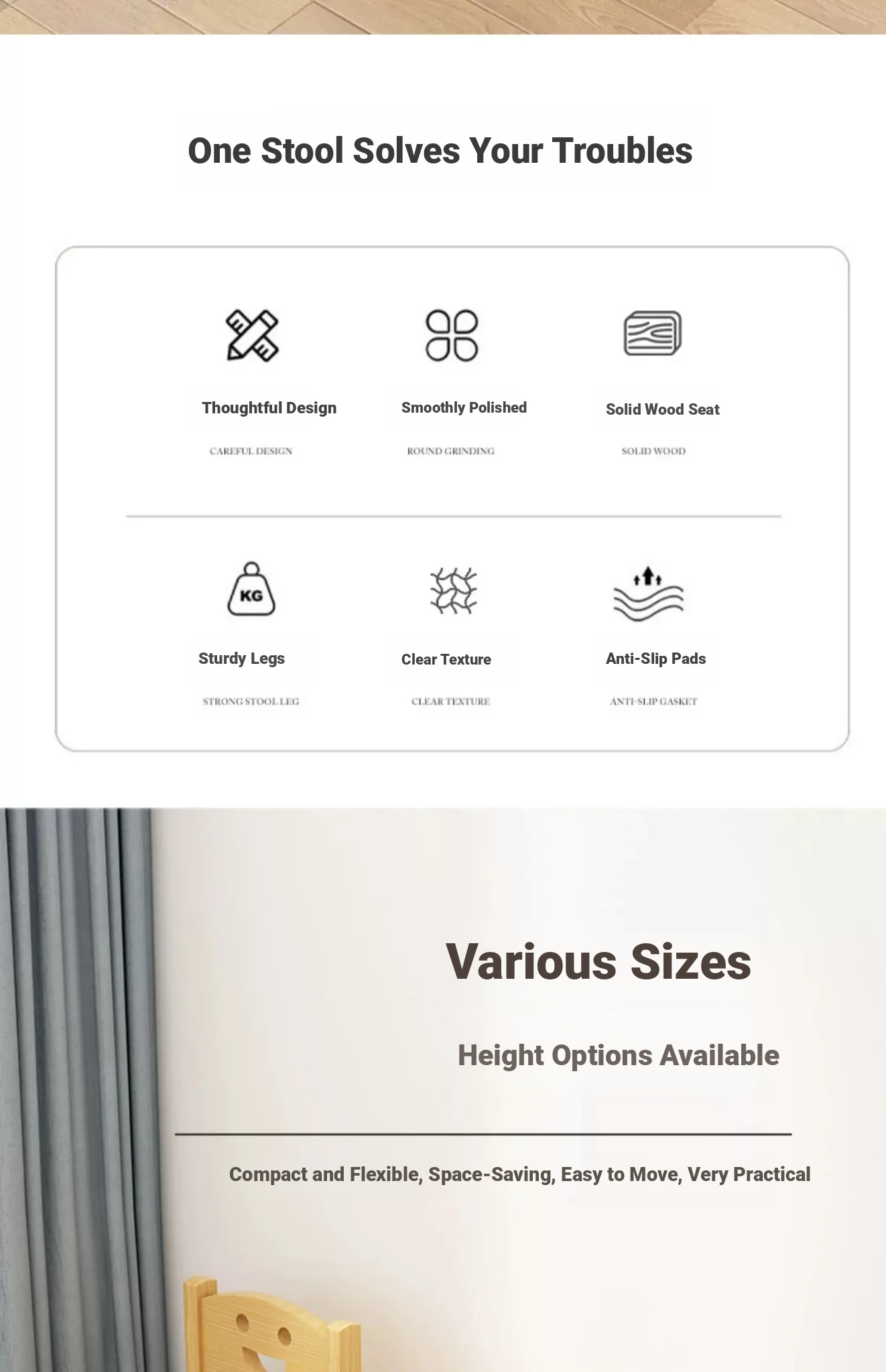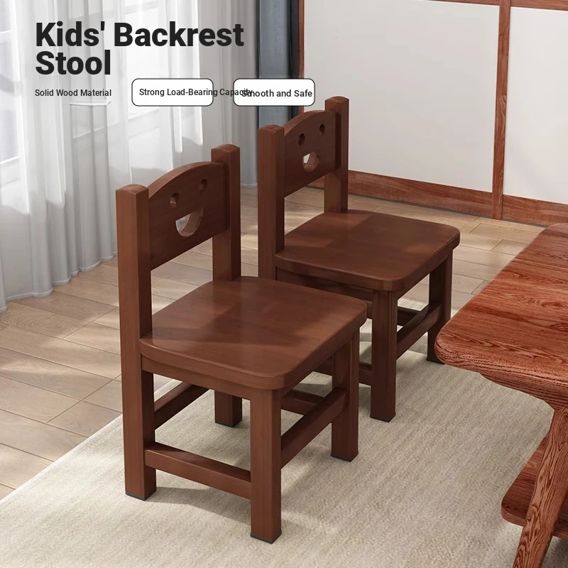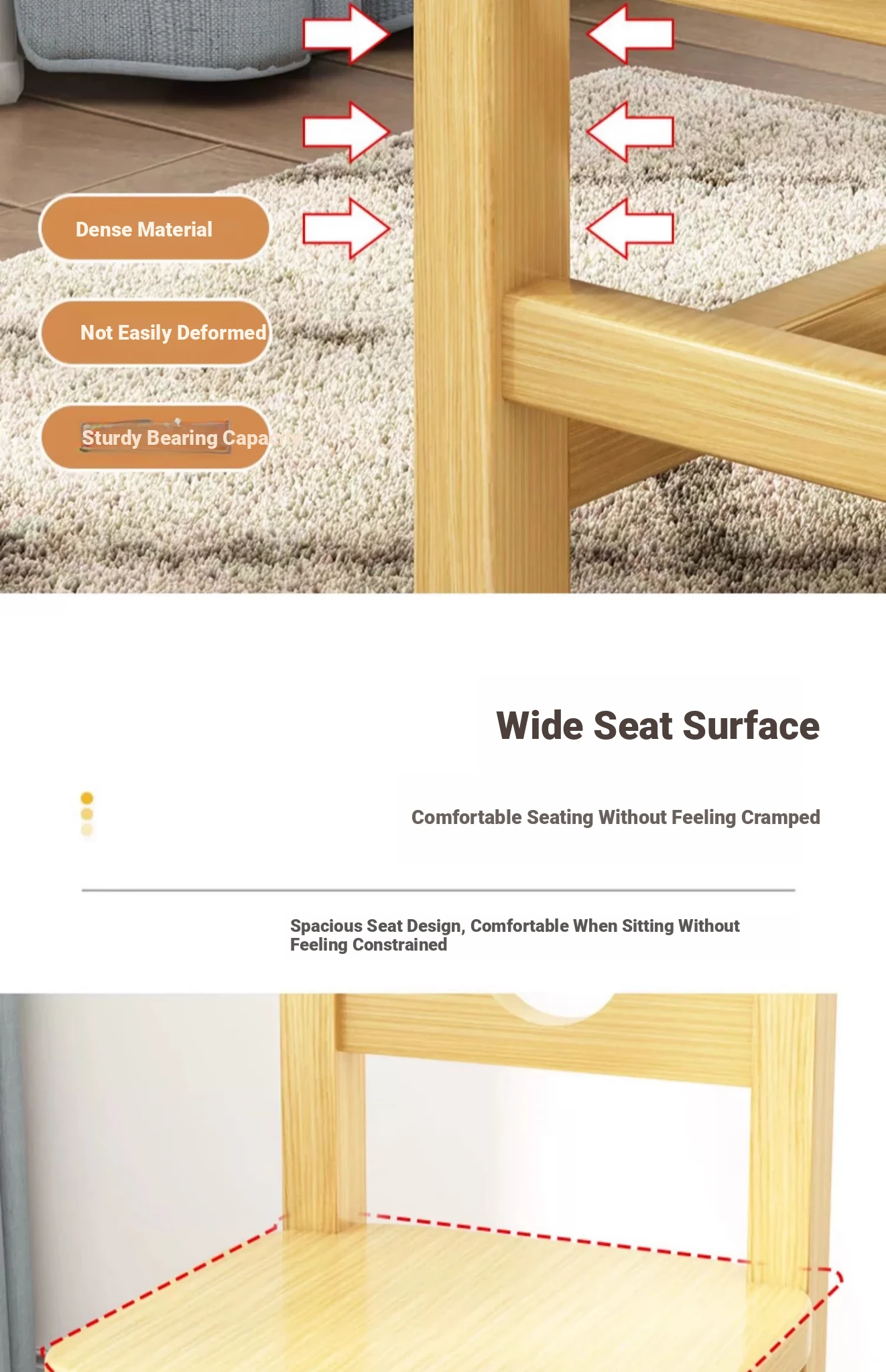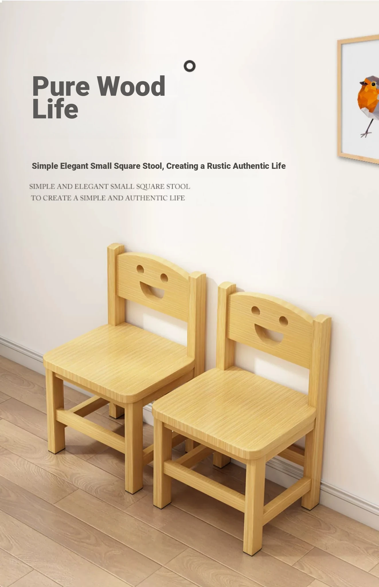Solid Wood Stool - Minimalist Design with Backrest, Perfect for Living Room, Great as a Low Bench or Kids' Chair, Sturdy Wooden Square Stool for Versatile Home Use