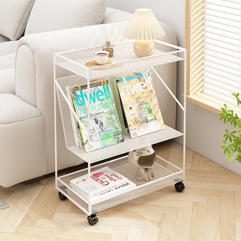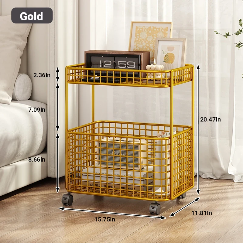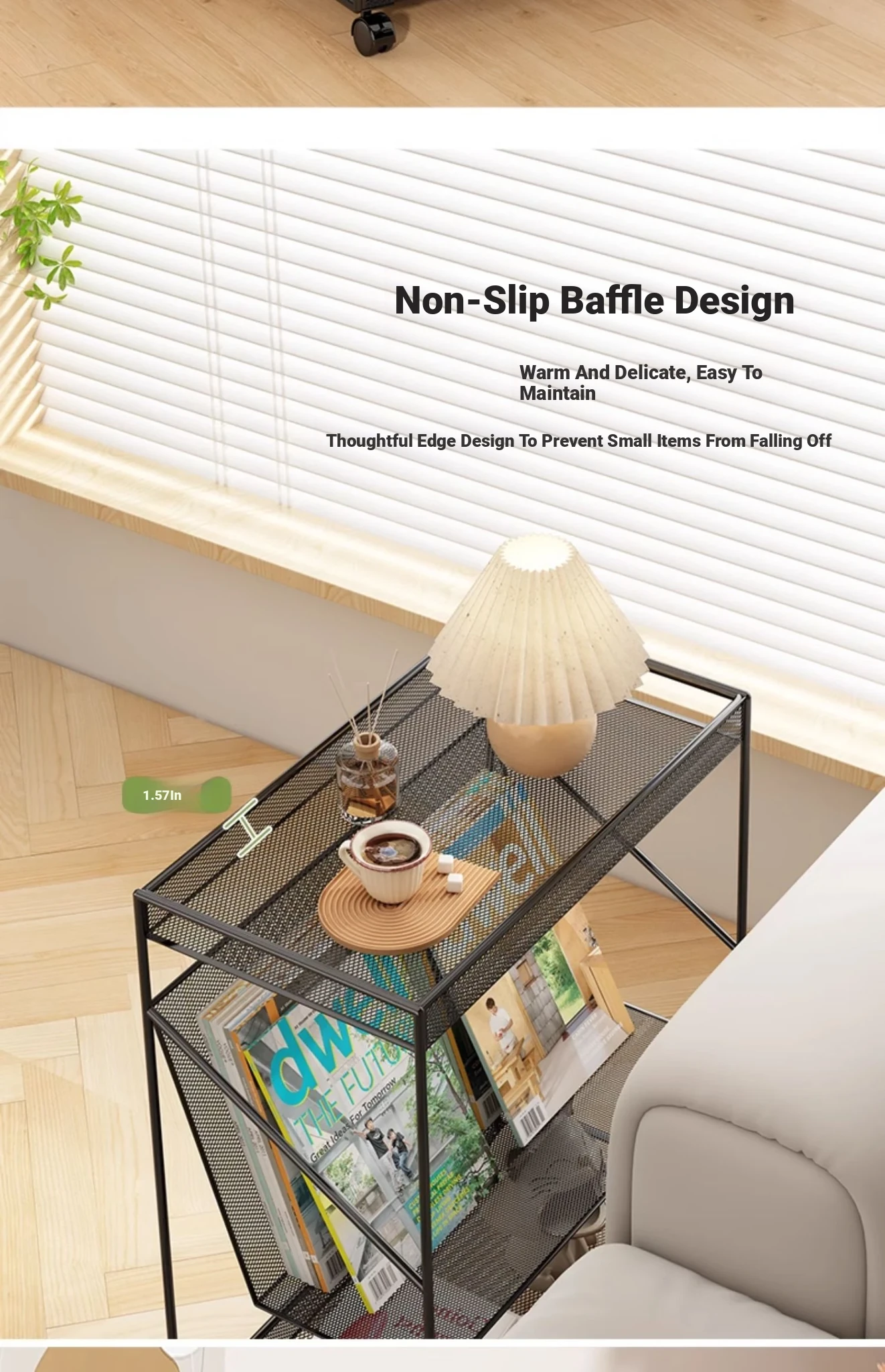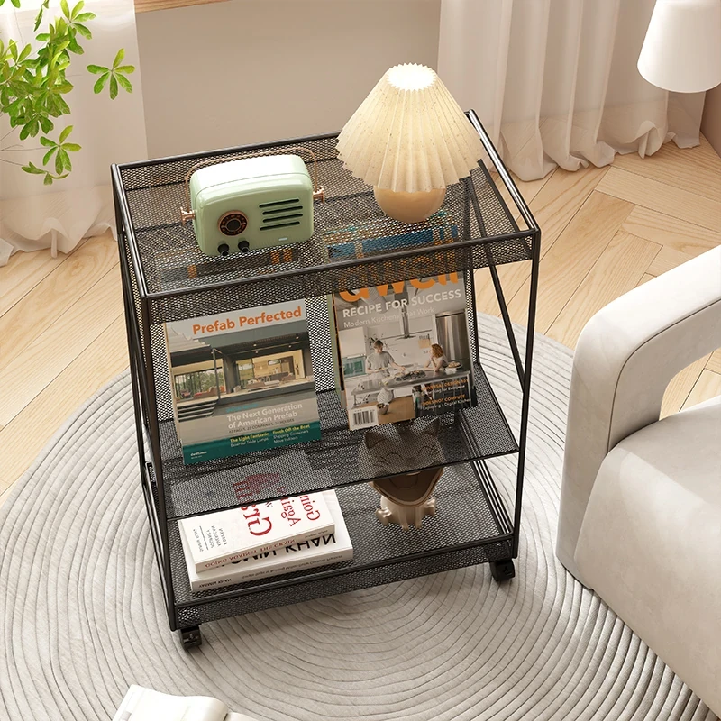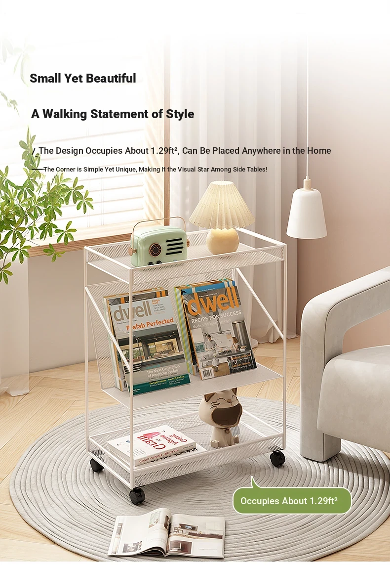 Stylish and Versatile Small Side Table - Movable Storage Rack for Living Room, Bedroom Nightstand, and Corner - Elegant Iron Frame Design for Convenient Organization and Aesthetic Appeal