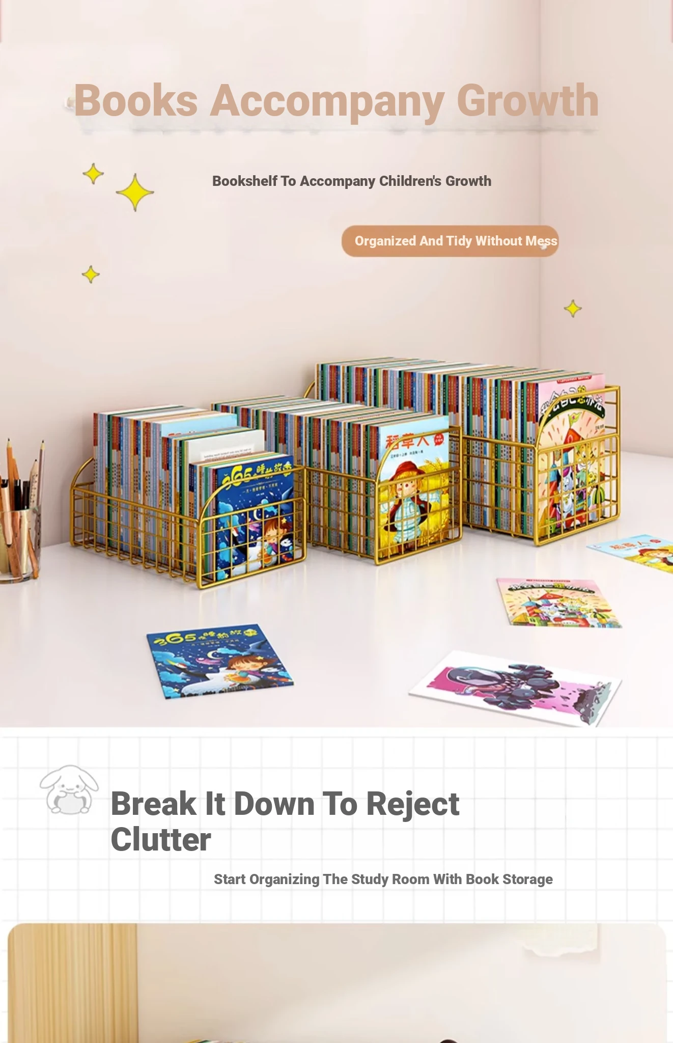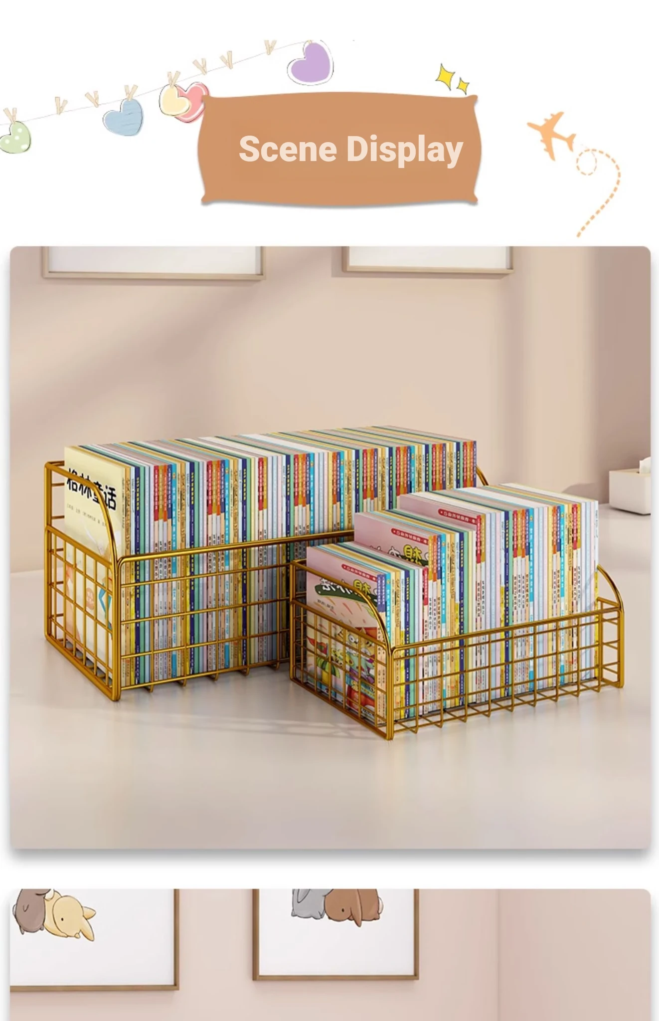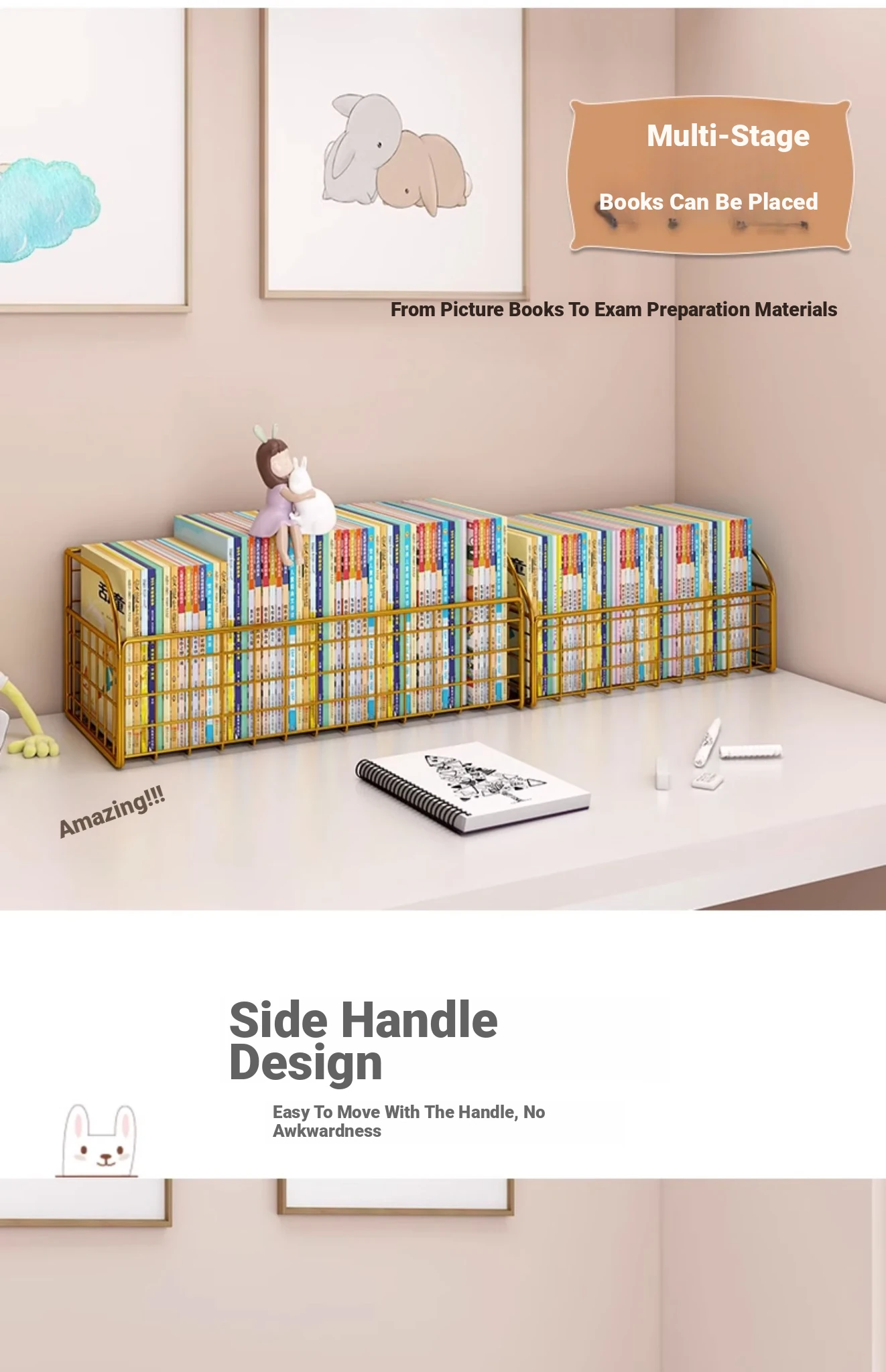 Stylish Desktop Bookshelf Organizer - Iron Storage Rack for Children's Picture Books and Toys - Perfect for Desk Organization and Clutter-Free Living