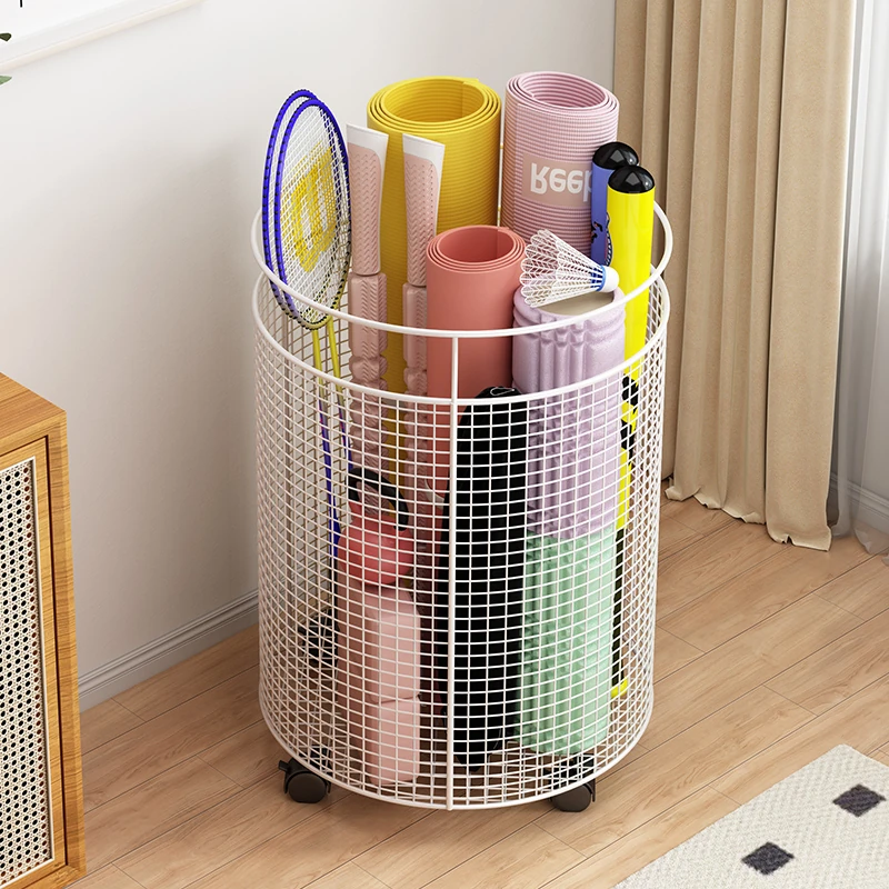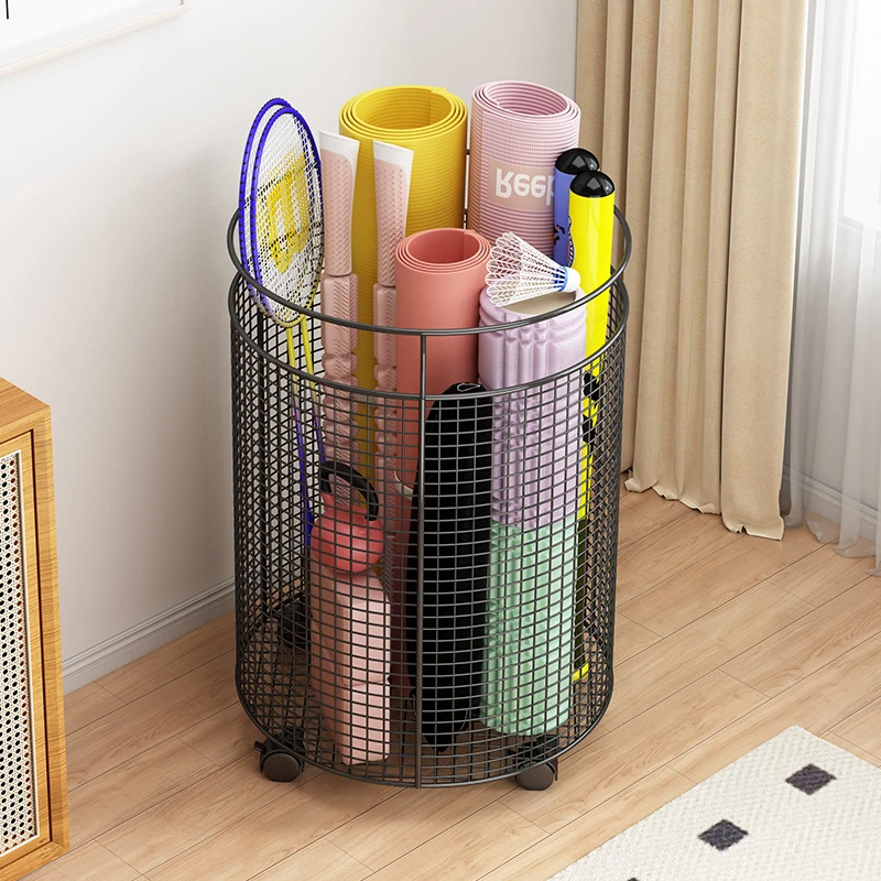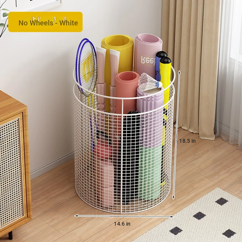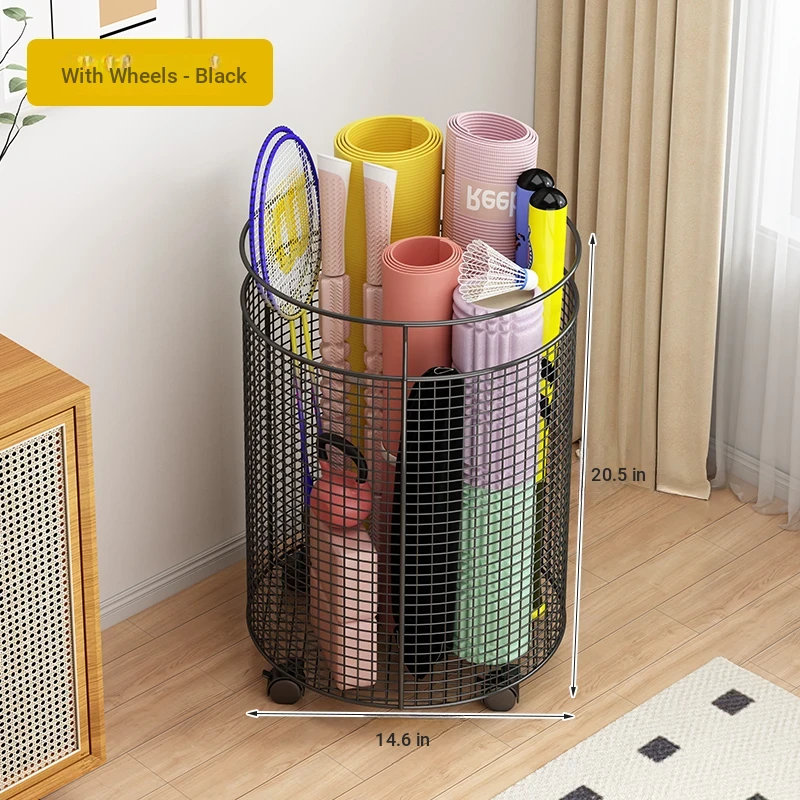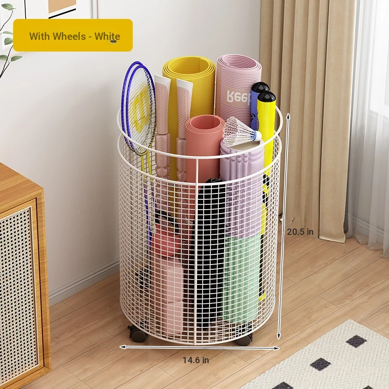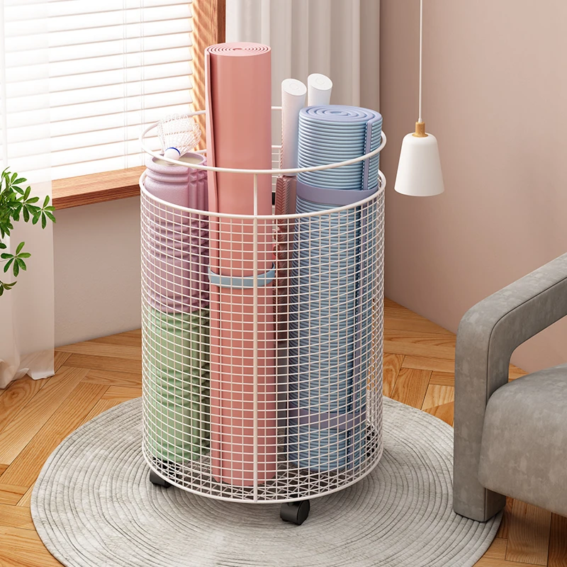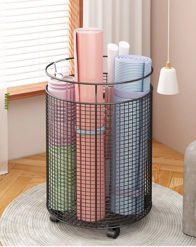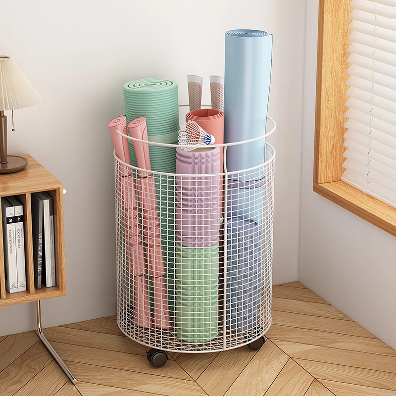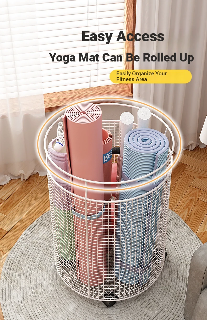 Yoga Mat Storage Rack with Wheels - Multi-functional Floor Organizer for Fitness Equipment, Foam Rollers, and Dumbbells - Stylish Round Storage Bin for Your Home Gym