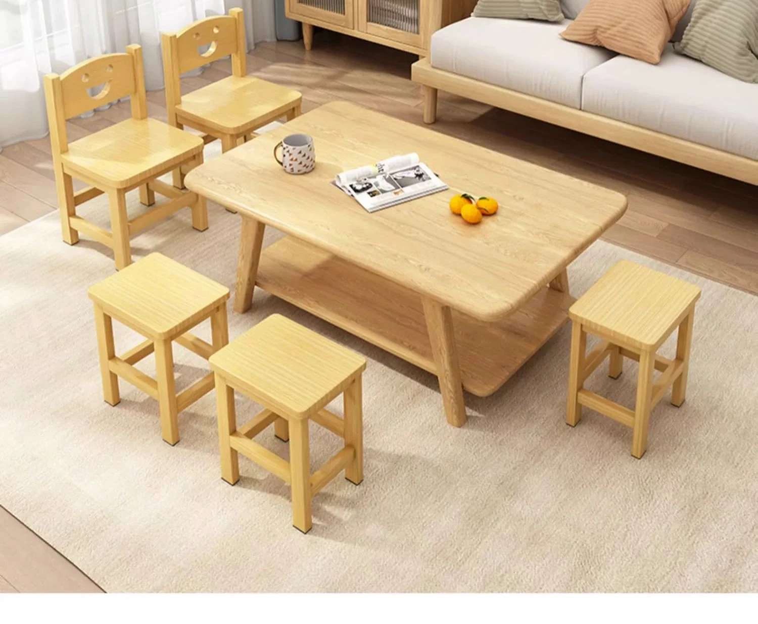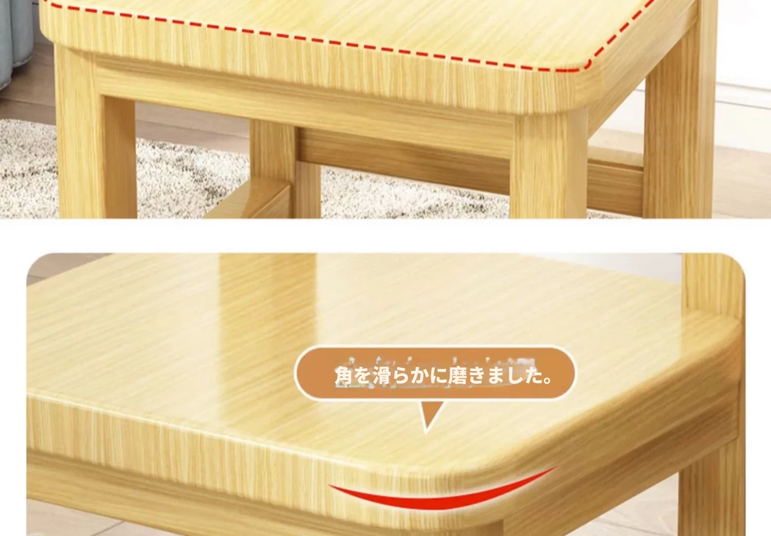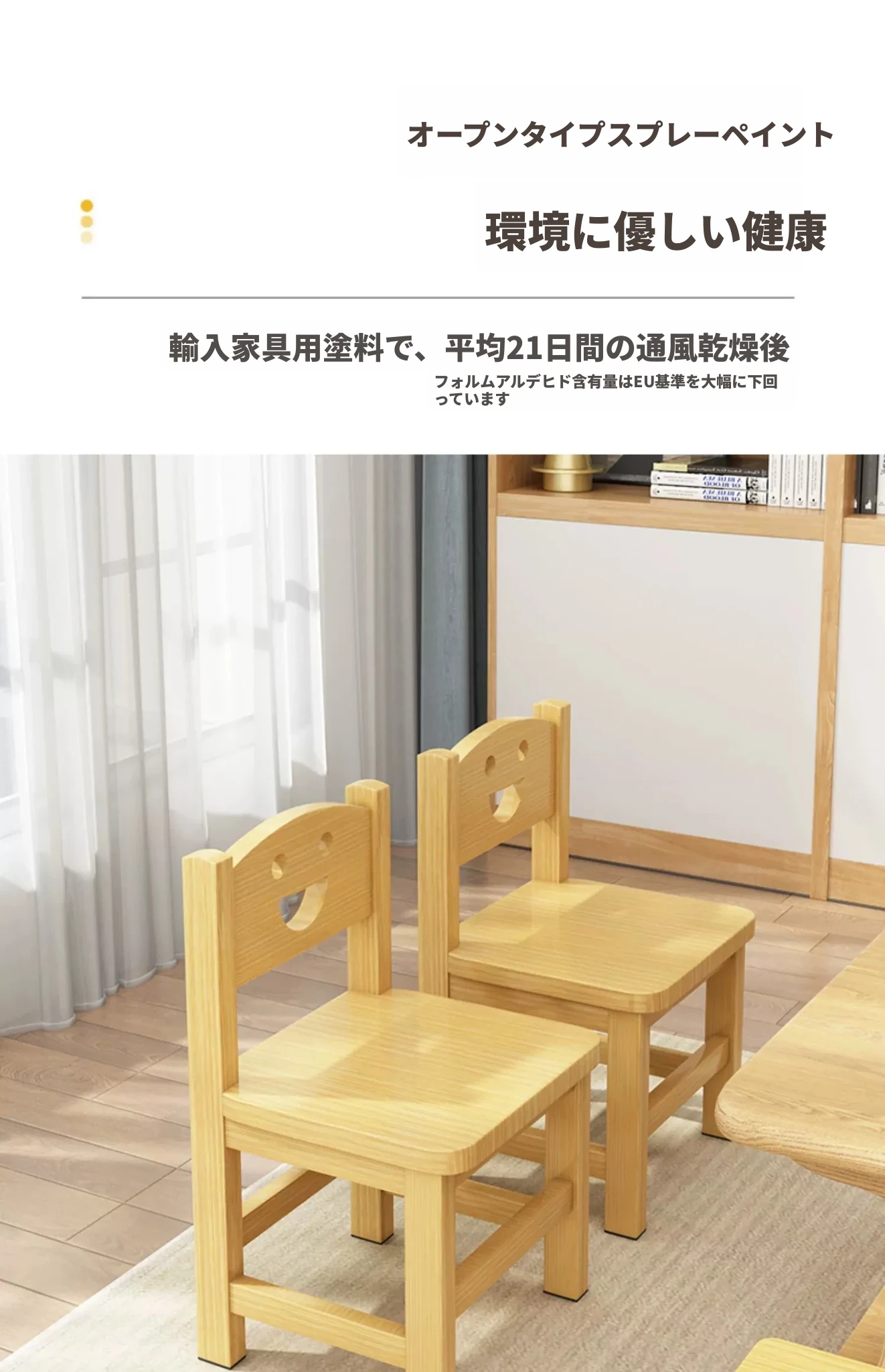 子供用背もたれ付き小椅子|家庭用・赤ちゃんのためのダイニングチェア|無垢材使用|幼稚園にも最適なかわいいスマイルデザイン|コンパクトでおしゃれな小さなスツール!