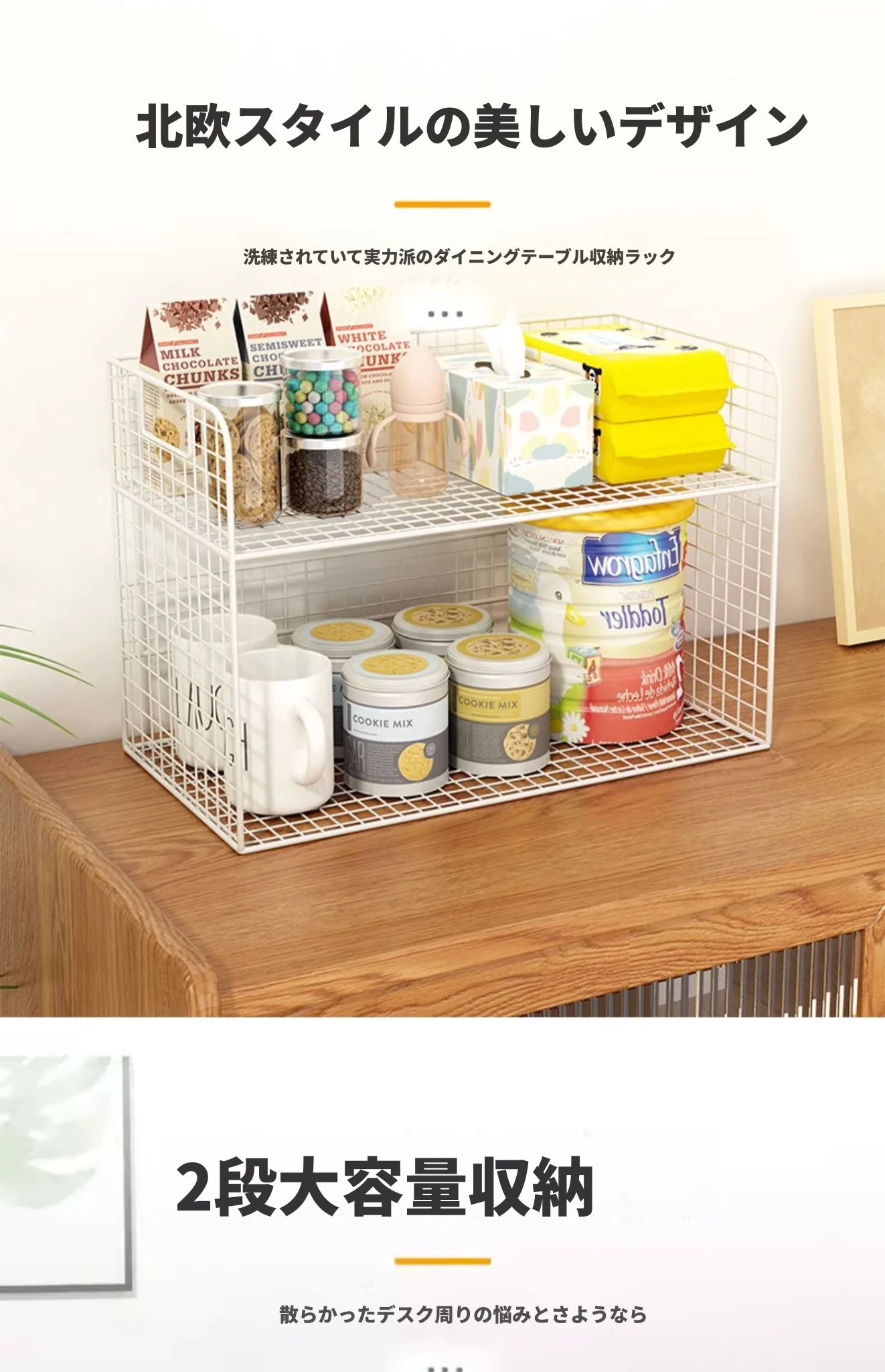 デスク収納ラック|ダイニングテーブルの整理整頓に最適!リビングや窓辺で使えるおしゃれな飲み物・スナックラック。卓上スペースを有効活用し、生活をもっと便利に!