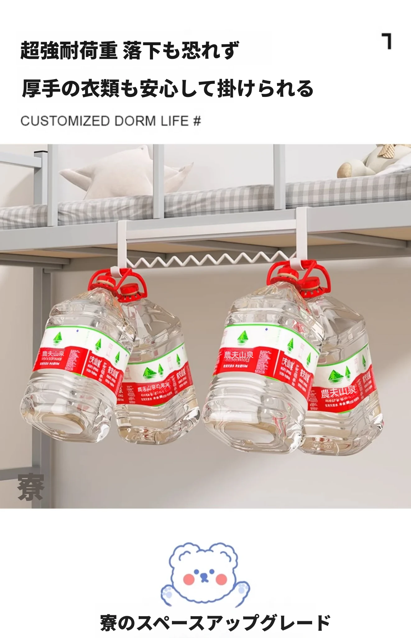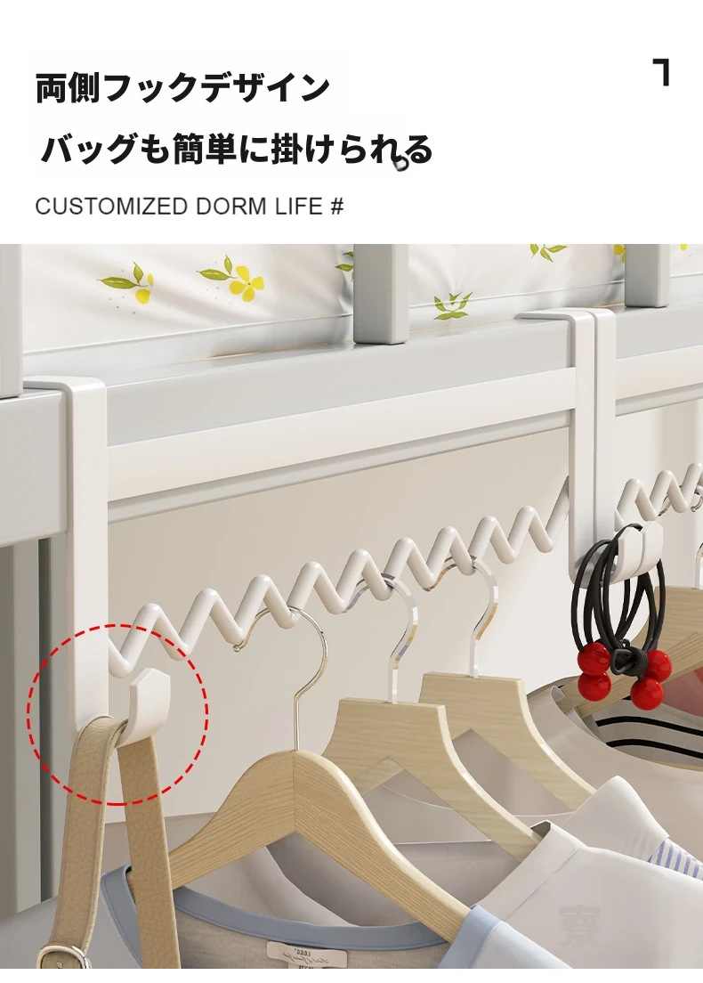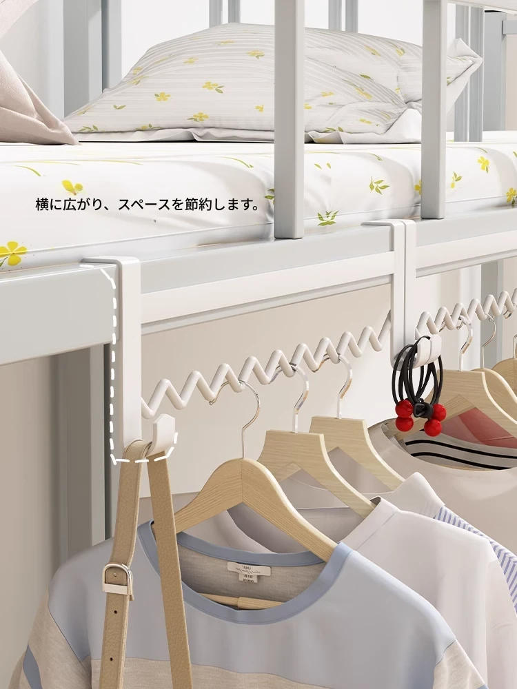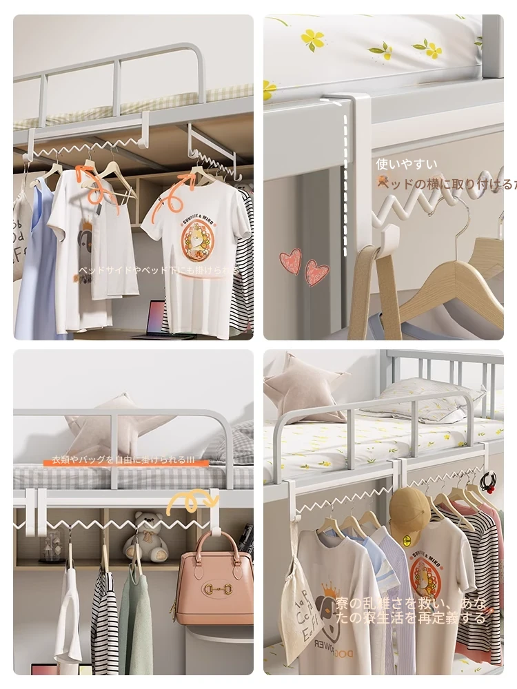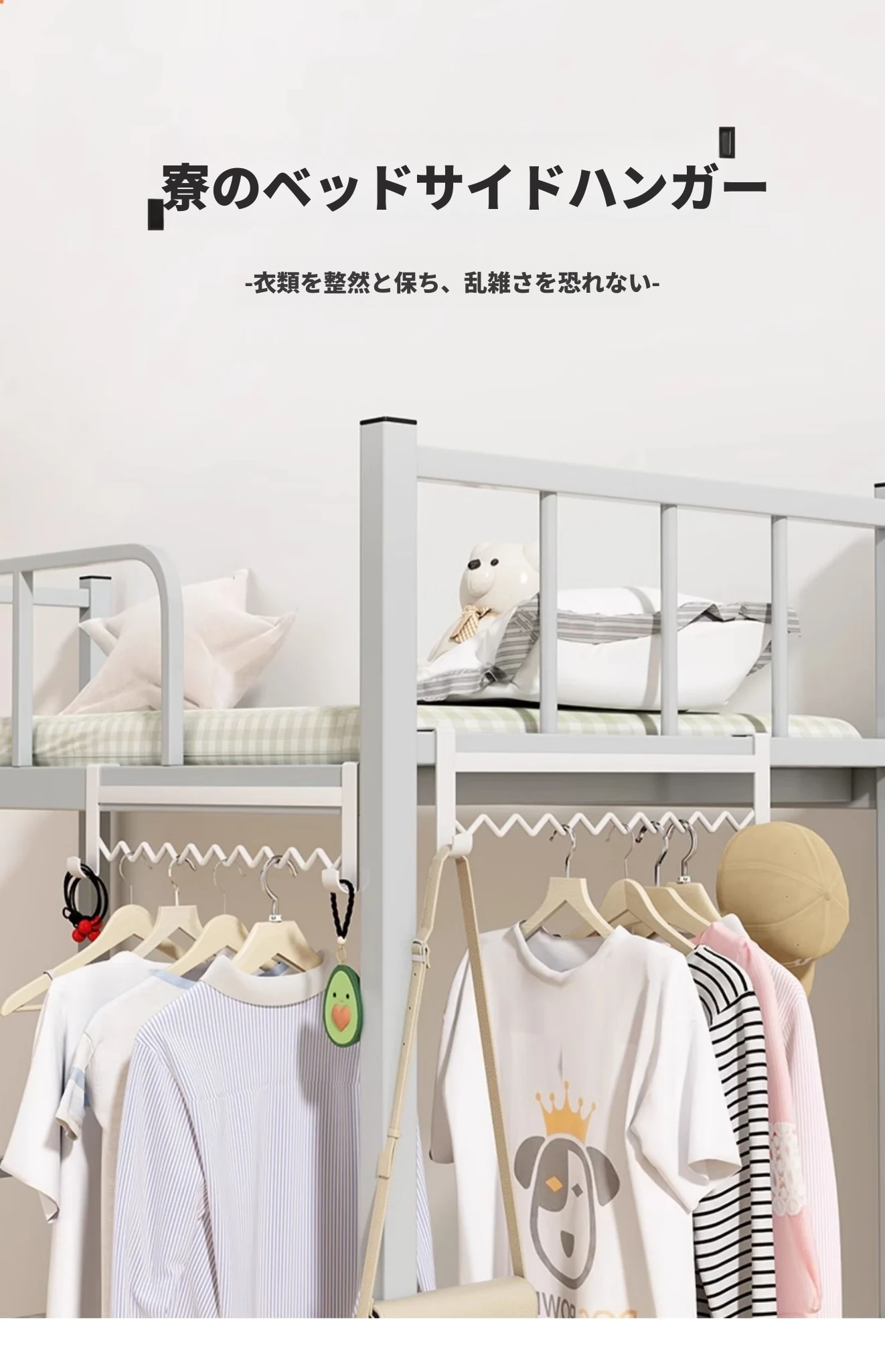 寮用便利ハンガー!学生必見のベッドサイドフック&収納ラック!上下二段ベッド対応、ドア裏にも設置可能で、スペースを有効活用!お部屋をすっきり整頓!