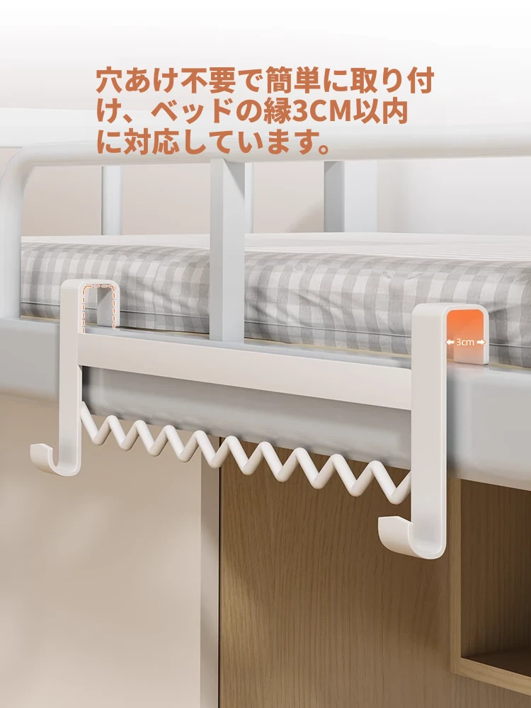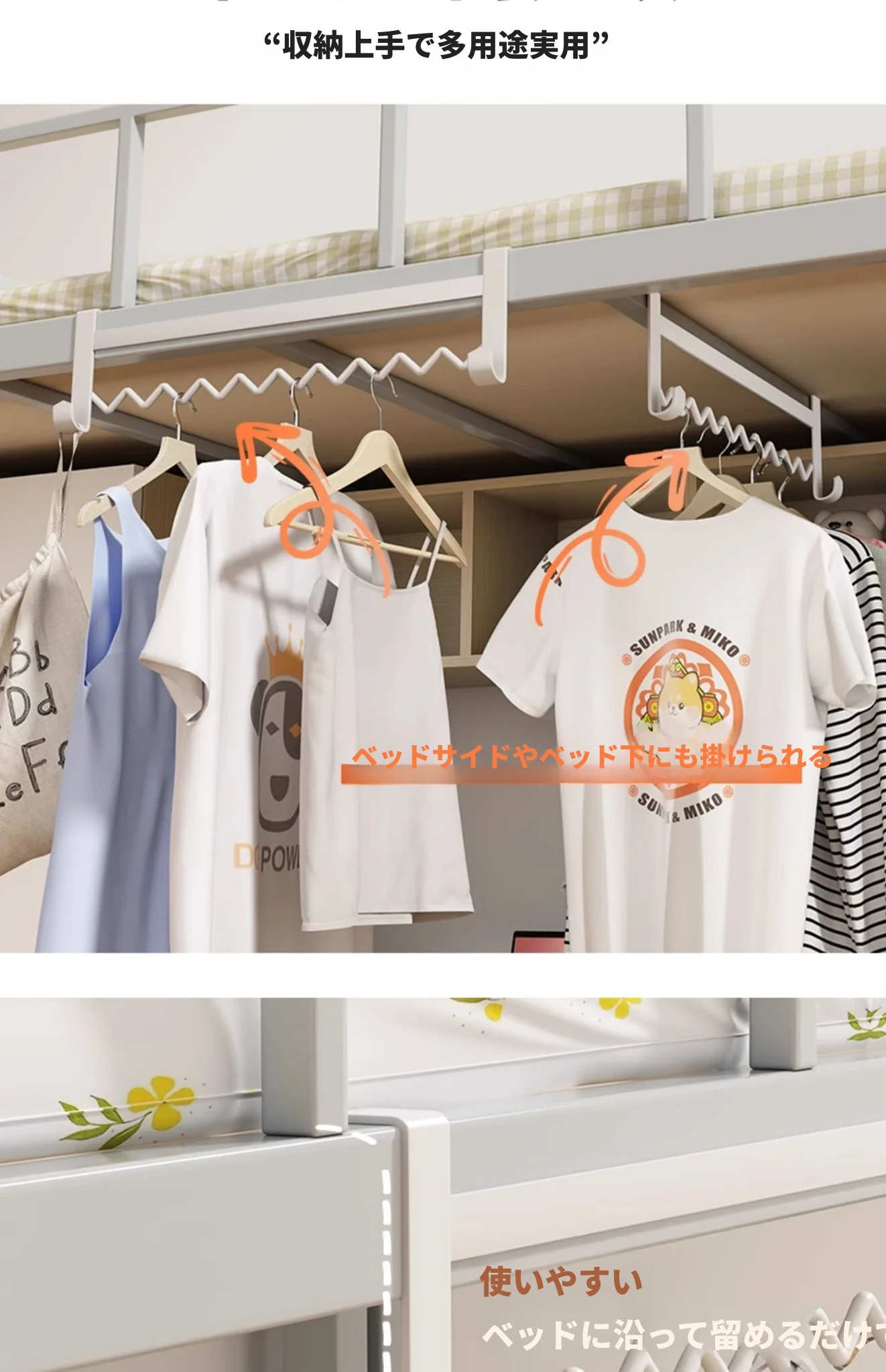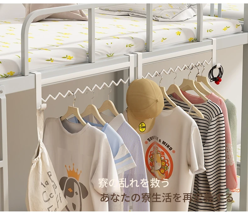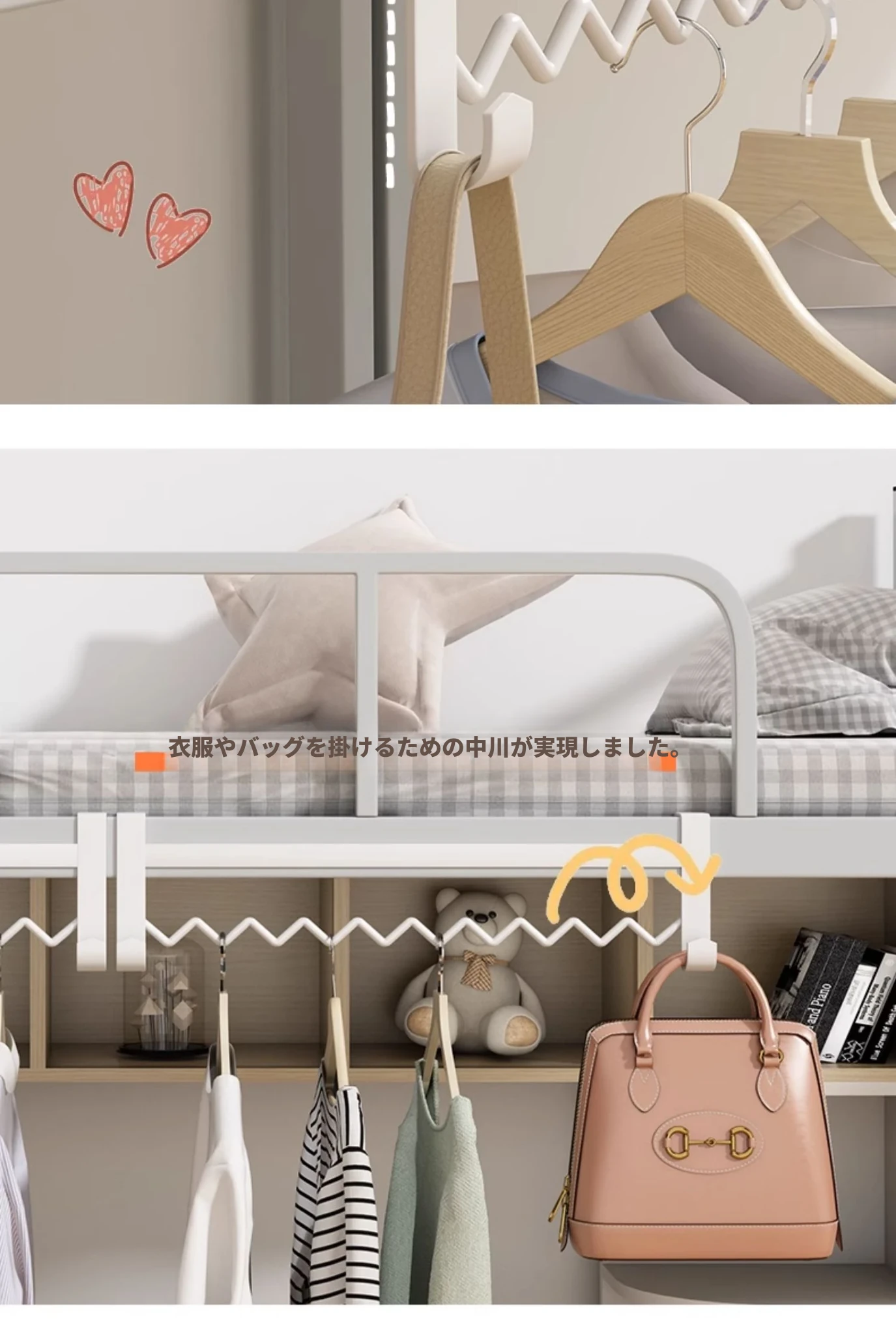寮用便利ハンガー!学生必見のベッドサイドフック&収納ラック!上下二段ベッド対応、ドア裏にも設置可能で、スペースを有効活用!お部屋をすっきり整頓!
