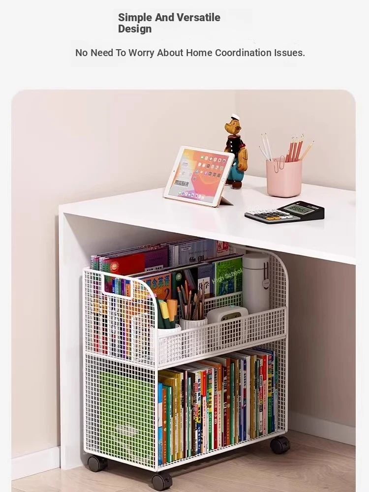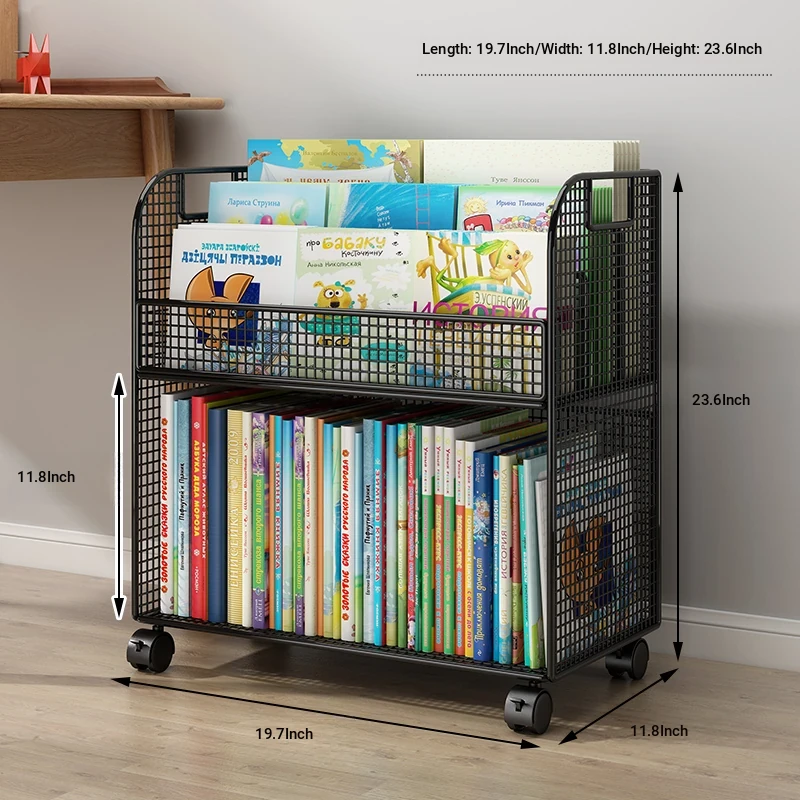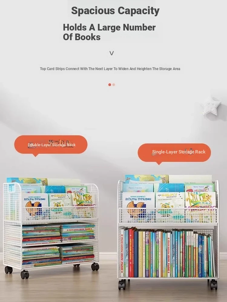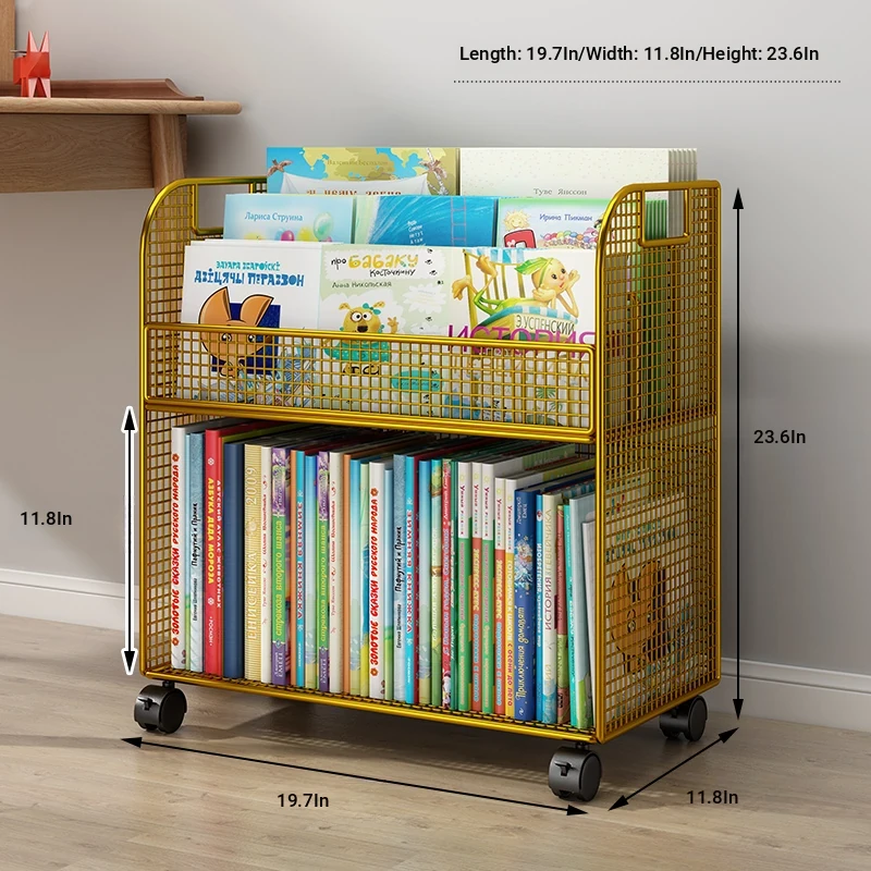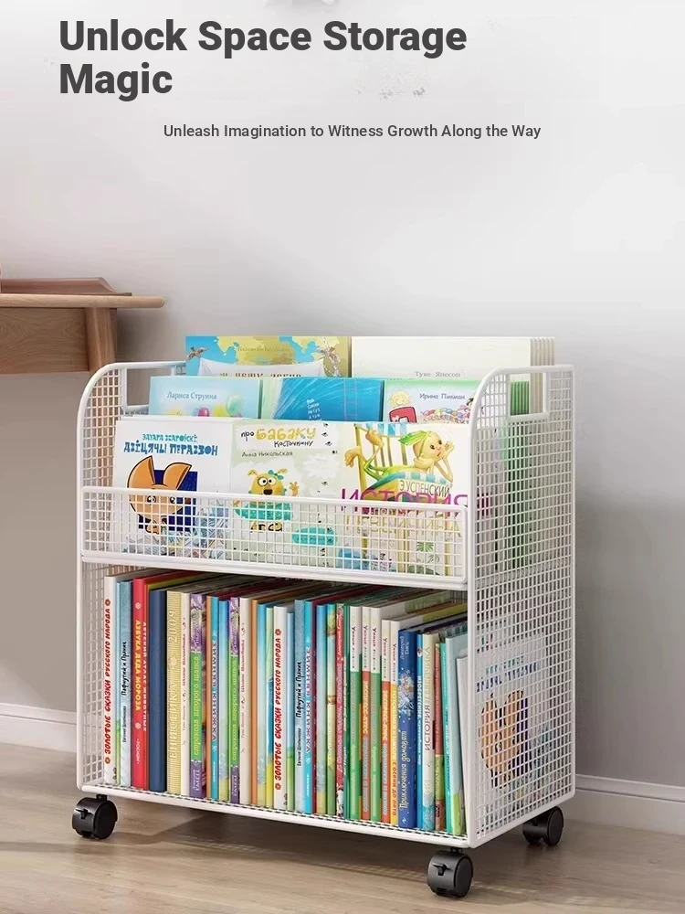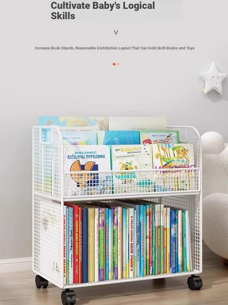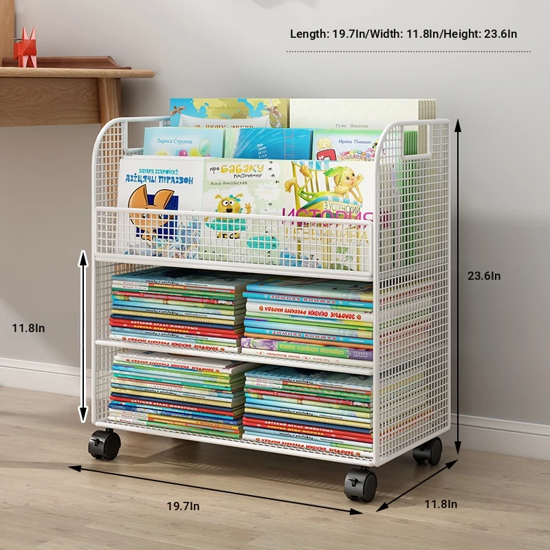 Kids' Floor Bookshelf with Wheels - Portable Storage Cart for Children's Picture Books, Ideal for Playroom or Study Area, Easy to Move and Organize Your Little One's Reading Collection