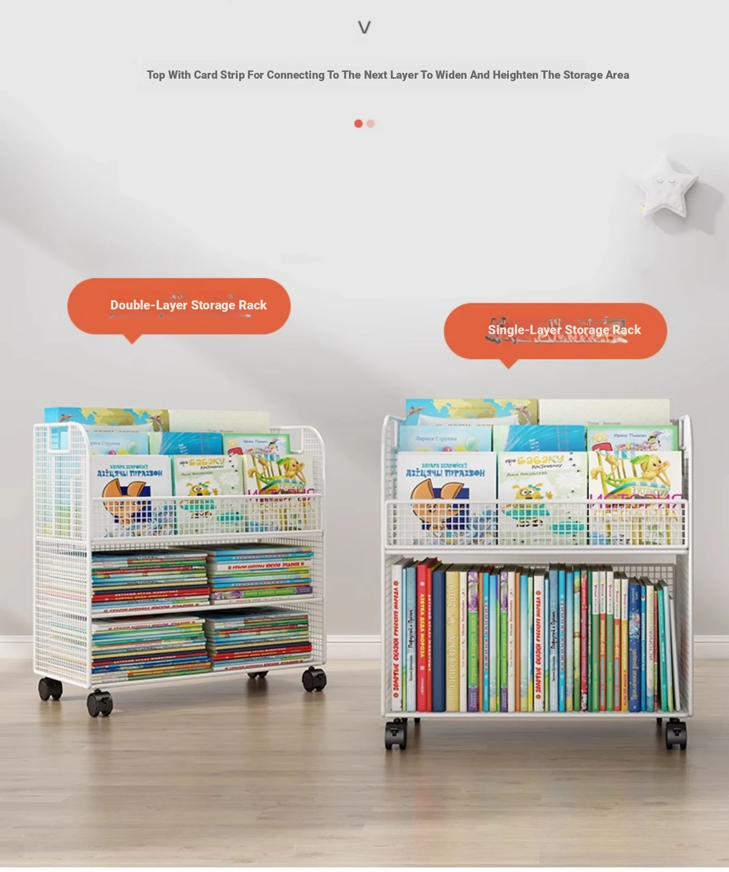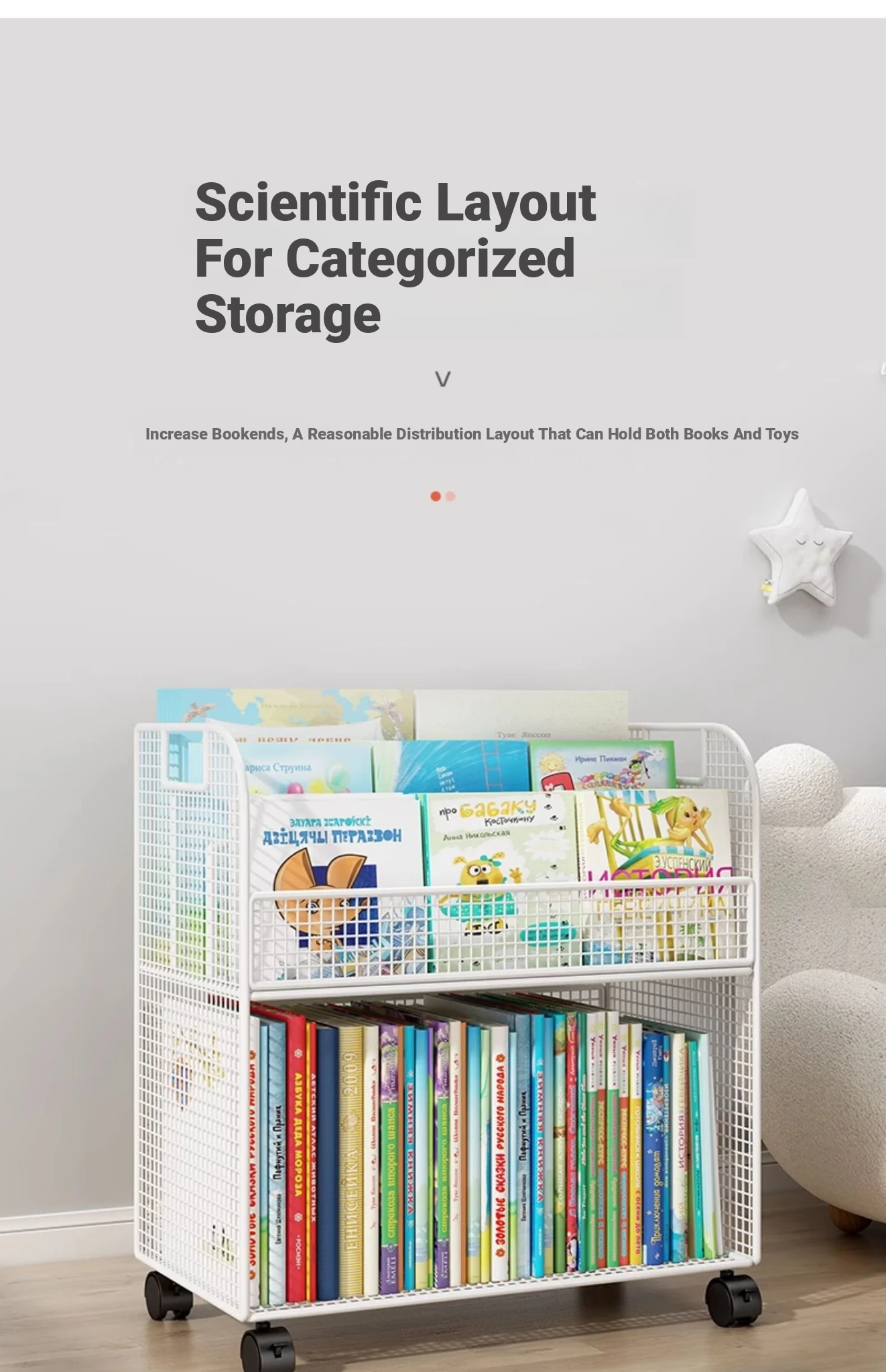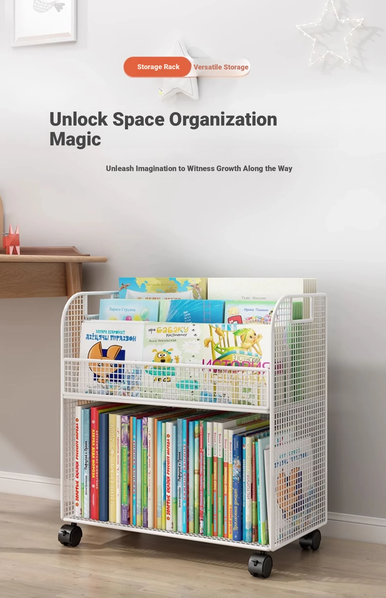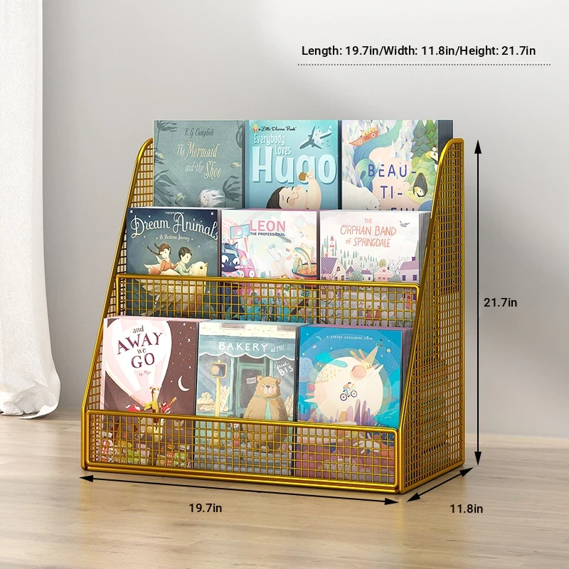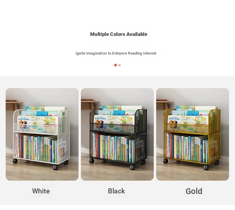 Kids' Floor Bookshelf with Wheels - Portable Storage Cart for Children's Picture Books, Ideal for Playroom or Study Area, Easy to Move and Organize Your Little One's Reading Collection