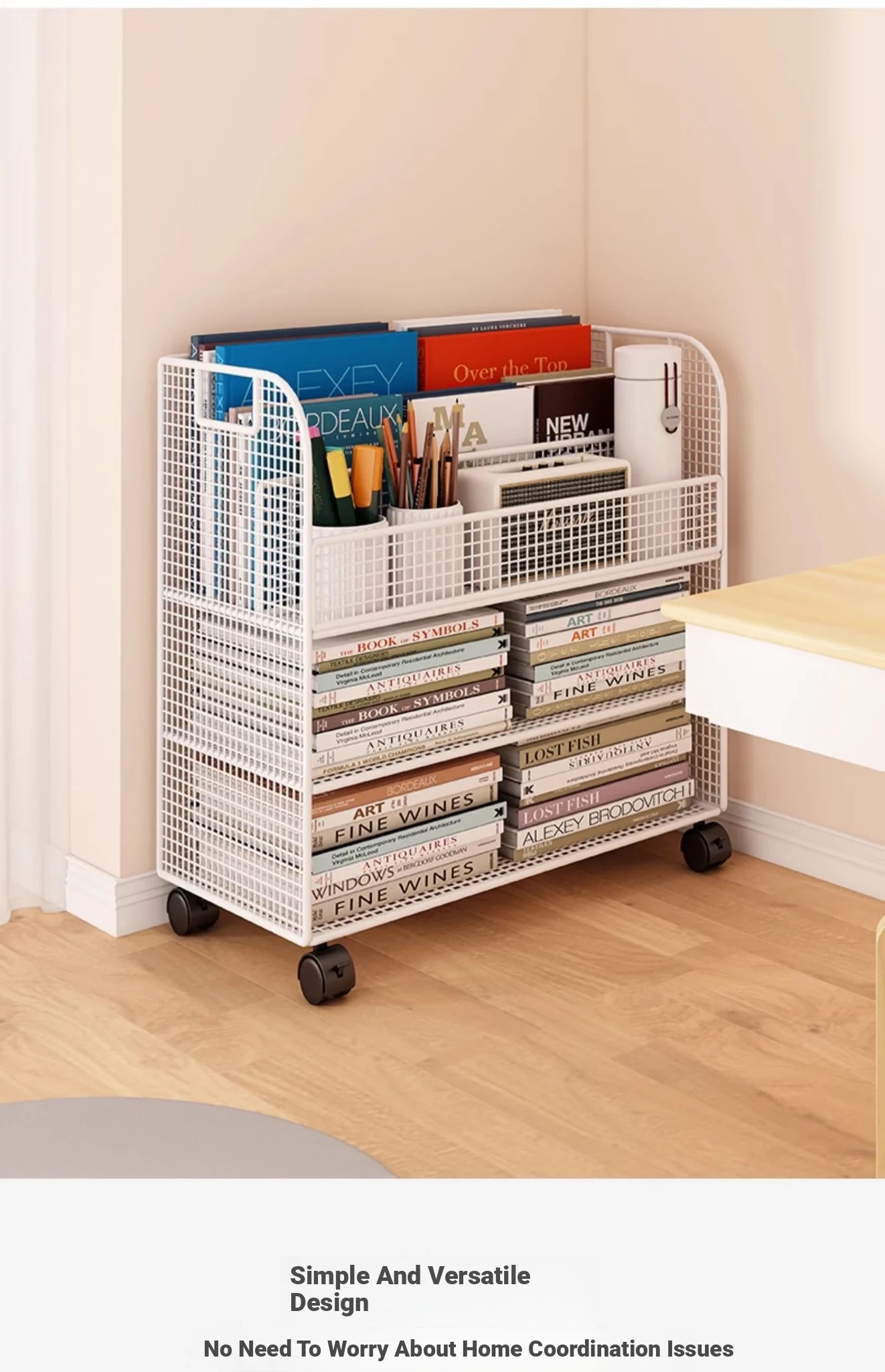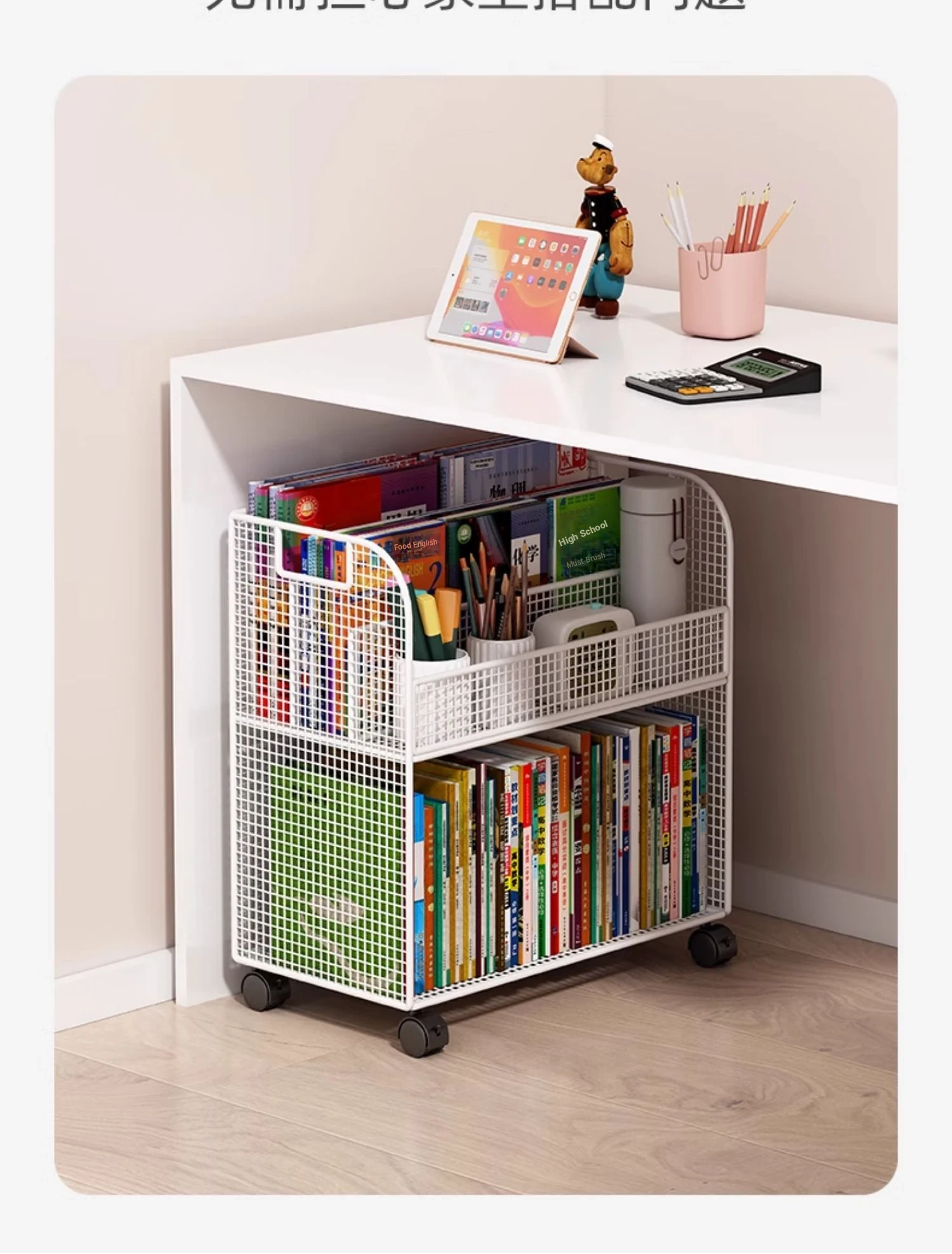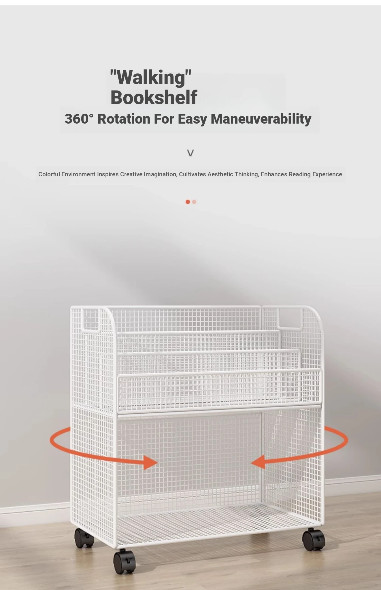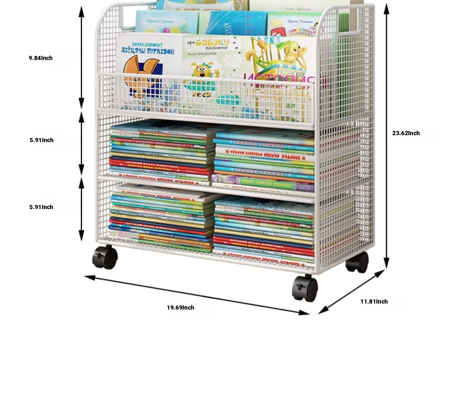 Kids' Floor Bookshelf with Wheels - Portable Storage Cart for Children's Picture Books, Ideal for Playroom or Study Area, Easy to Move and Organize Your Little One's Reading Collection