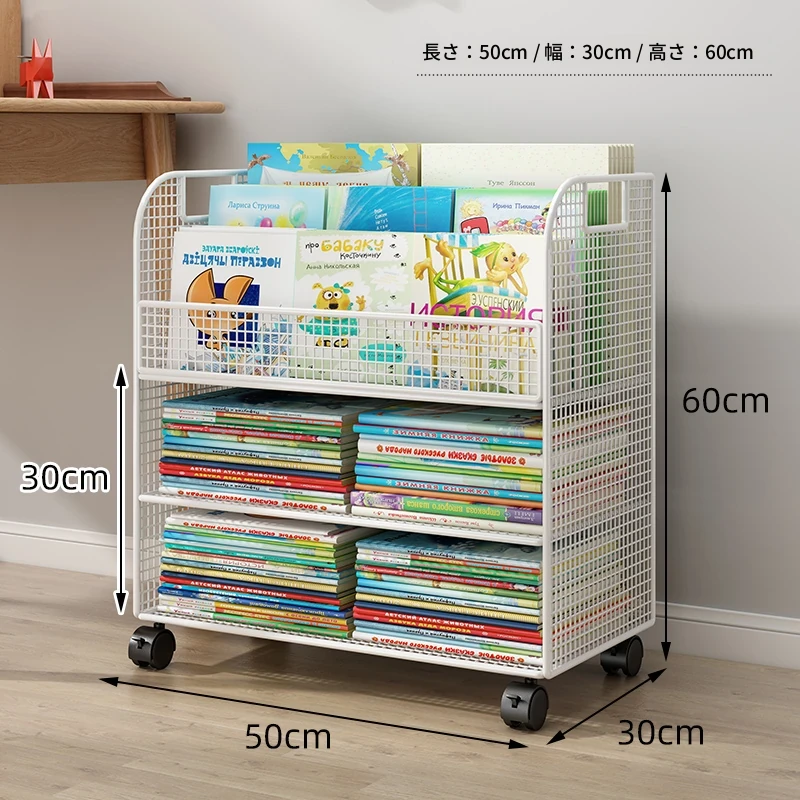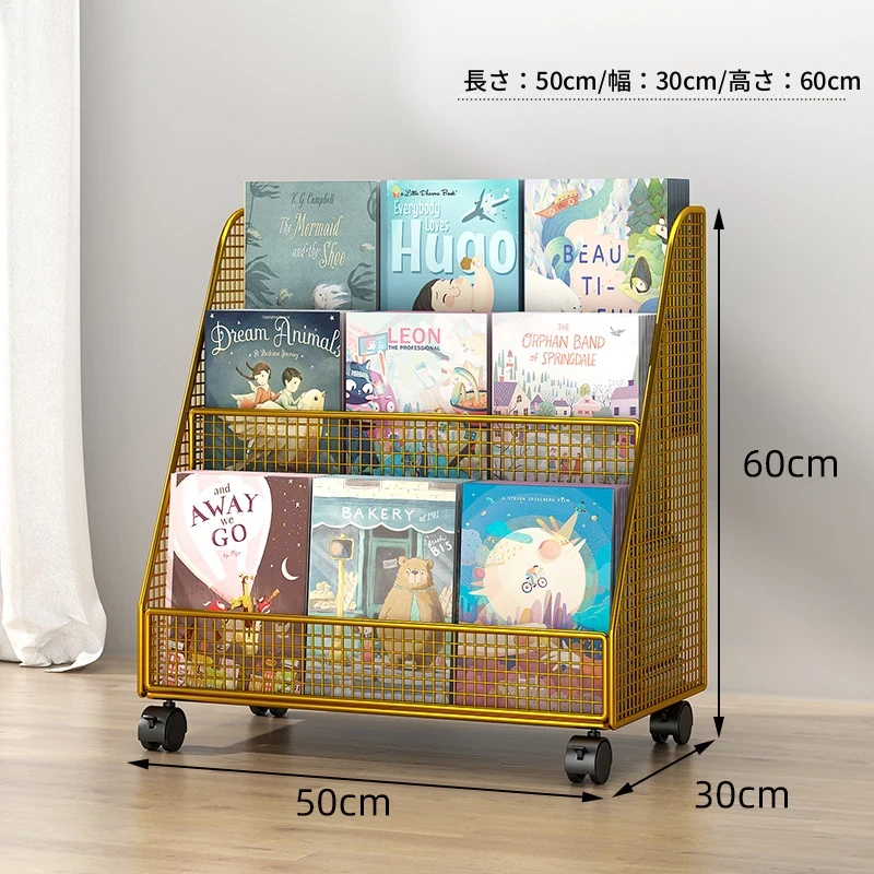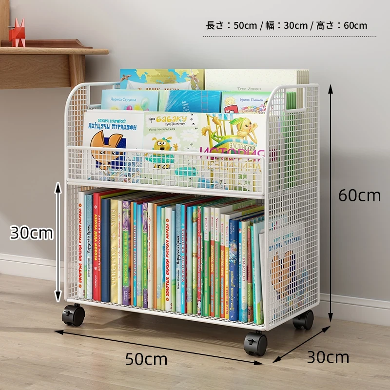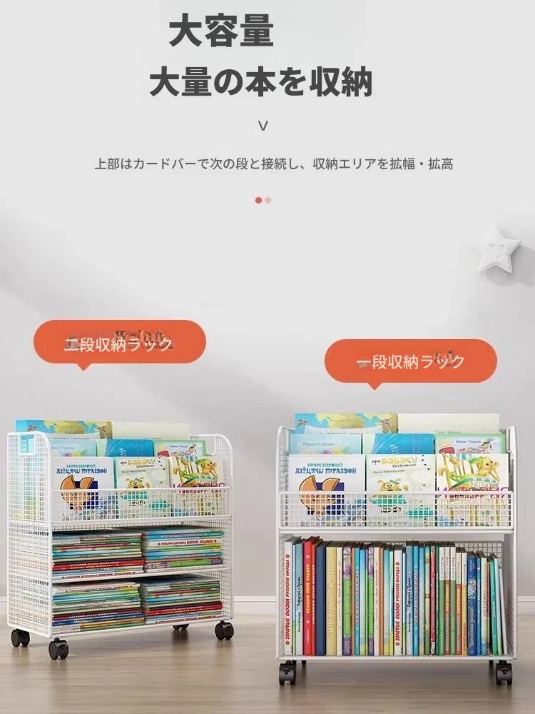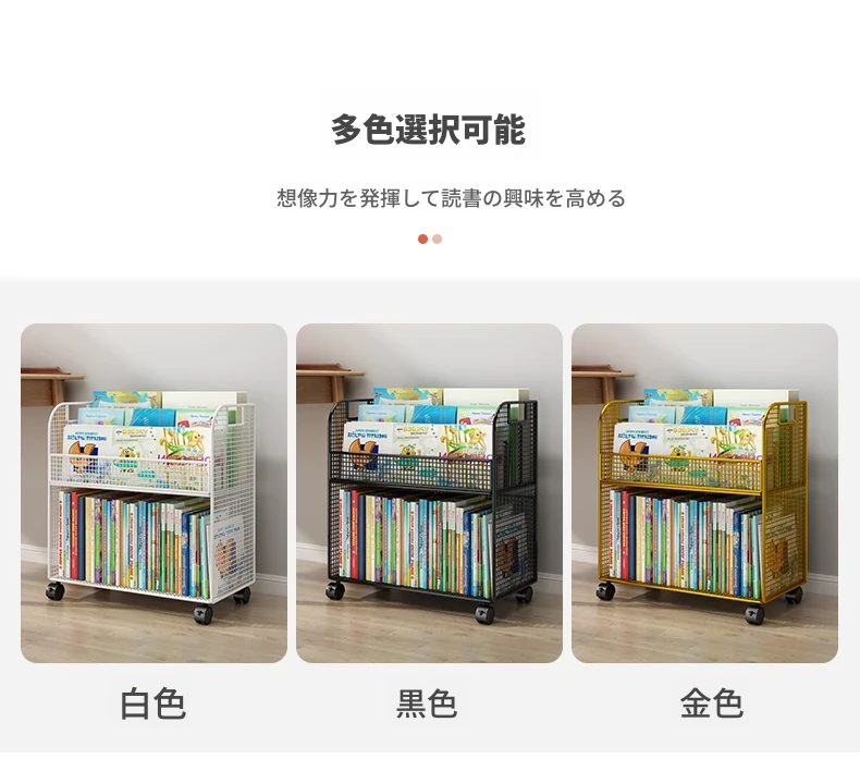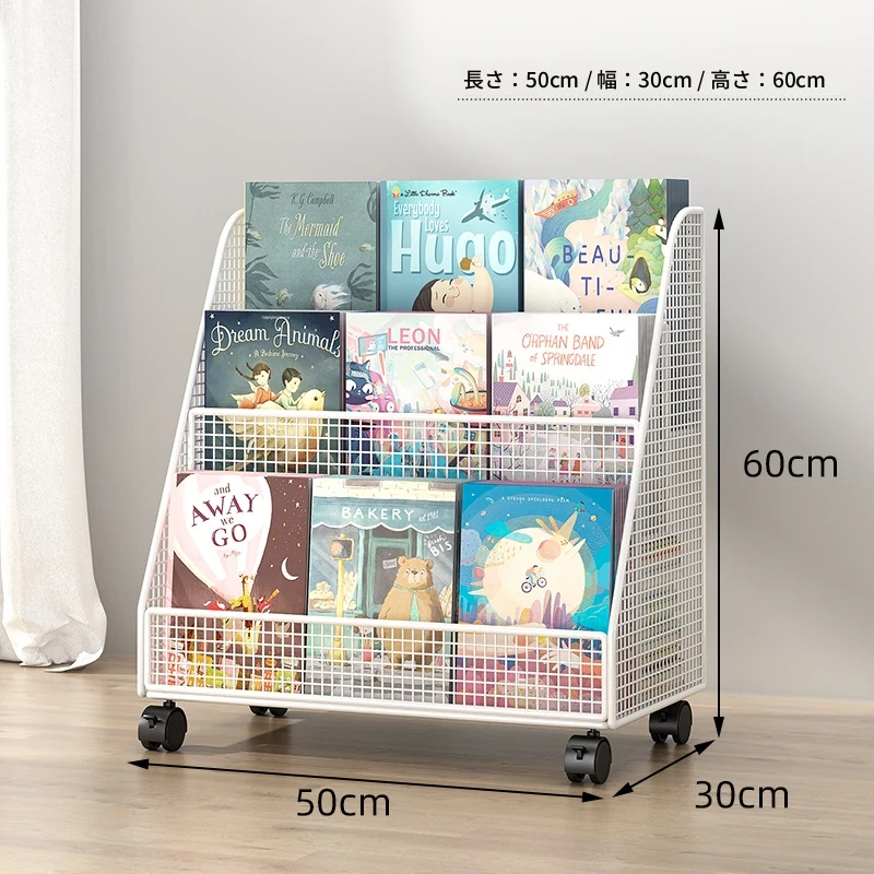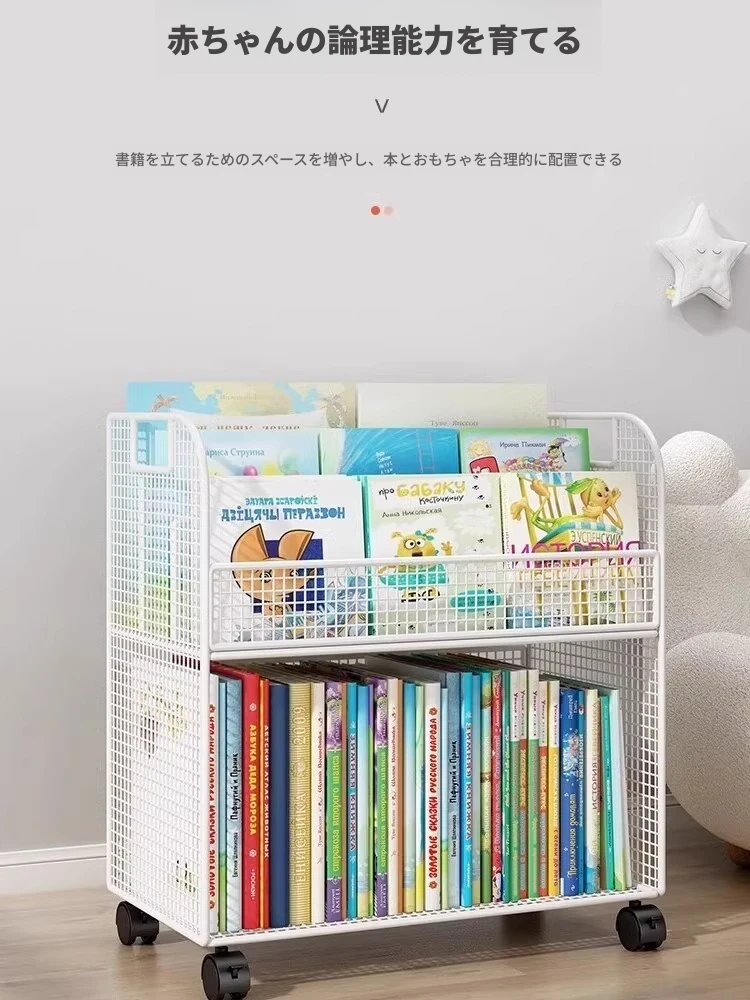 子供向けの移動可能な絵本ラック - おしゃれなフロア本棚、キャスター付きで便利!デスクの横にぴったりな収納スペースを提供し、絵本を整理整頓!お子様の読書タイムをもっと楽しく!