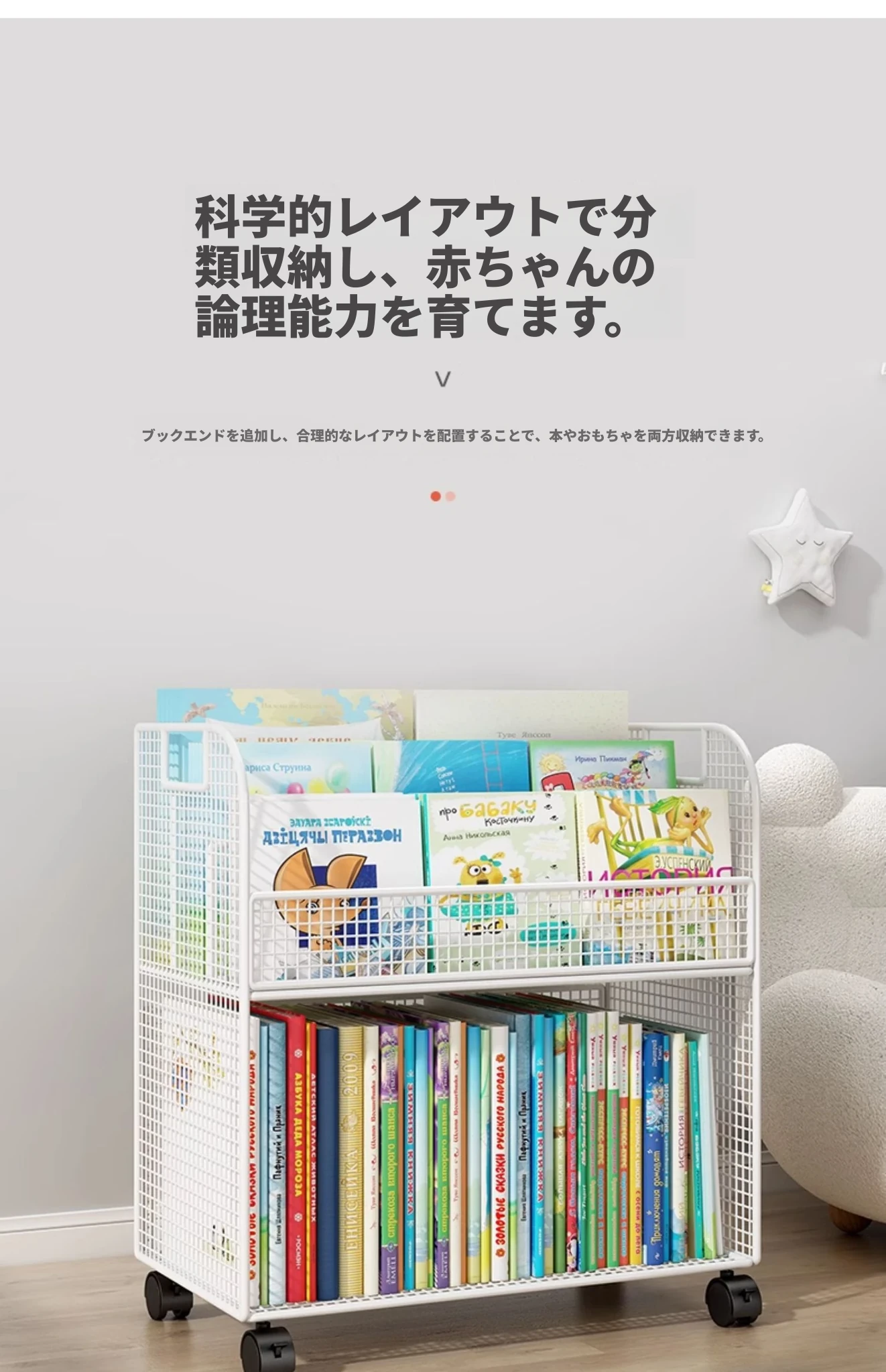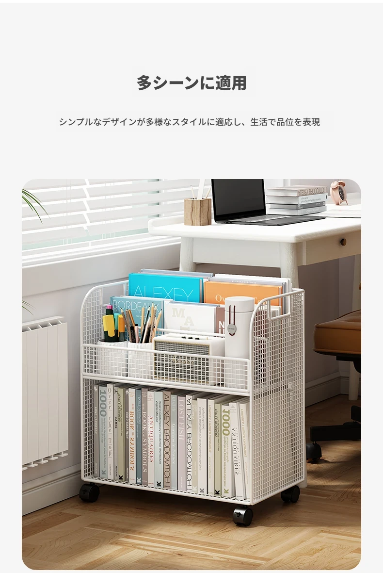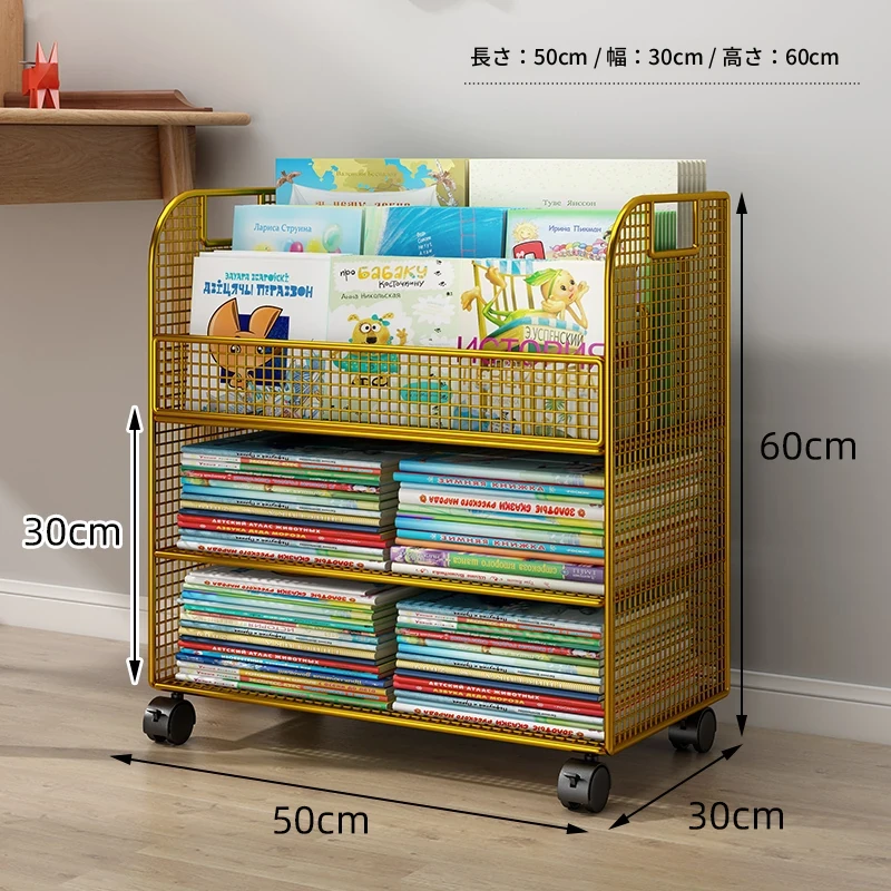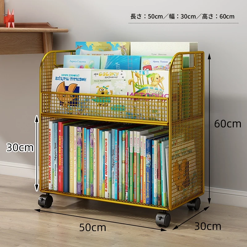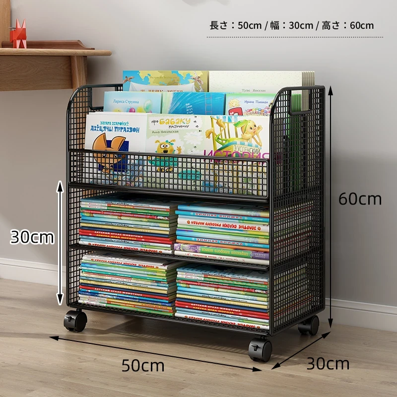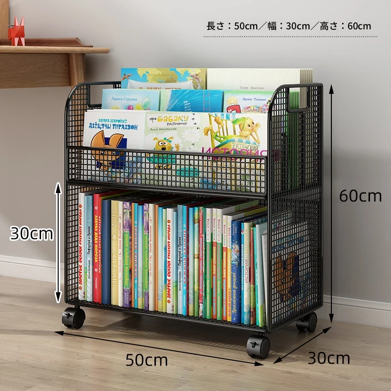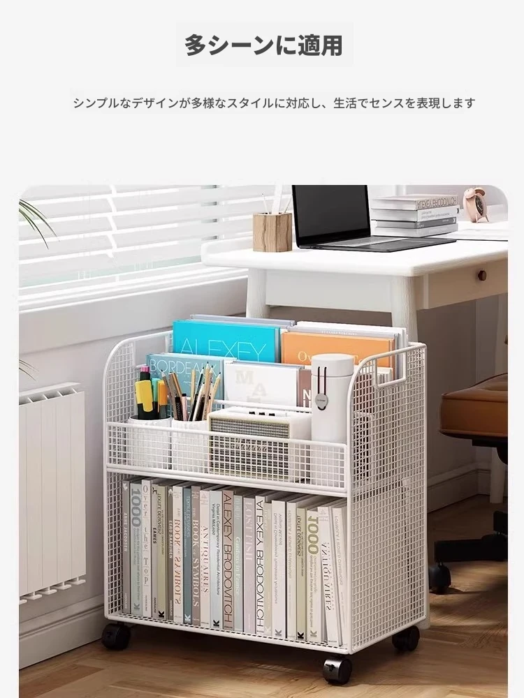 子供向けの移動可能な絵本ラック - おしゃれなフロア本棚、キャスター付きで便利!デスクの横にぴったりな収納スペースを提供し、絵本を整理整頓!お子様の読書タイムをもっと楽しく!