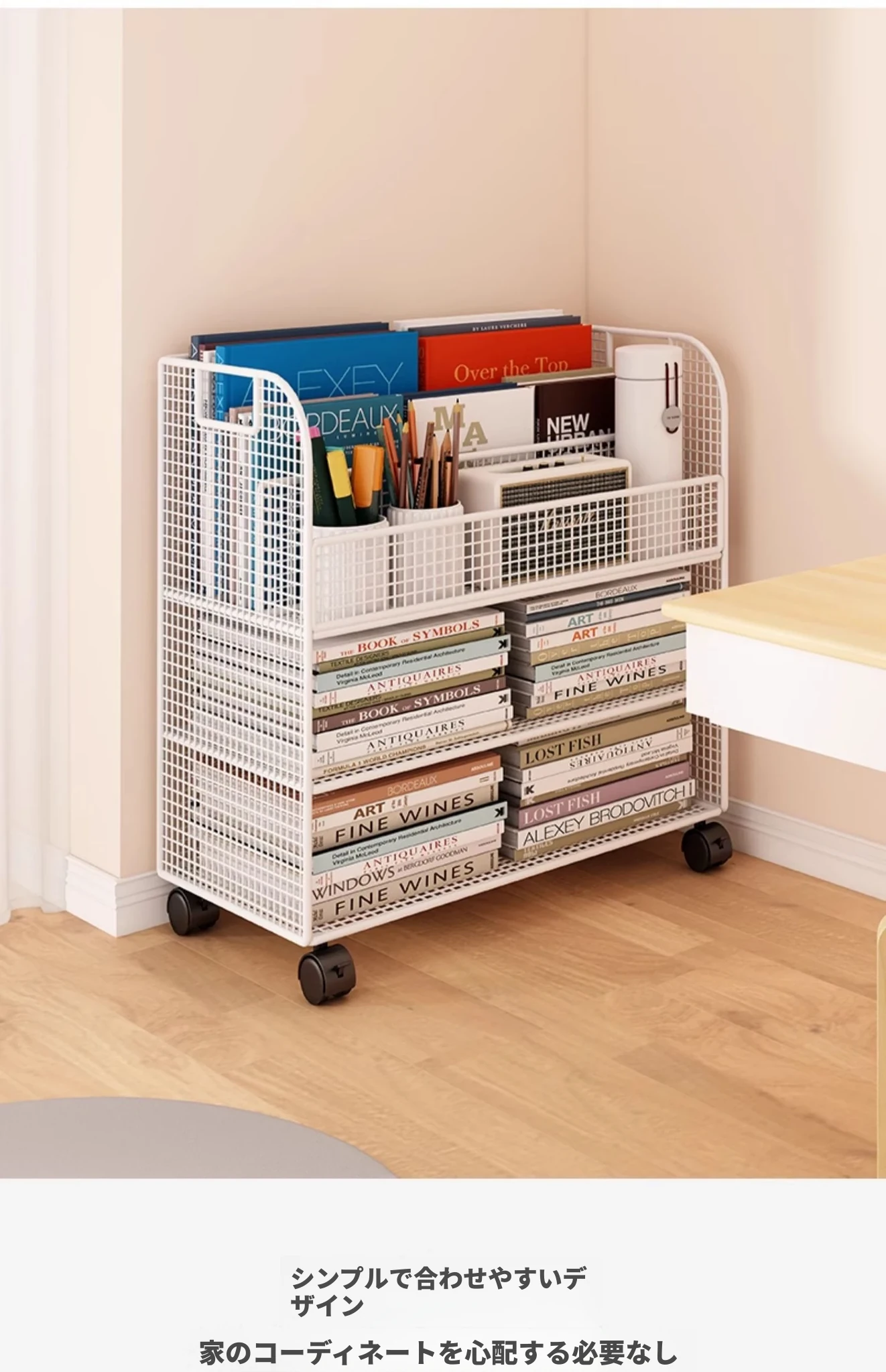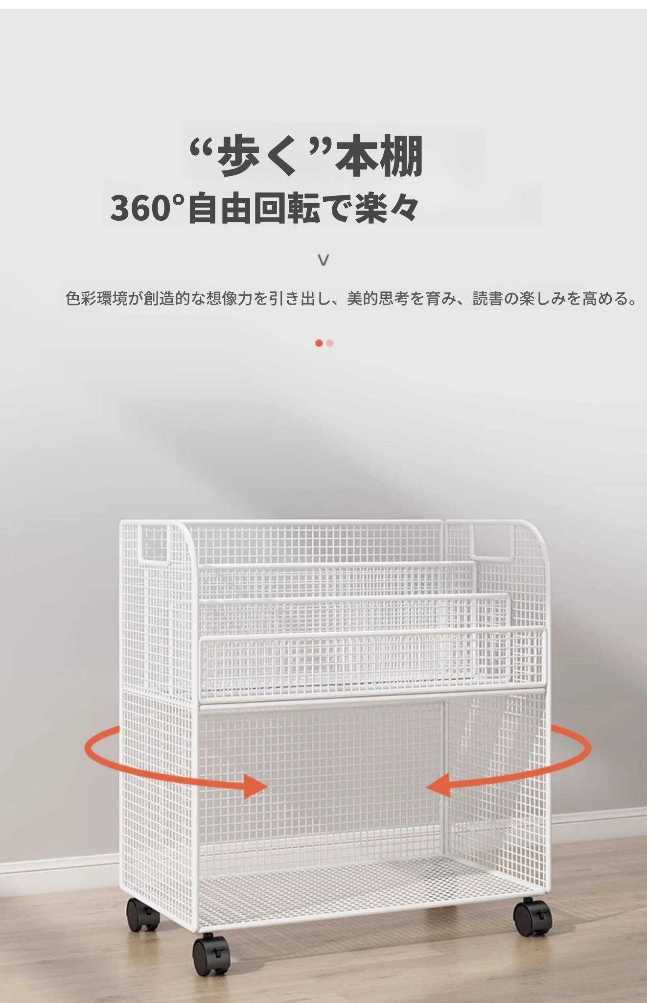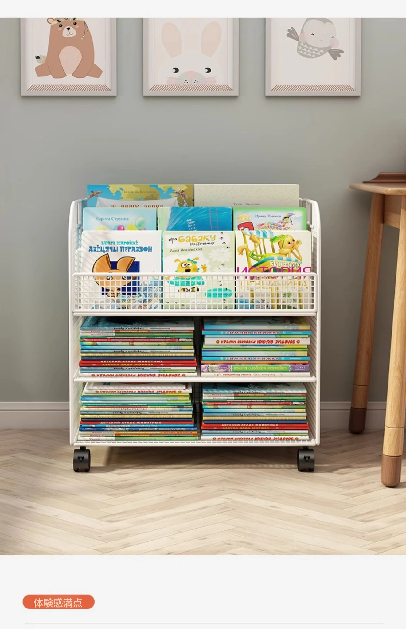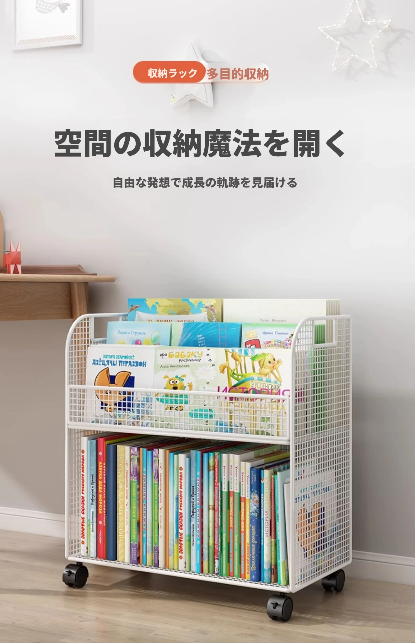 子供向けの移動可能な絵本ラック - おしゃれなフロア本棚、キャスター付きで便利!デスクの横にぴったりな収納スペースを提供し、絵本を整理整頓!お子様の読書タイムをもっと楽しく!