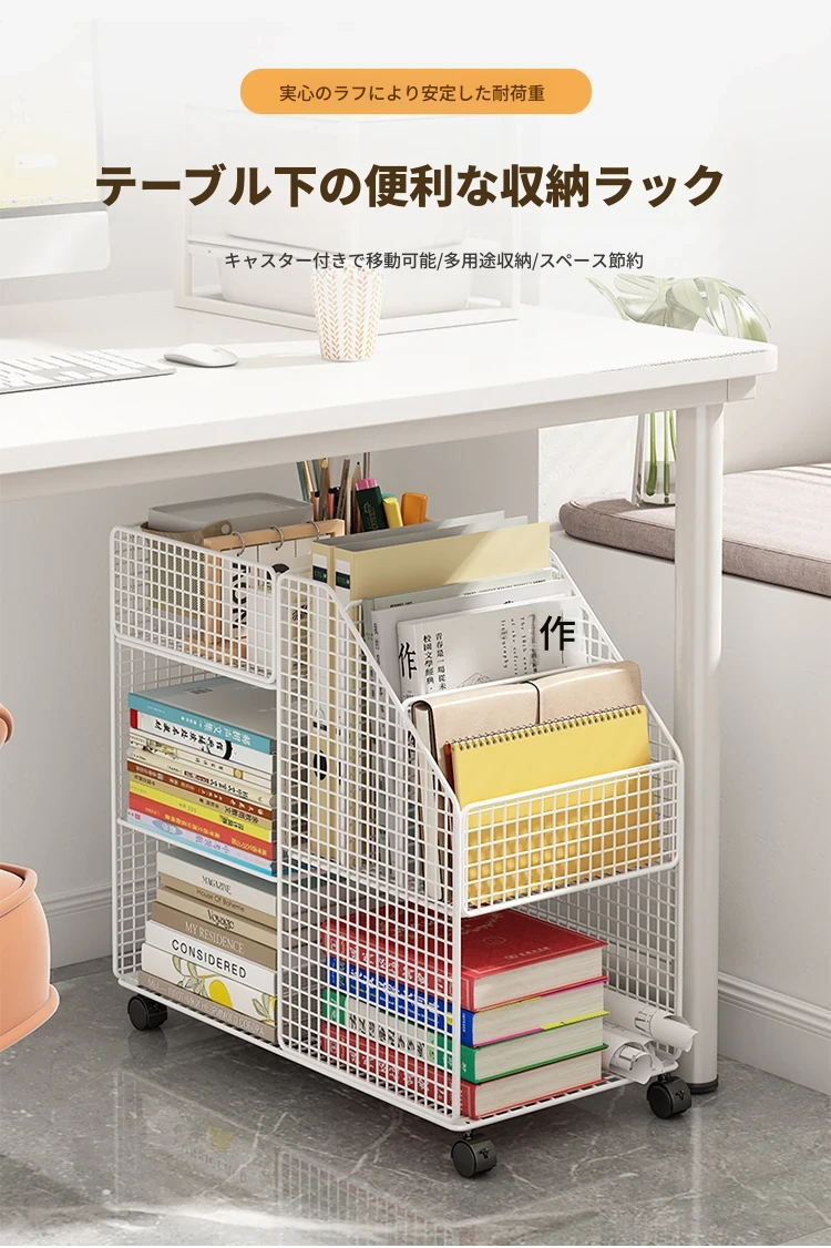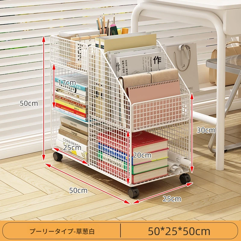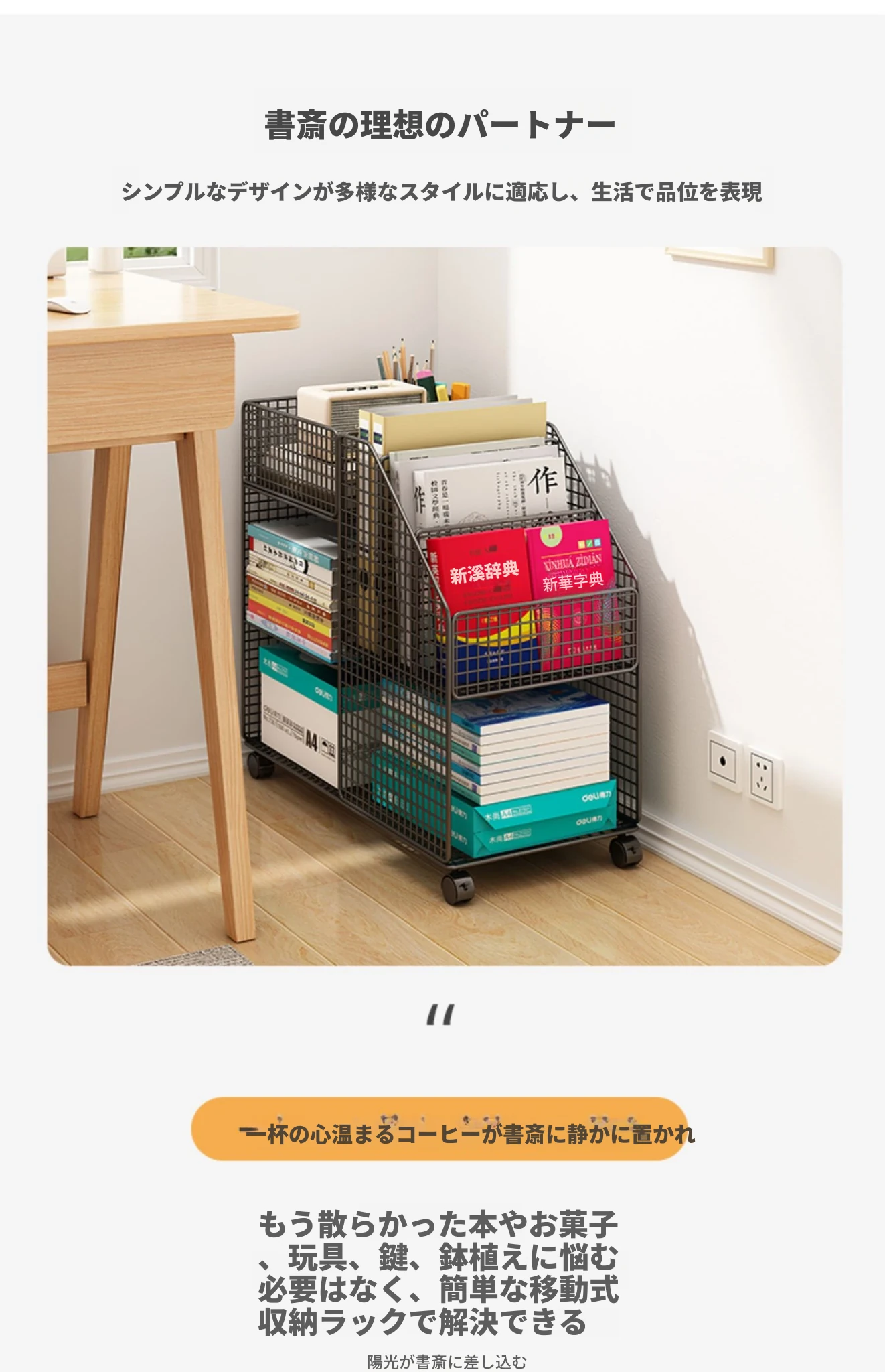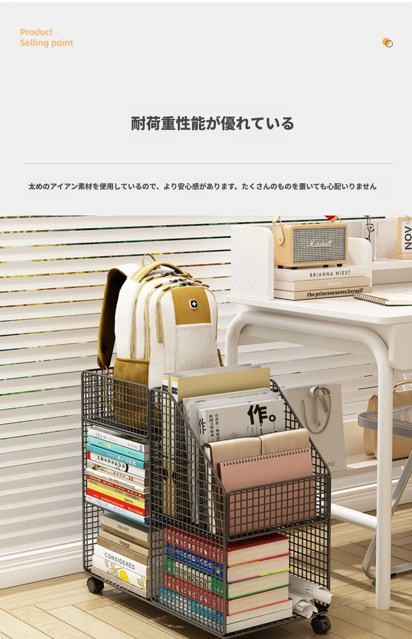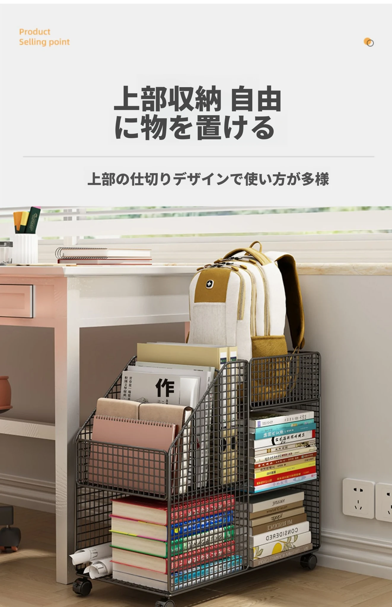 移動式ブックシェルフ!子供のデスク下にぴったりな本収納ラック。学生の勉強スペースをスッキリ整理できる、キャスター付きの簡易ブックキャビネット。お部屋をおしゃれに演出し、収納力抜群!