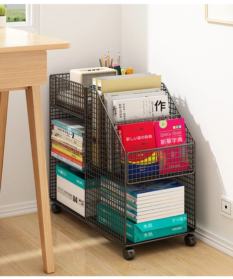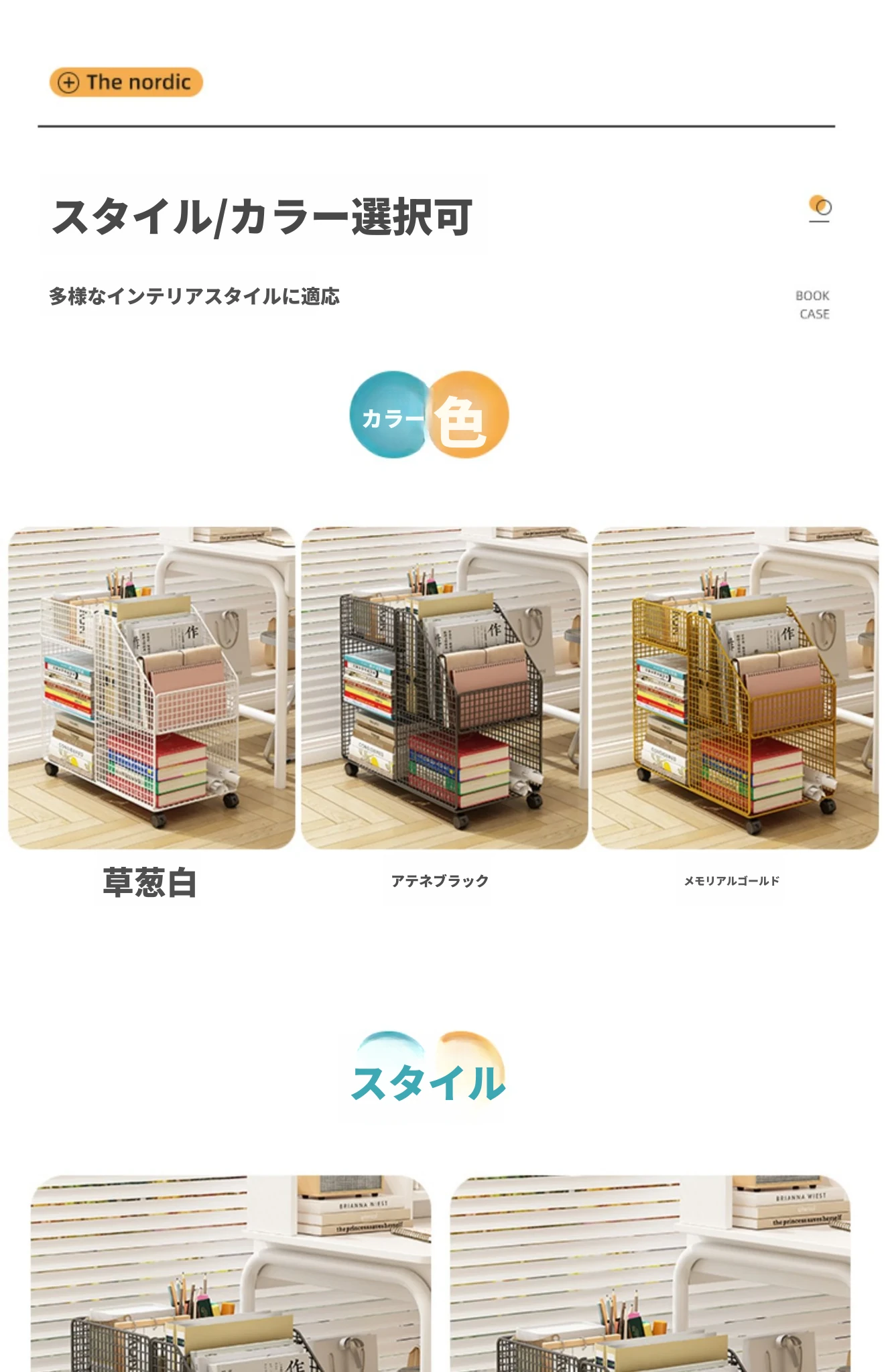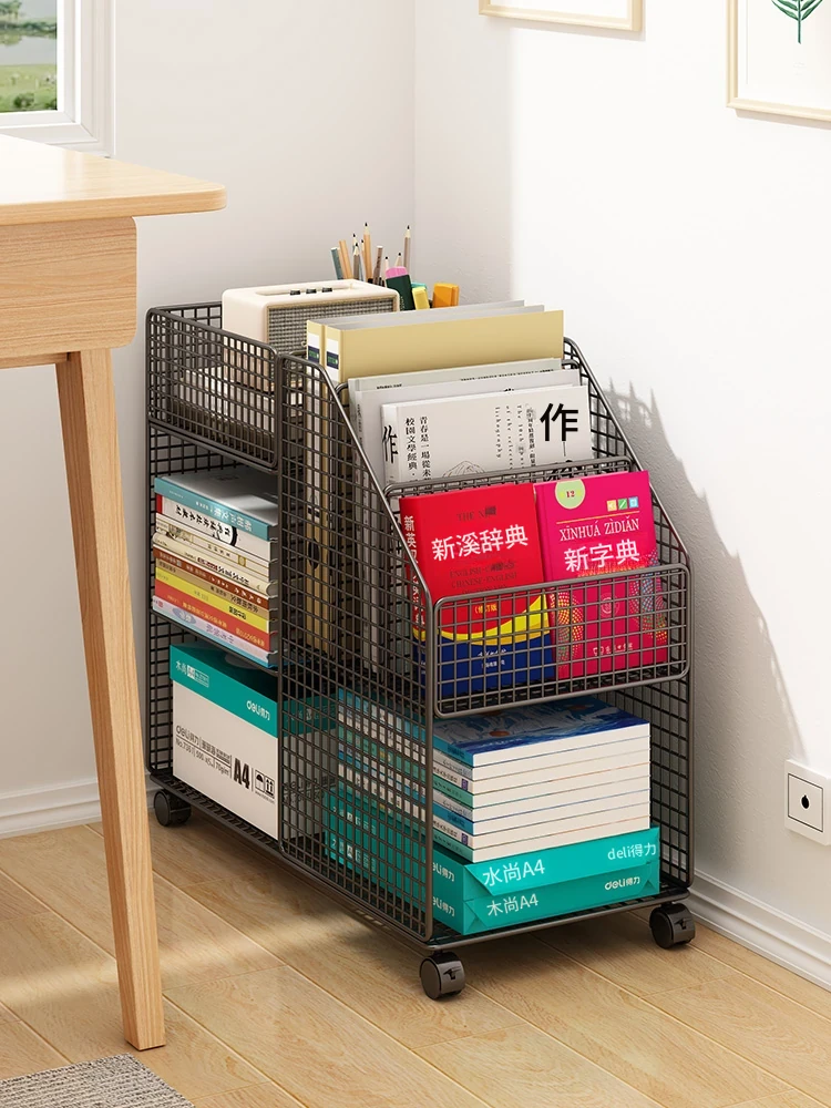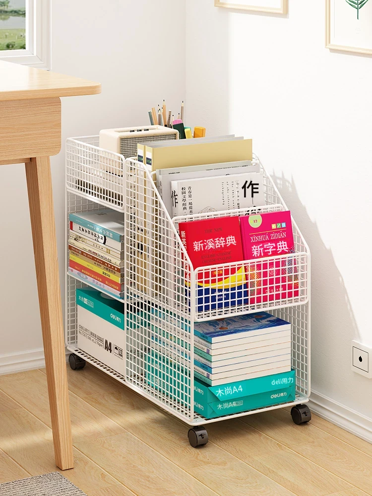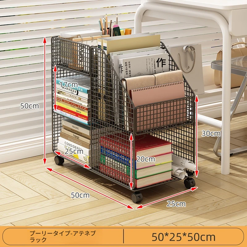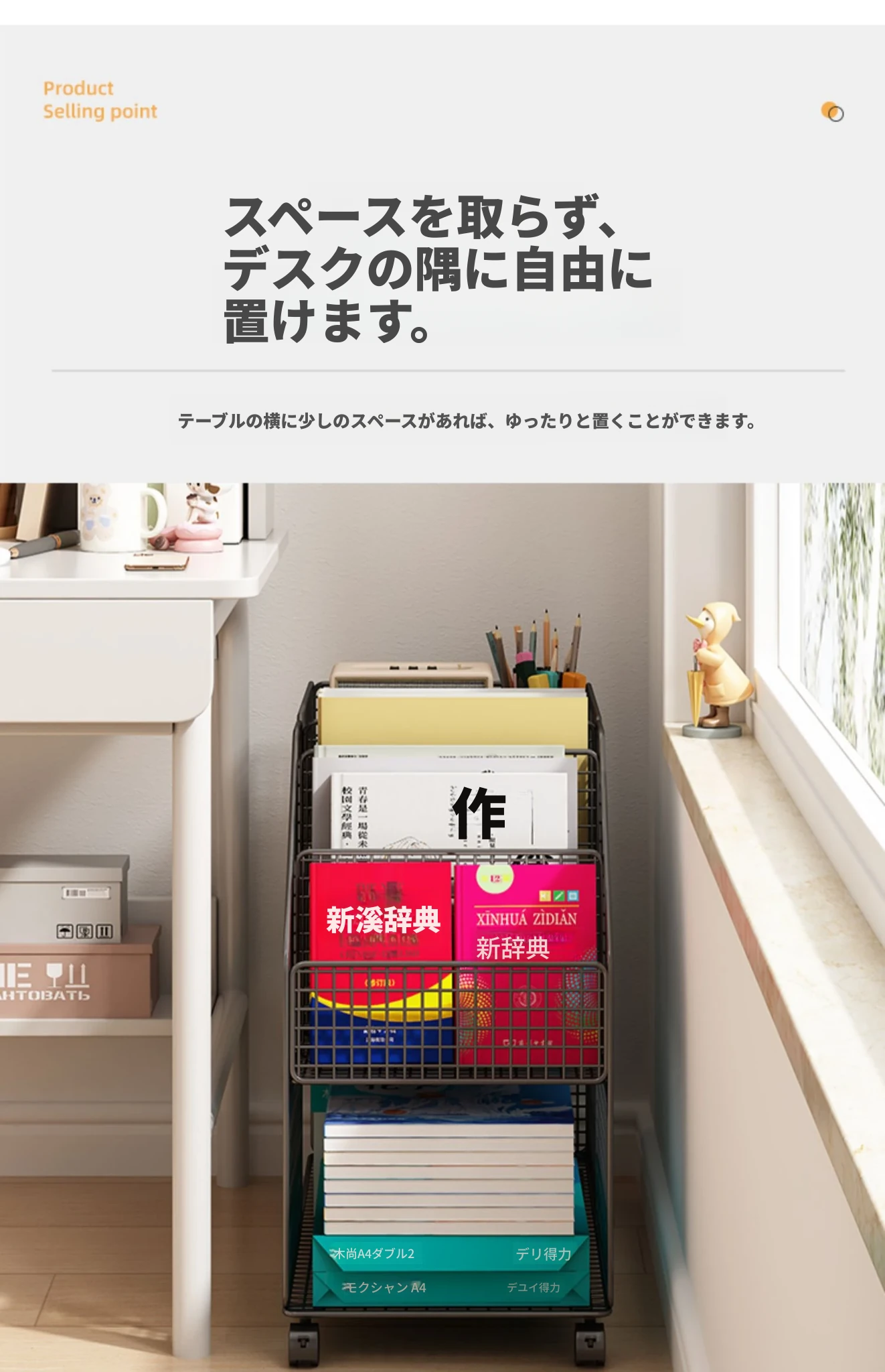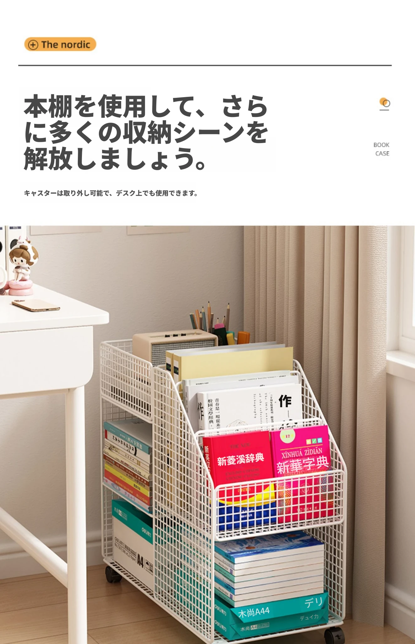 移動式ブックシェルフ!子供のデスク下にぴったりな本収納ラック。学生の勉強スペースをスッキリ整理できる、キャスター付きの簡易ブックキャビネット。お部屋をおしゃれに演出し、収納力抜群!