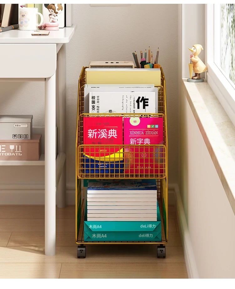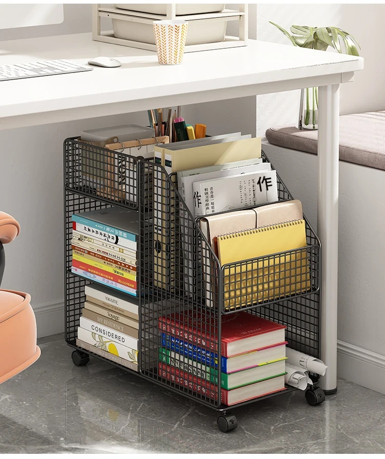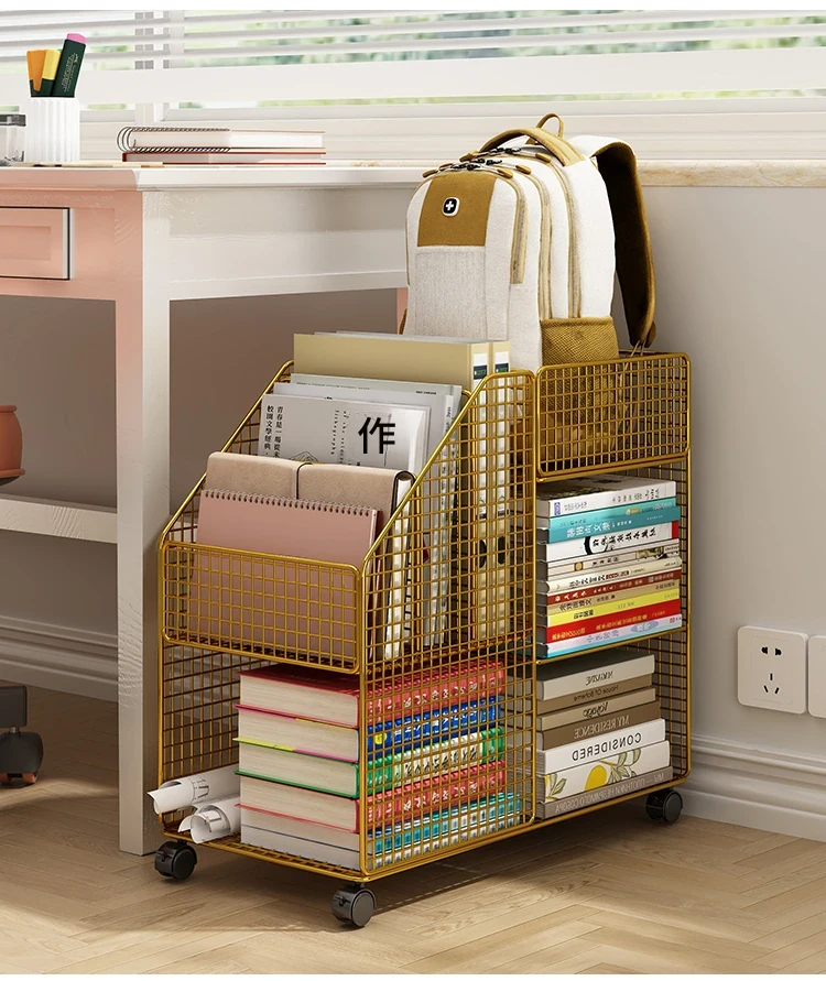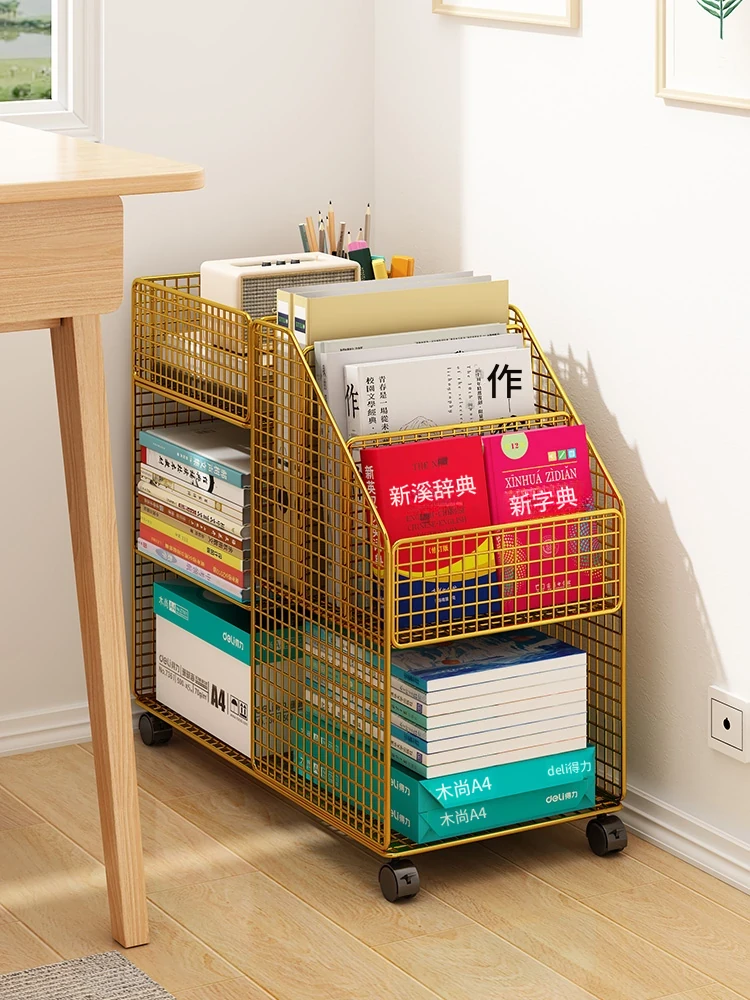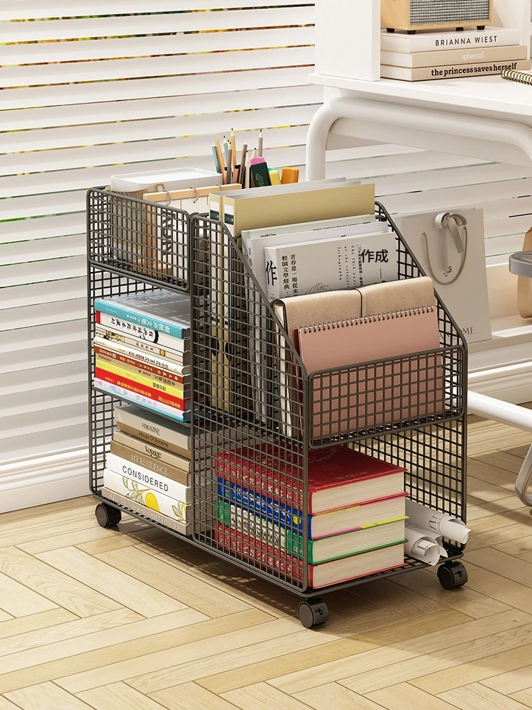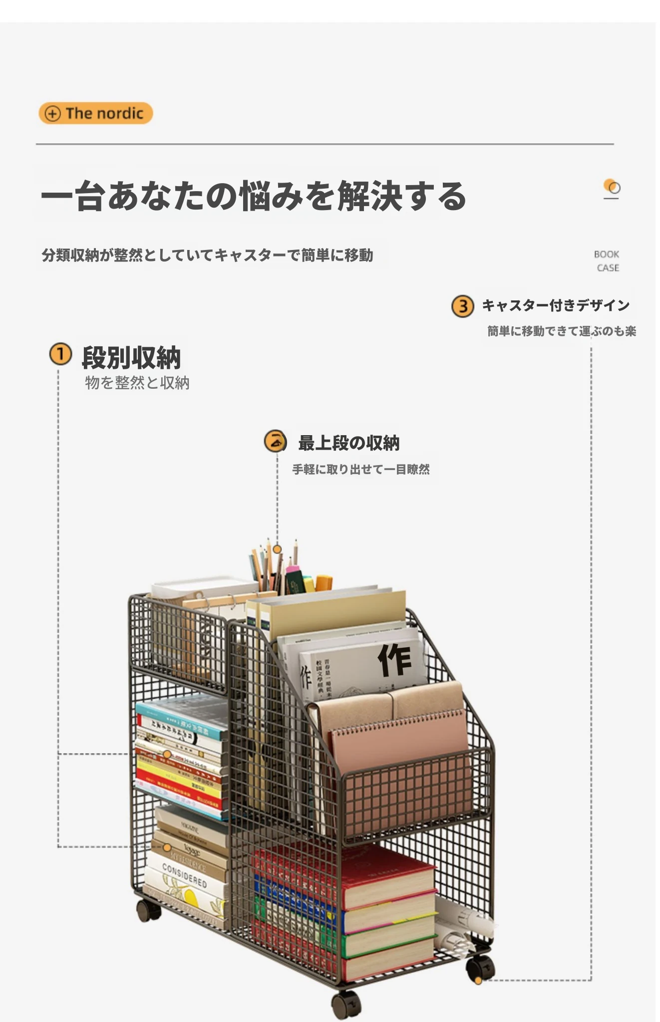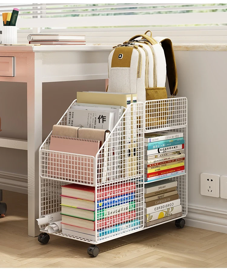 移動式ブックシェルフ!子供のデスク下にぴったりな本収納ラック。学生の勉強スペースをスッキリ整理できる、キャスター付きの簡易ブックキャビネット。お部屋をおしゃれに演出し、収納力抜群!