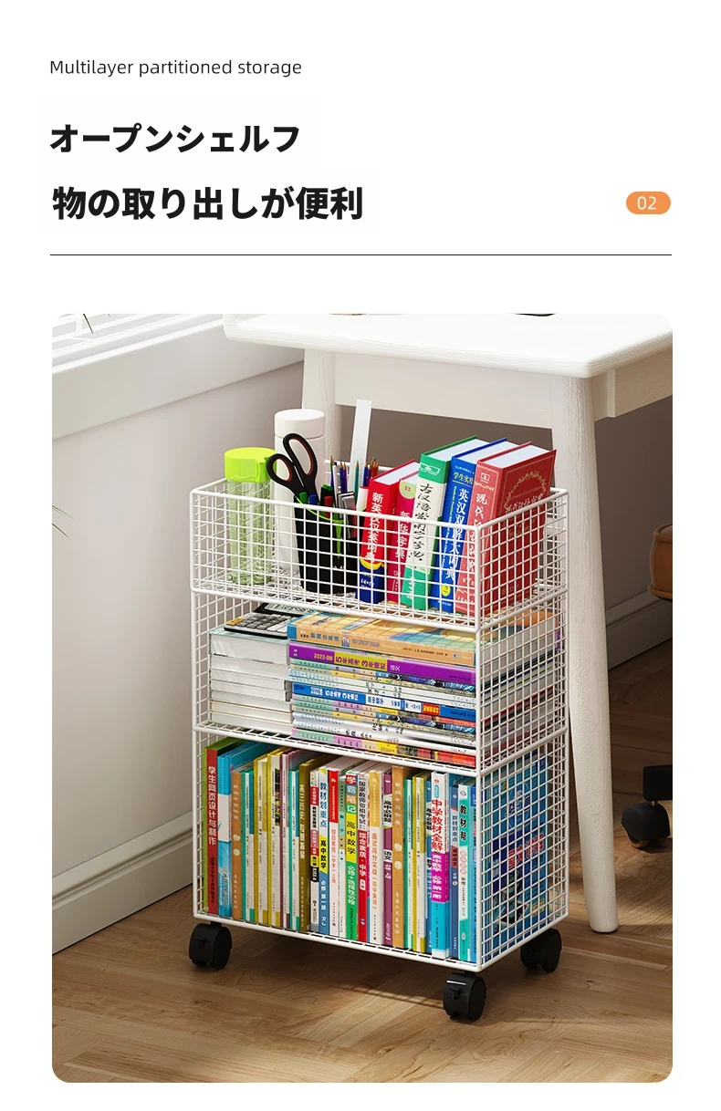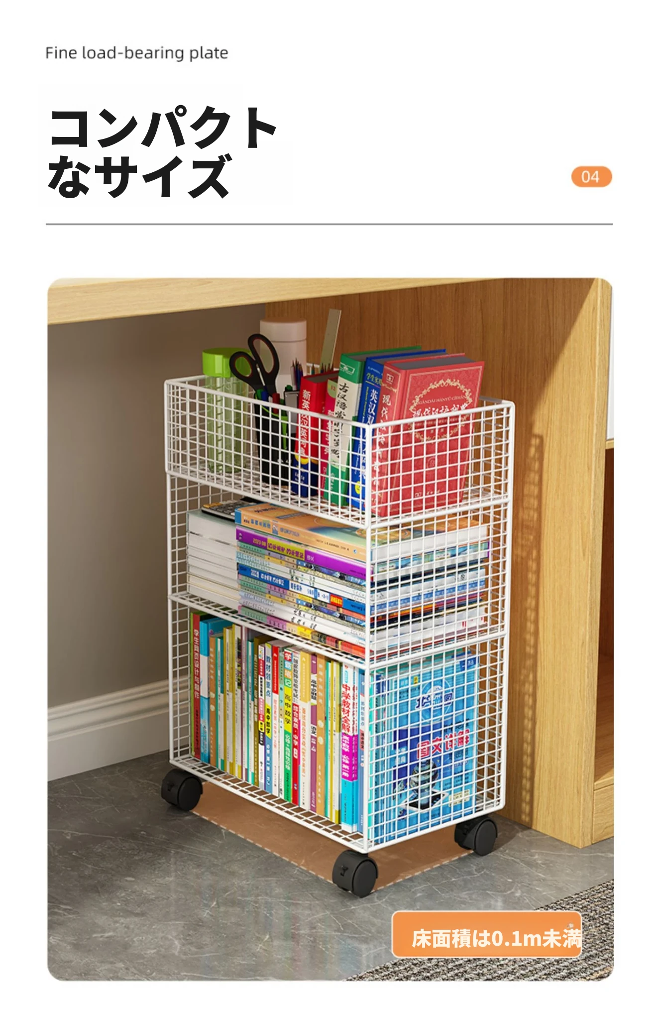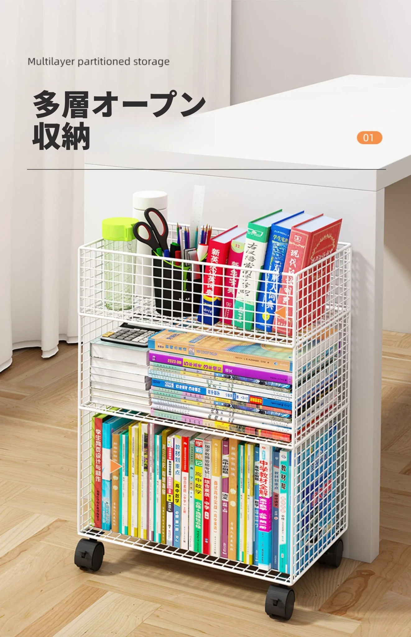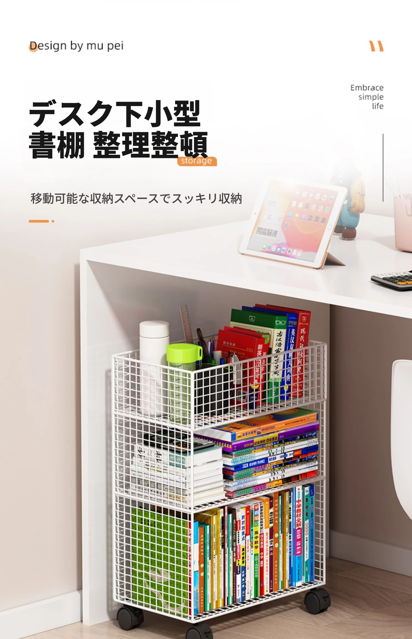 キャスター付き移動書棚デスクサイド収納ラック - 書籍整理に最適!コンパクトで便利なデザイン、リビングやオフィスにぴったりのスタイリッシュな収納ソリューション。書類や本をスマートに整理しましょう!