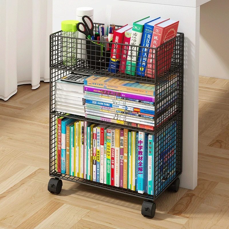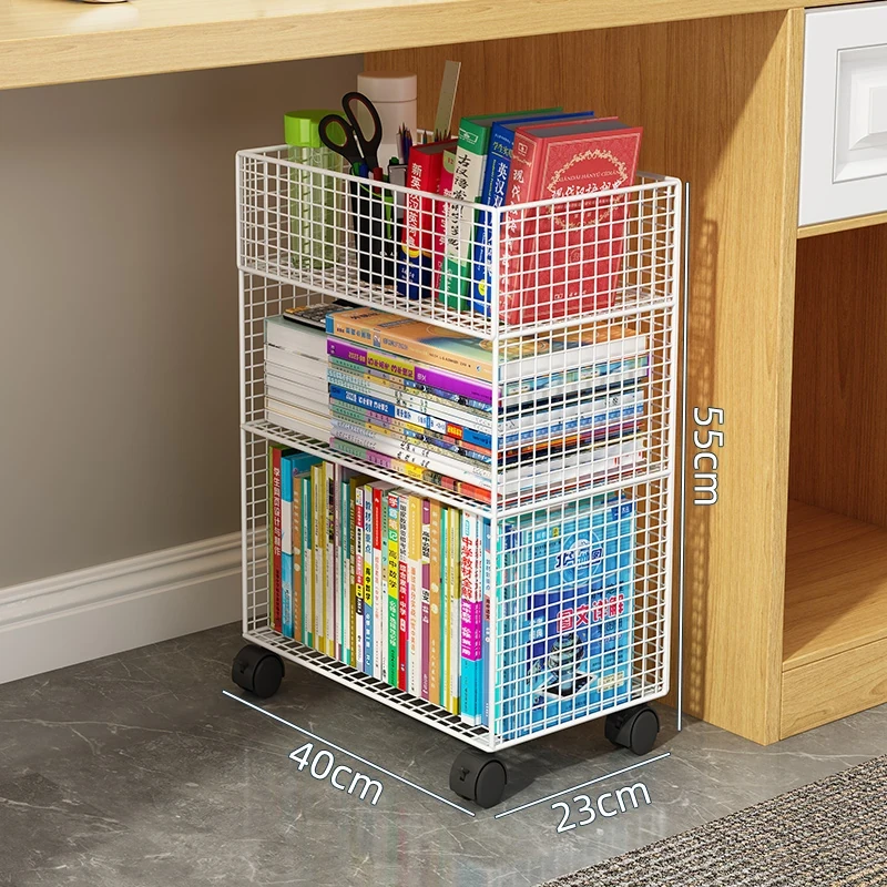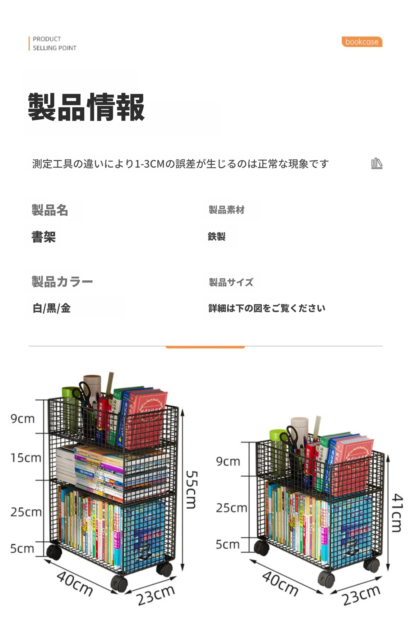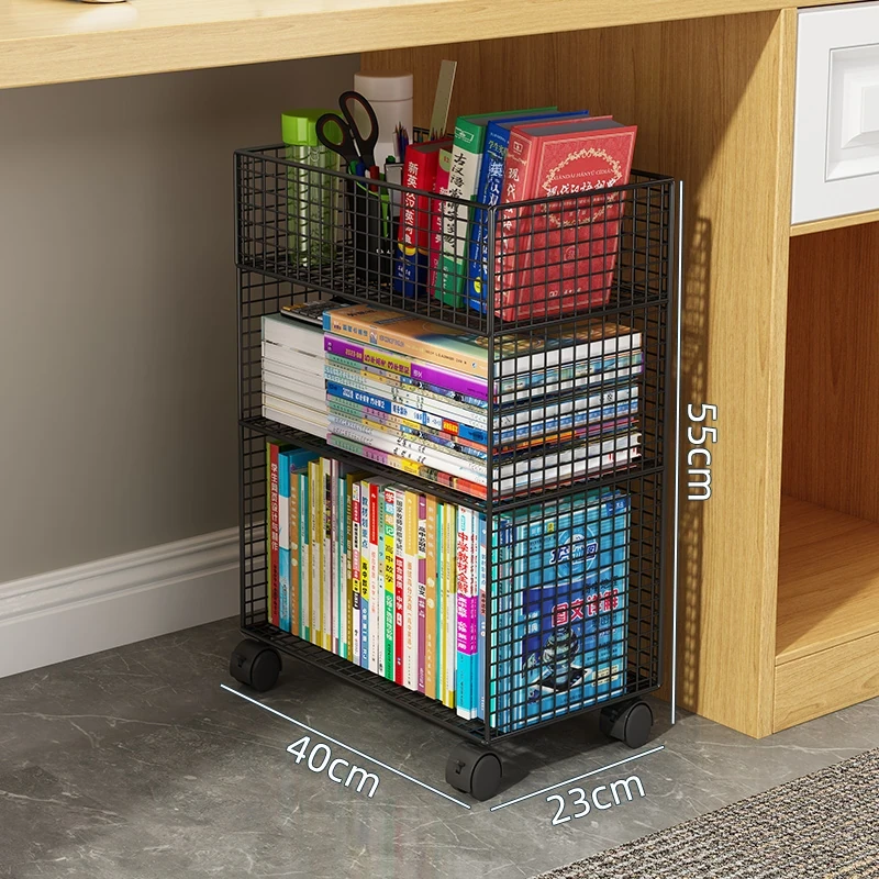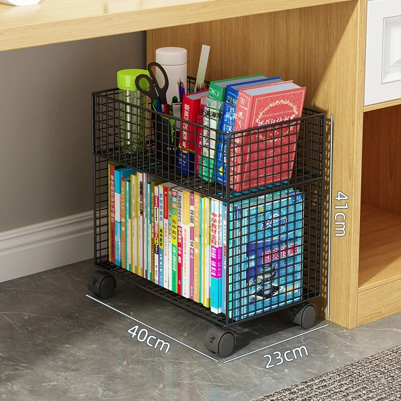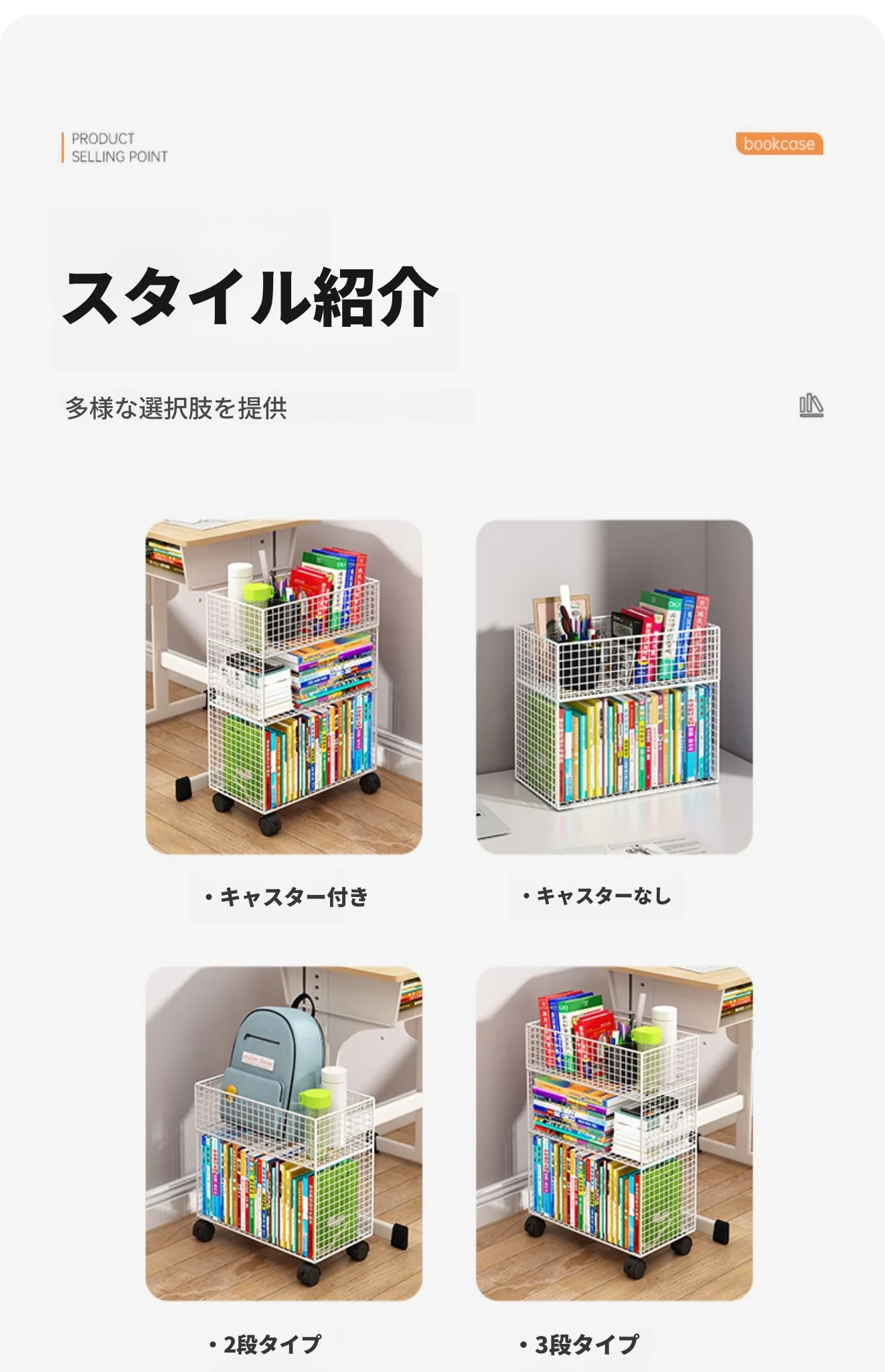 キャスター付き移動書棚デスクサイド収納ラック - 書籍整理に最適!コンパクトで便利なデザイン、リビングやオフィスにぴったりのスタイリッシュな収納ソリューション。書類や本をスマートに整理しましょう!