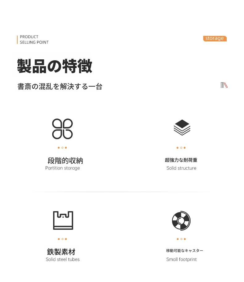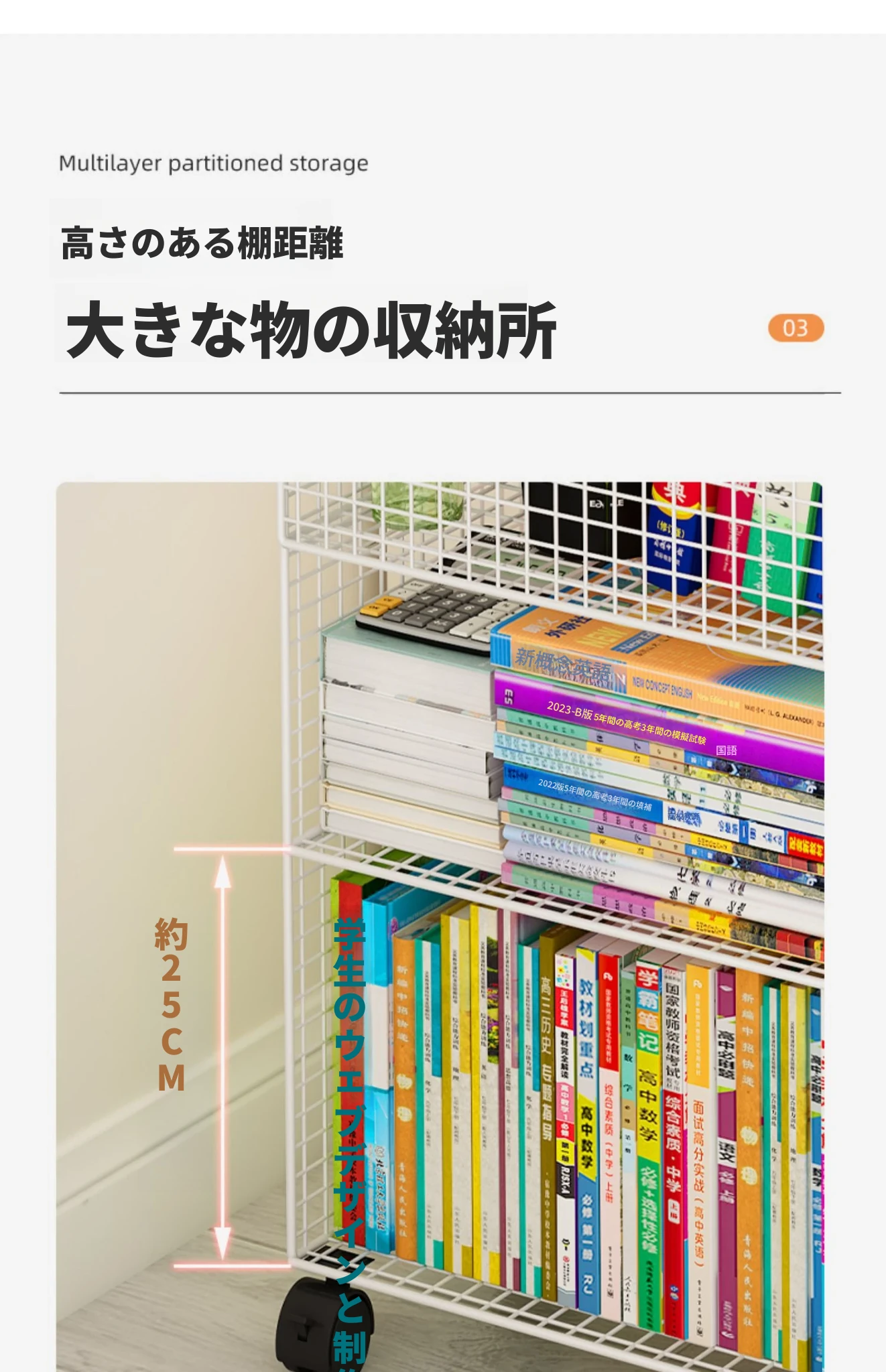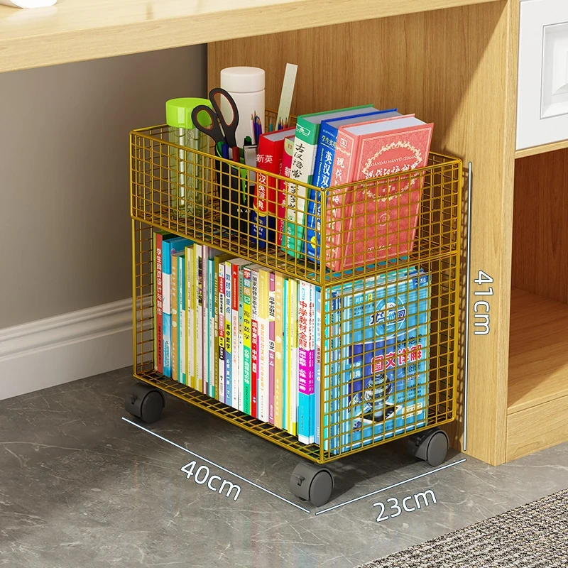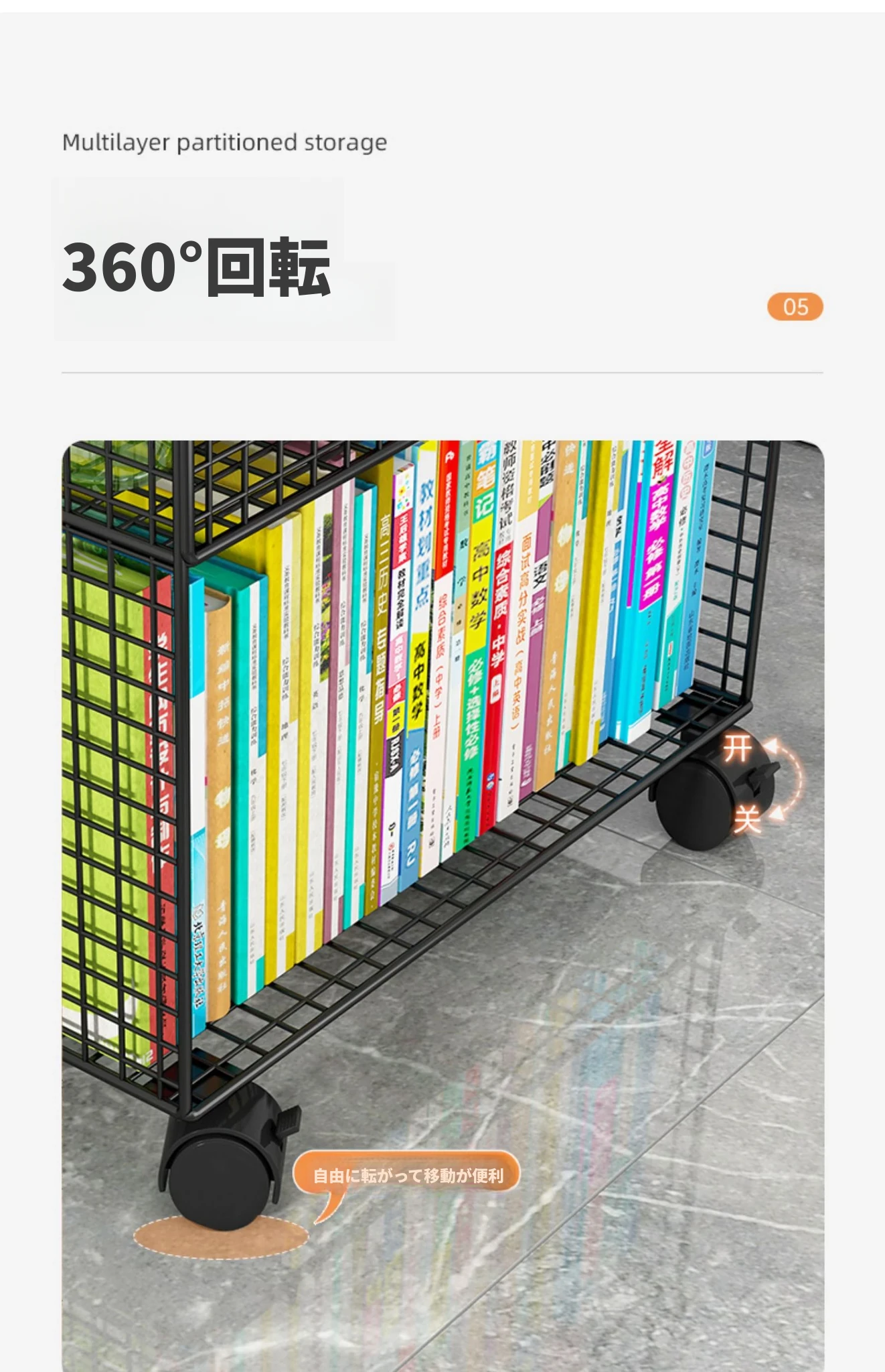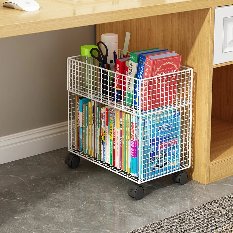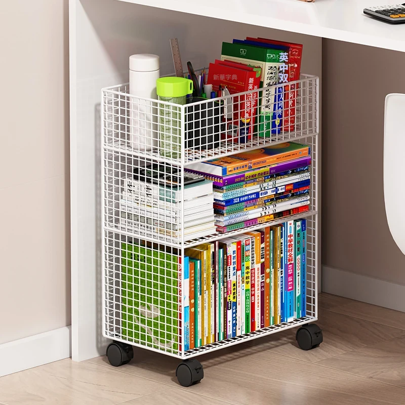 キャスター付き移動書棚デスクサイド収納ラック - 書籍整理に最適!コンパクトで便利なデザイン、リビングやオフィスにぴったりのスタイリッシュな収納ソリューション。書類や本をスマートに整理しましょう!