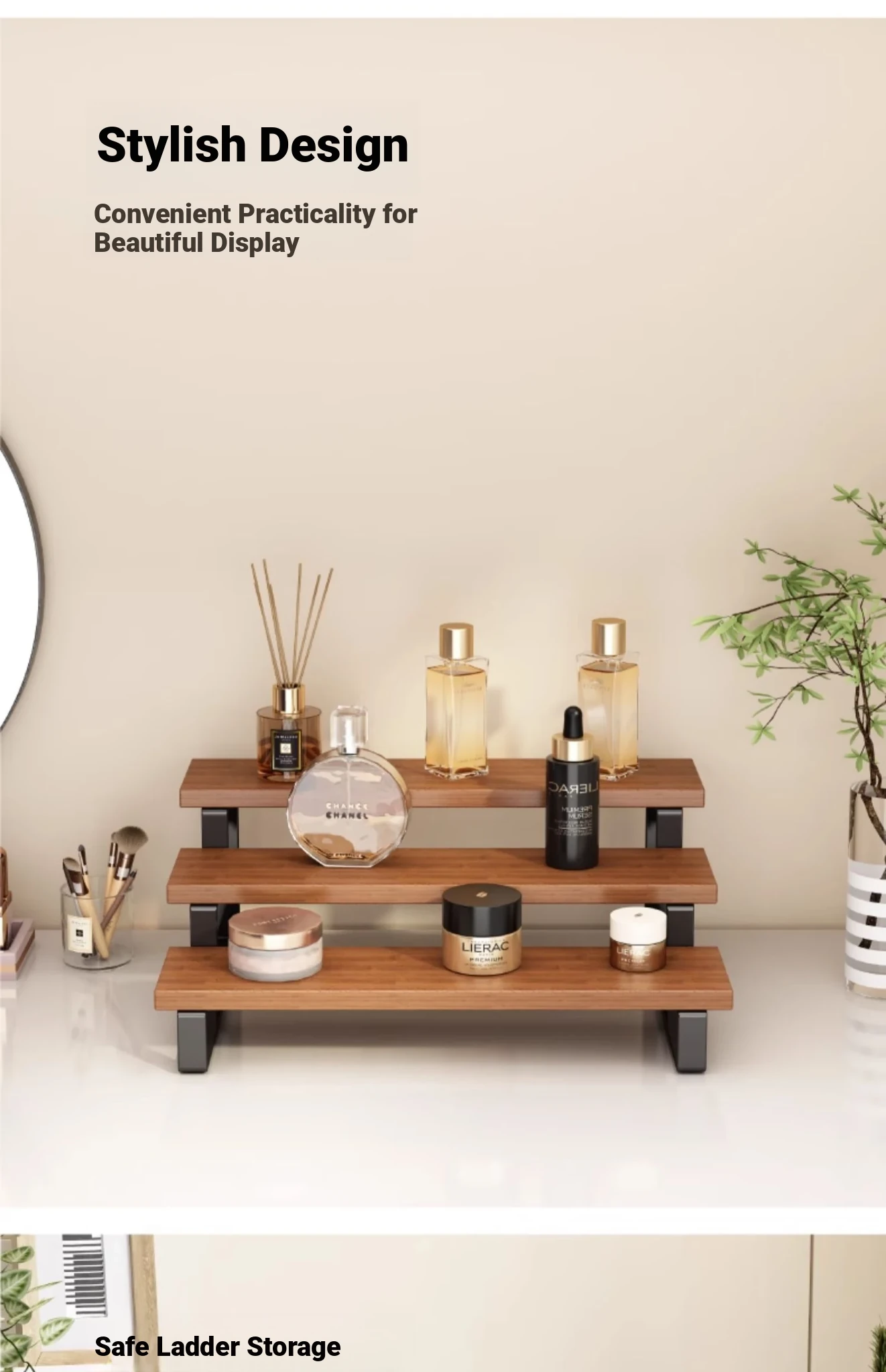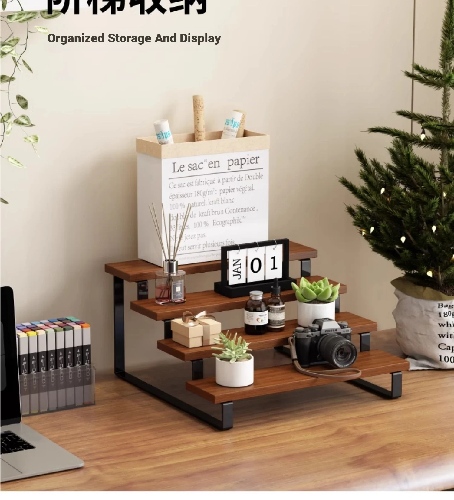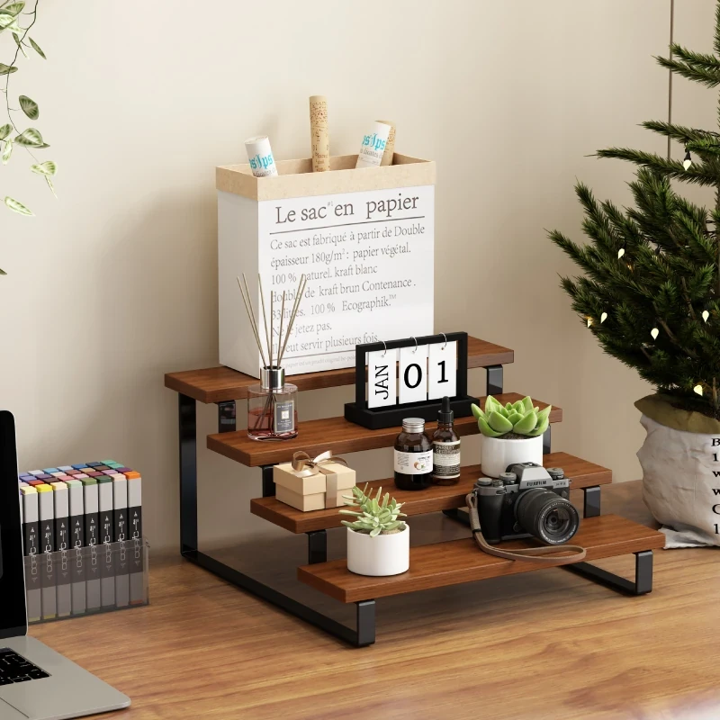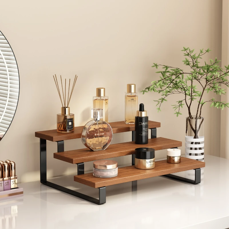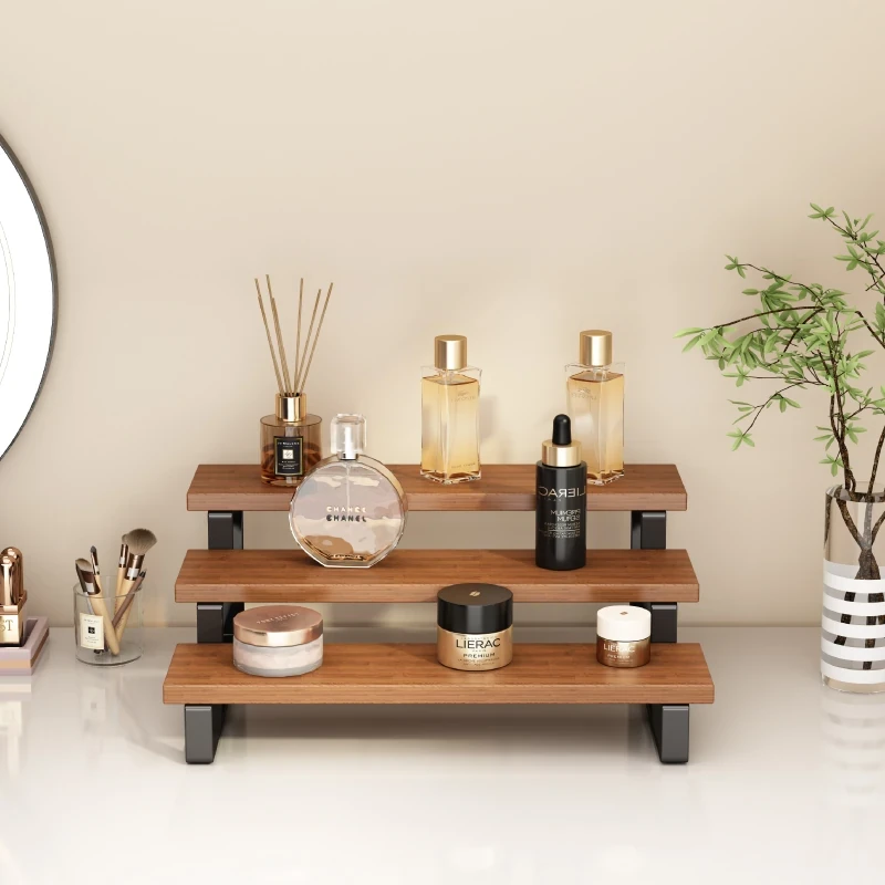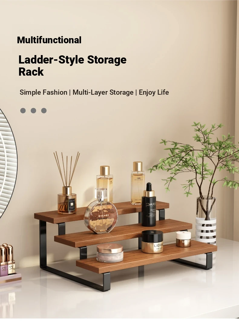 Multilayer Desktop Storage Rack - Wooden Step Display Stand for Blind Box Collectibles, Action Figures, Perfumes, and Coffee Mugs Organizer