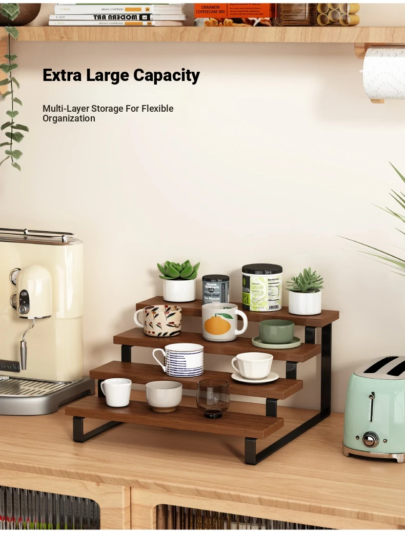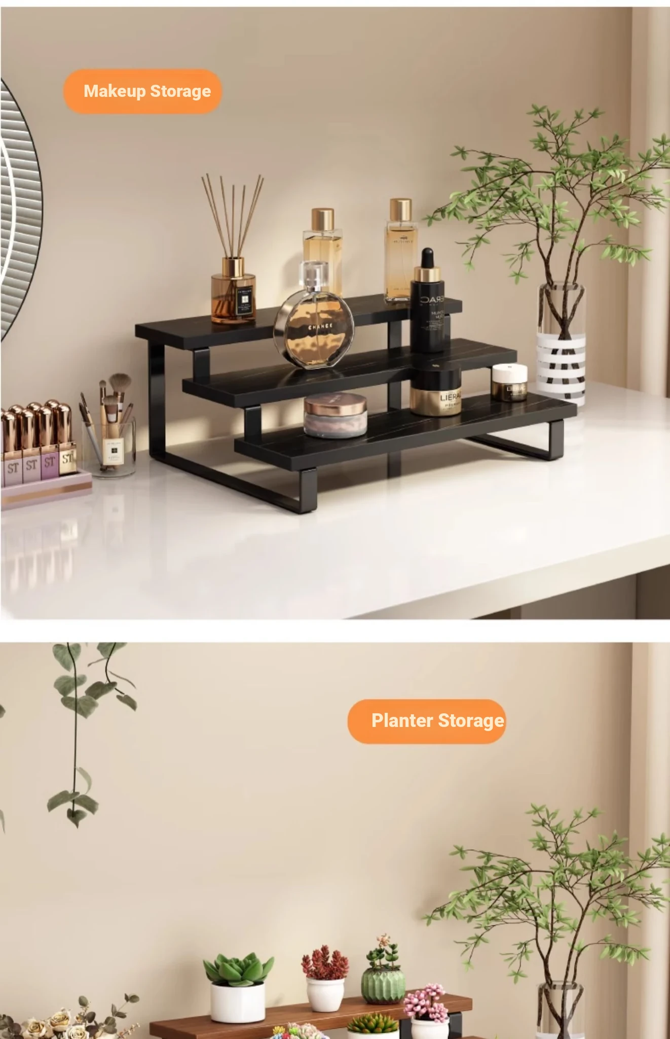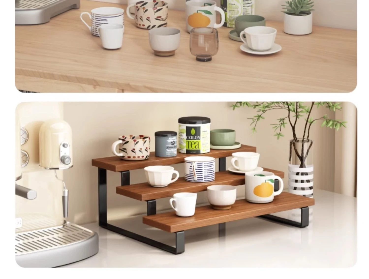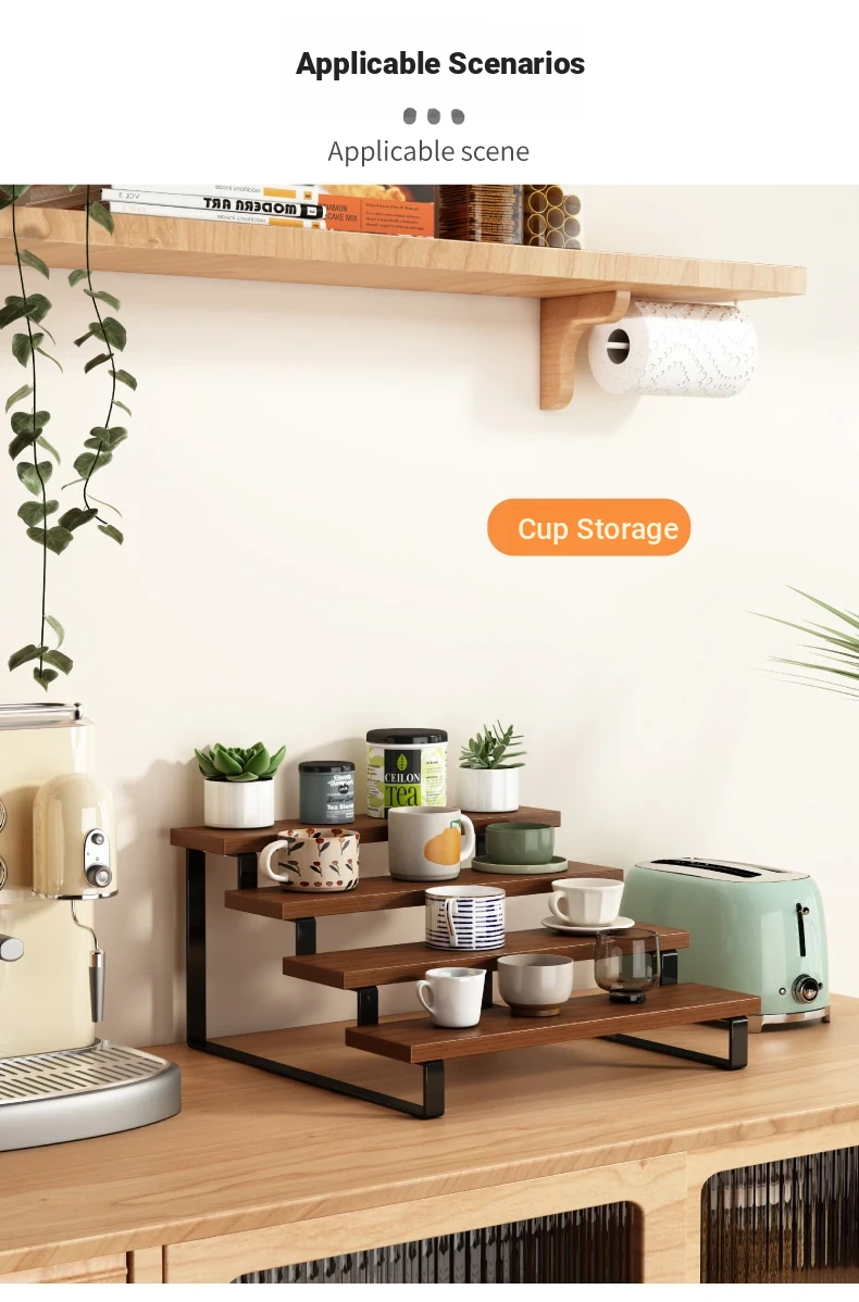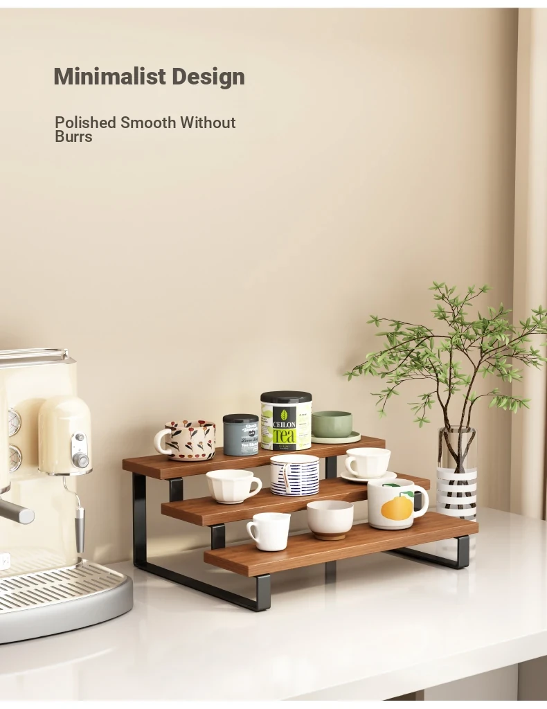 Multilayer Desktop Storage Rack - Wooden Step Display Stand for Blind Box Collectibles, Action Figures, Perfumes, and Coffee Mugs Organizer