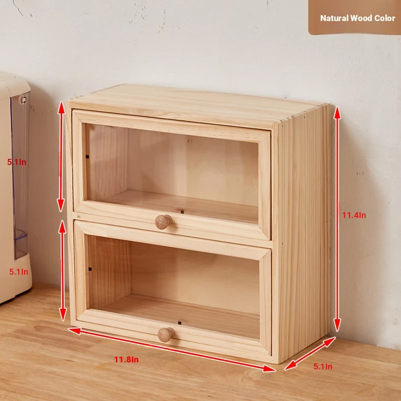 Log color two-layer push cabinet-glass door