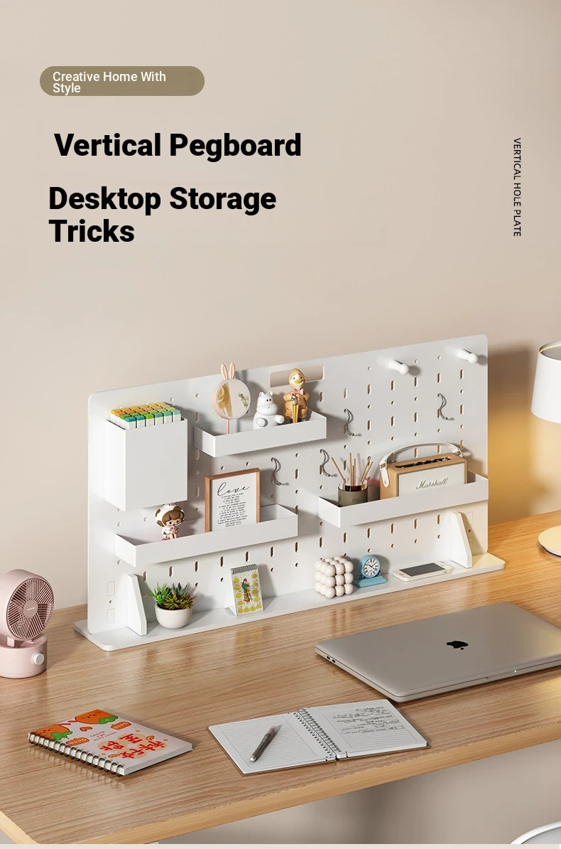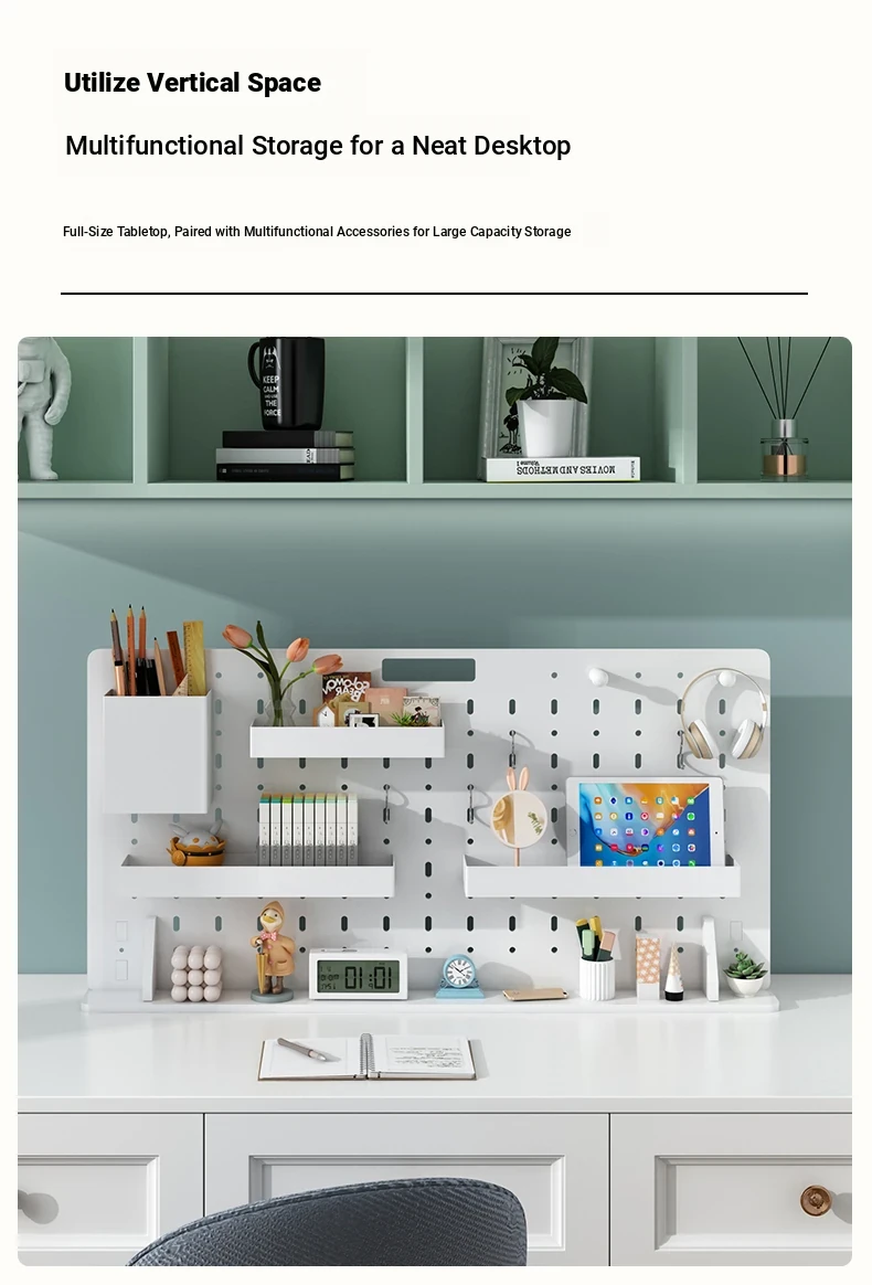 No-Drill Pegboard Organizer for Desk - Vertical Storage Solution for Dorms and Offices, Perfect Desk Shelf for Books and Accessories