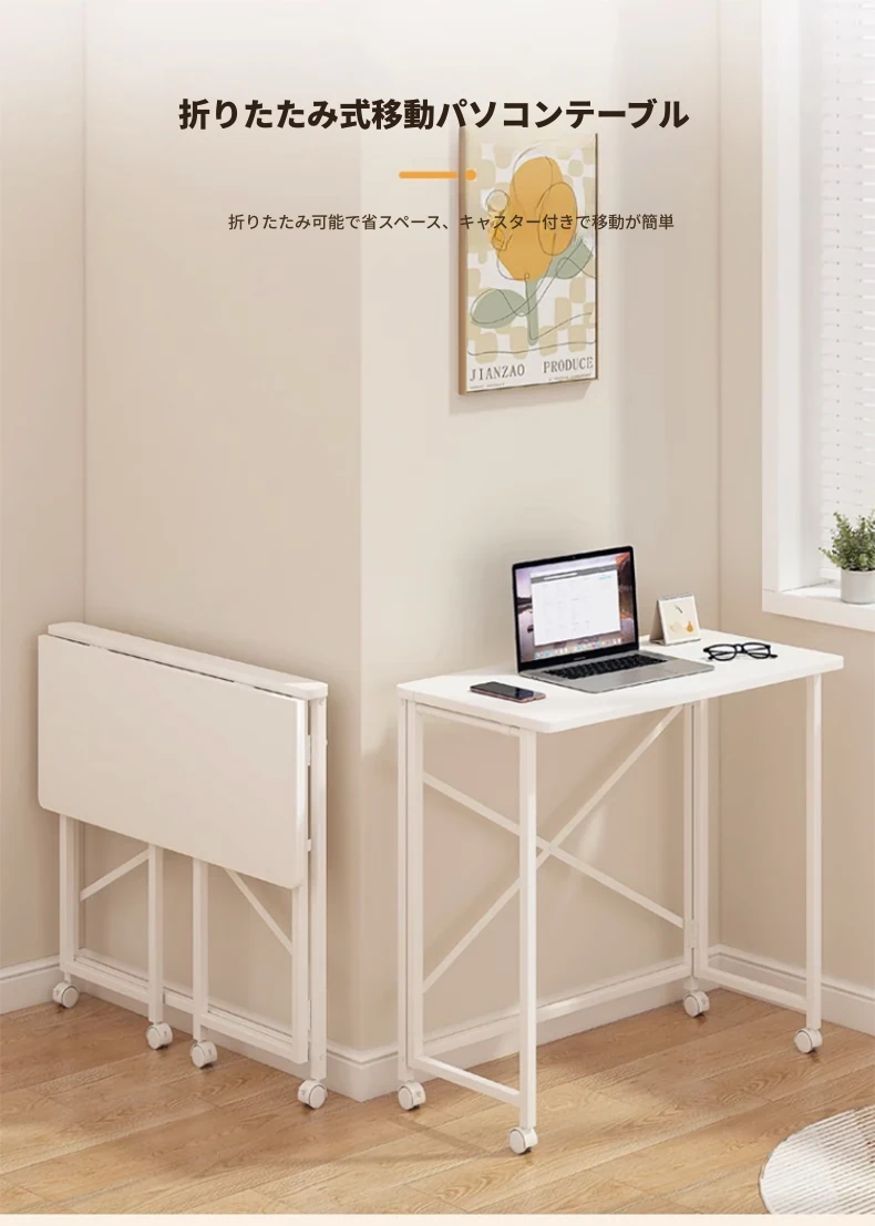 移動可能な折りたたみデスク|寝室に最適な化粧台小テーブル|家庭用シンプルなパソコンデスク|学生のためのベッドサイドライティングテーブル|使い勝手抜群!どこでも便利に使えるデザイン