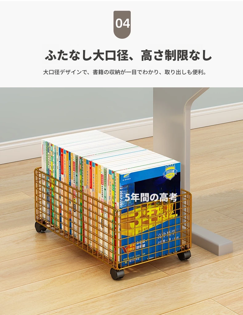 学生のためのデスク下収納ラック!移動可能なフロアブックシェルフ、教室や小部屋にぴったりのコンパクトな書籍整理ラック。すっきりとしたスペースを実現し、学習環境を向上させる便利アイテム!